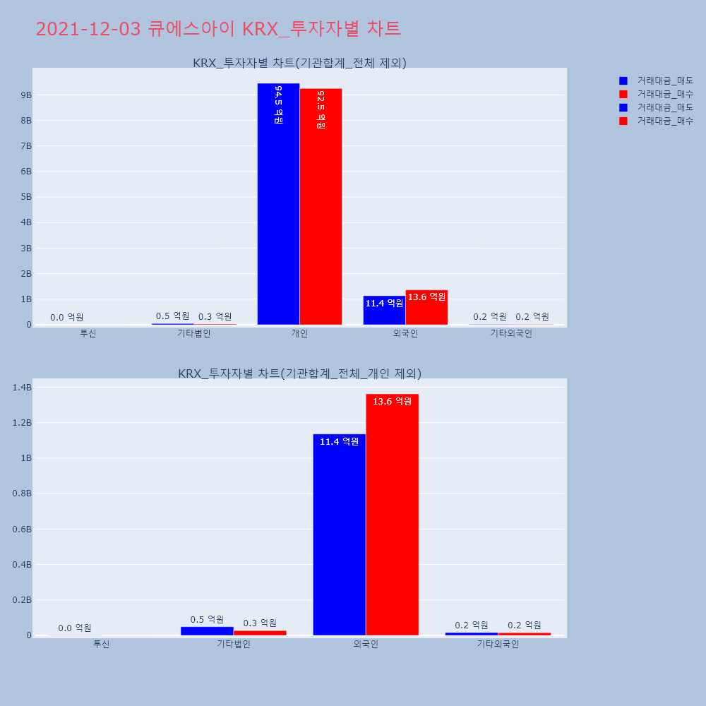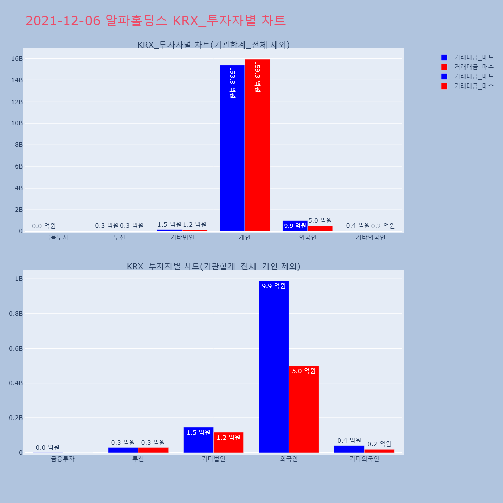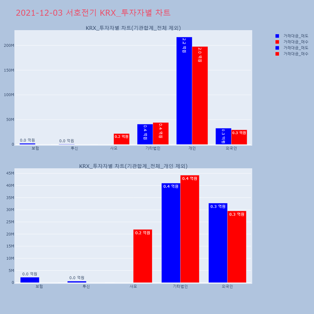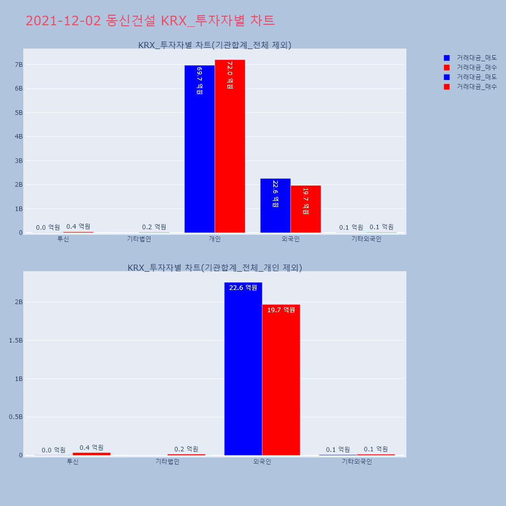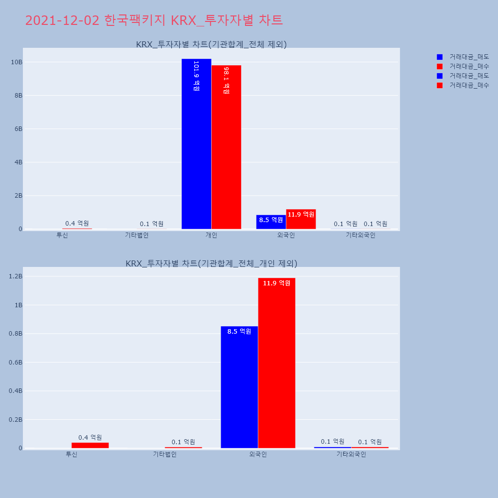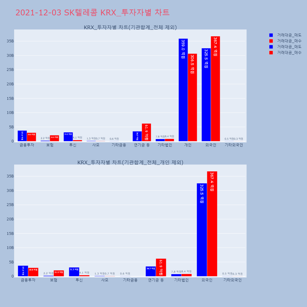 | 투자기관 | 거래량_매도 | 거래량_매수 | 거래량_순매수 | 거래대금_매도 | 거래대금_매수 | 거래대금_순매수 |