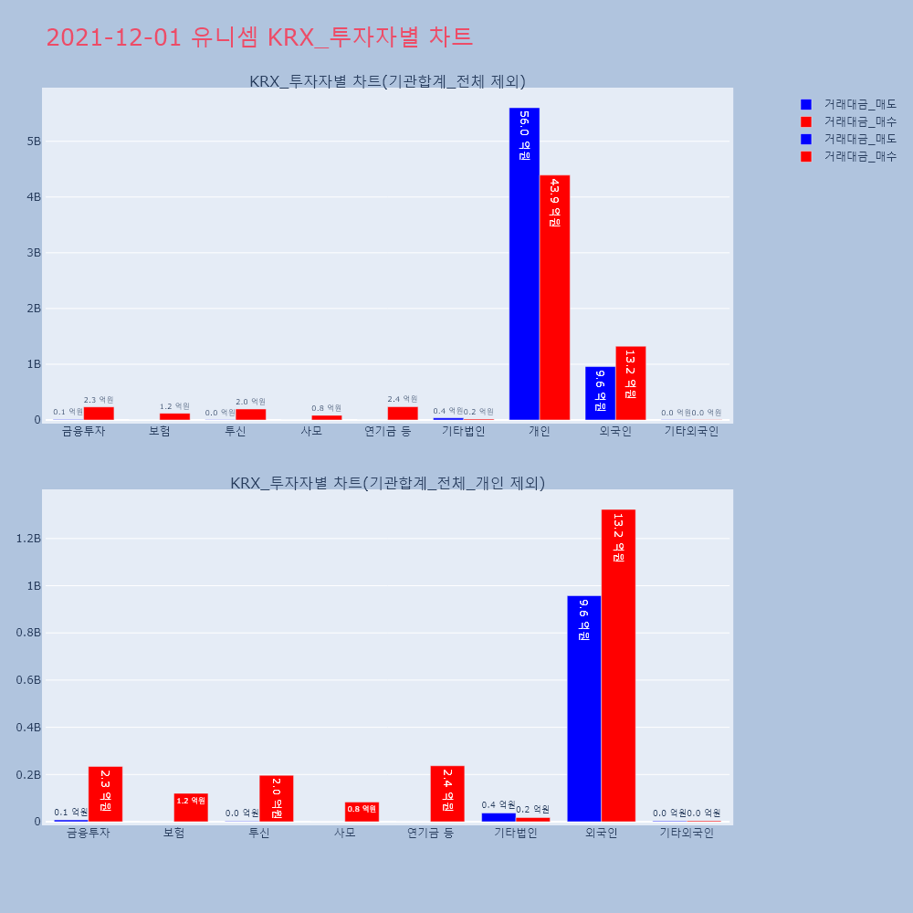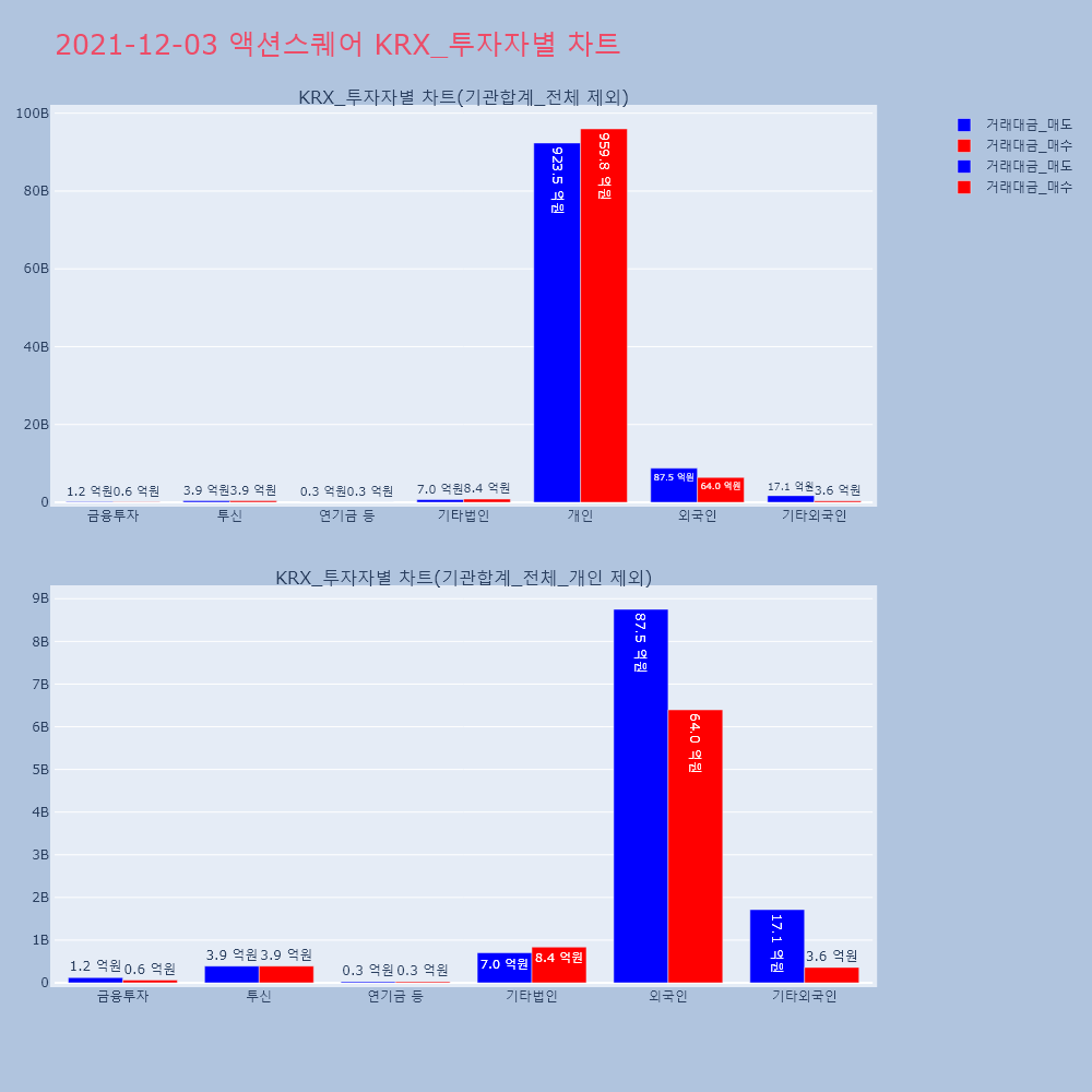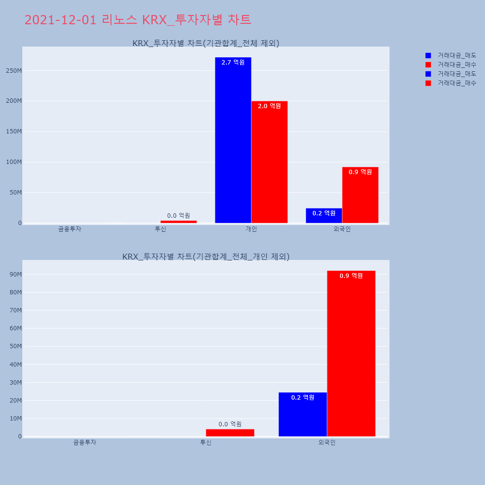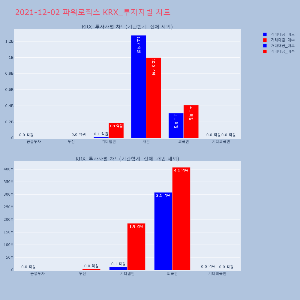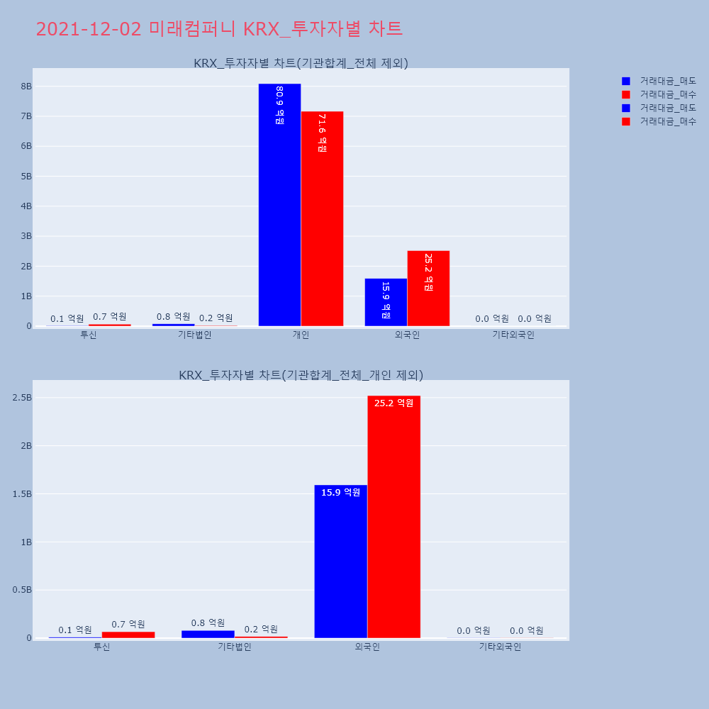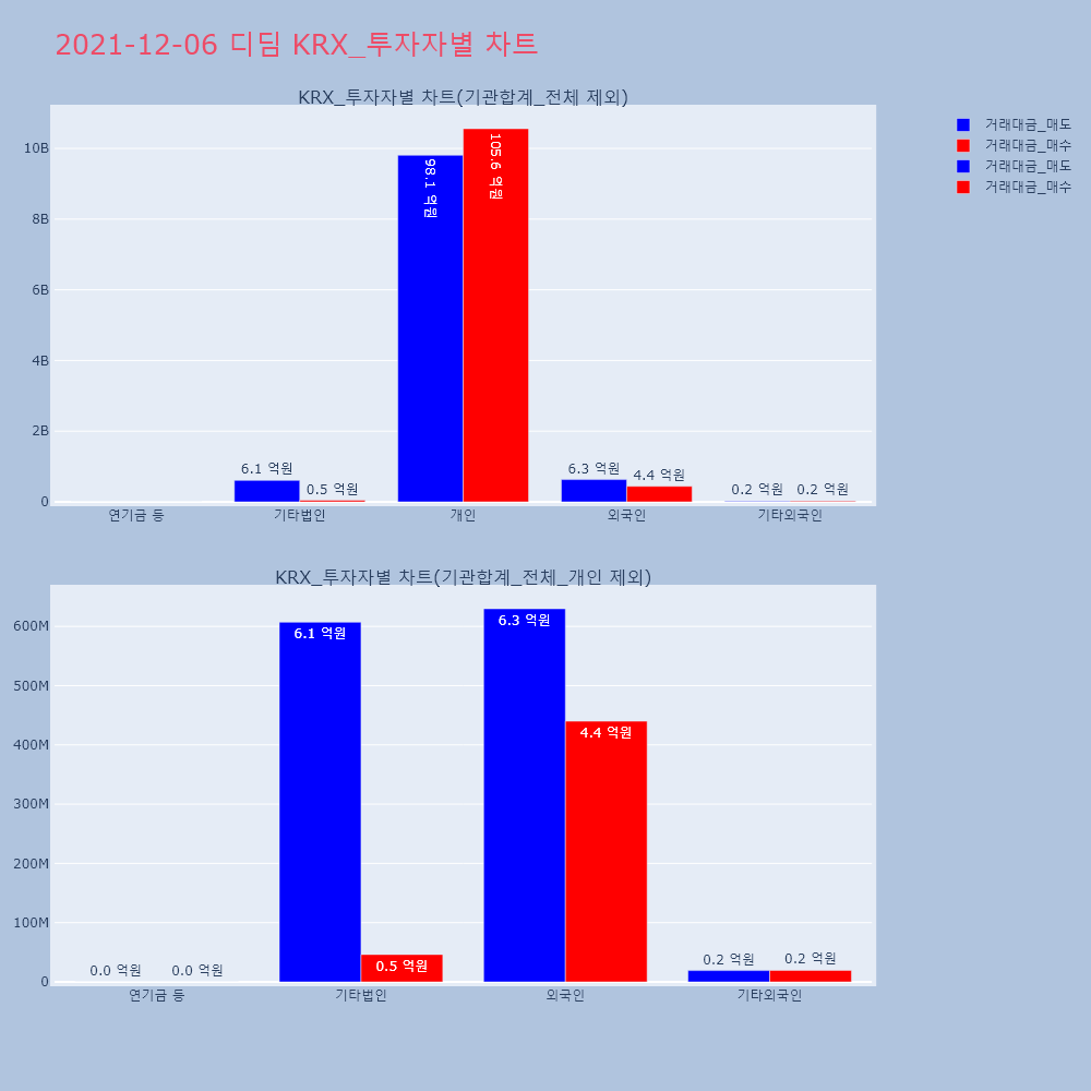 | 투자기관 | 거래량_매도 | 거래량_매수 | 거래량_순매수 | 거래대금_매도 | 거래대금_매수 | 거래대금_순매수 |
