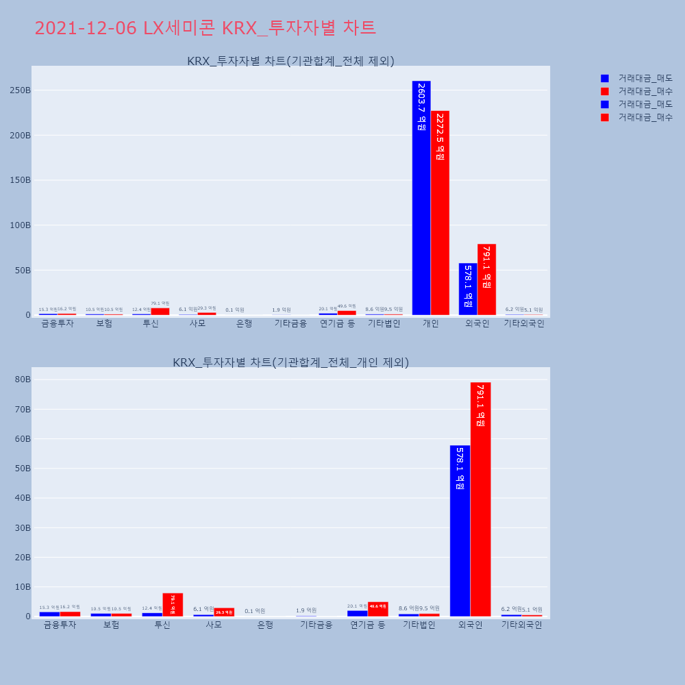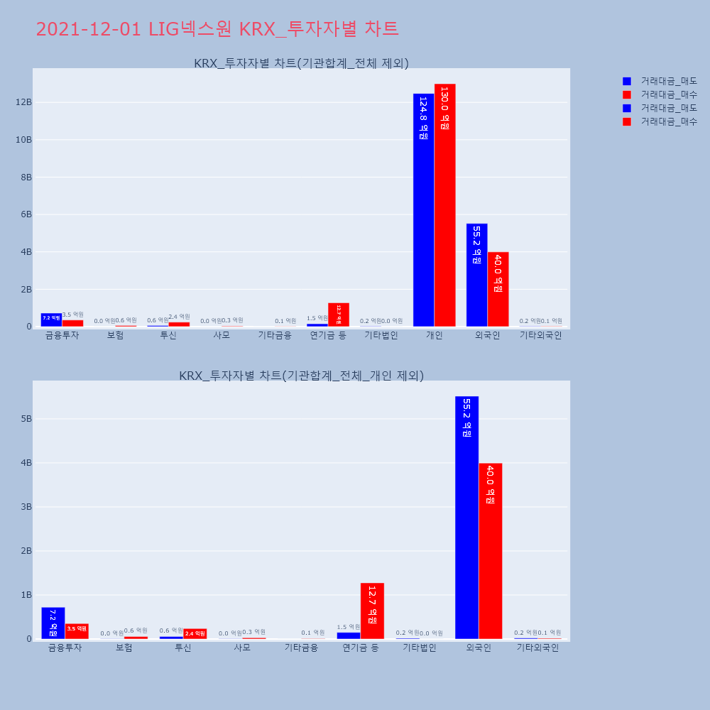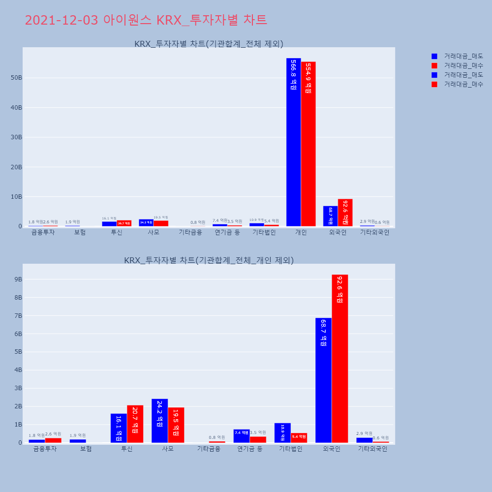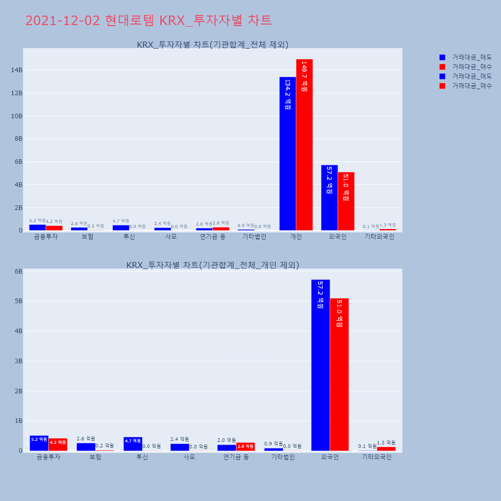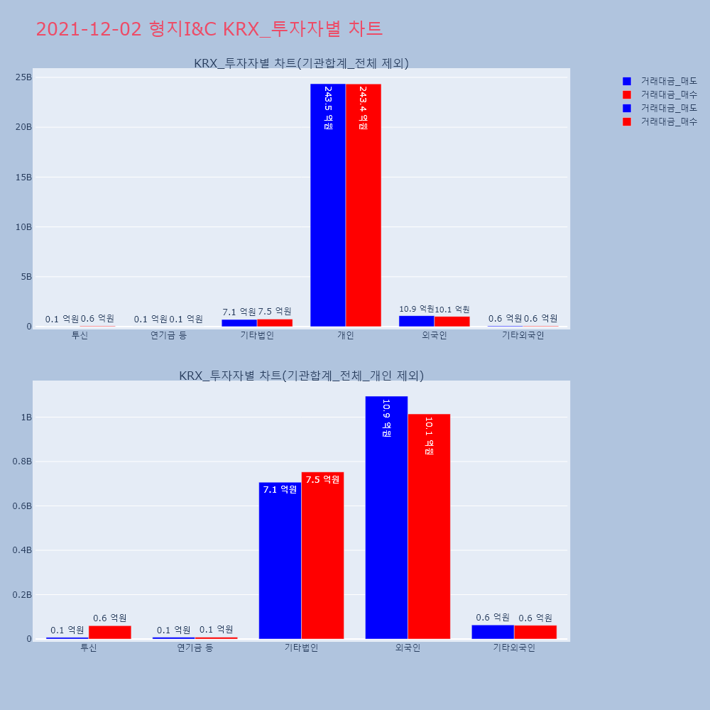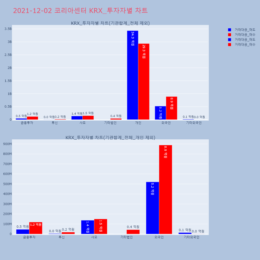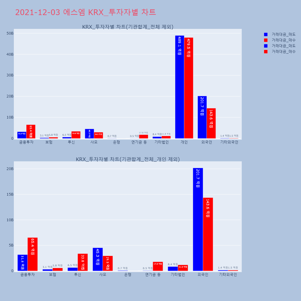| 투자기관 | 거래량_매도 | 거래량_매수 | 거래량_순매수 | 거래대금_매도 | 거래대금_매수 | 거래대금_순매수 |