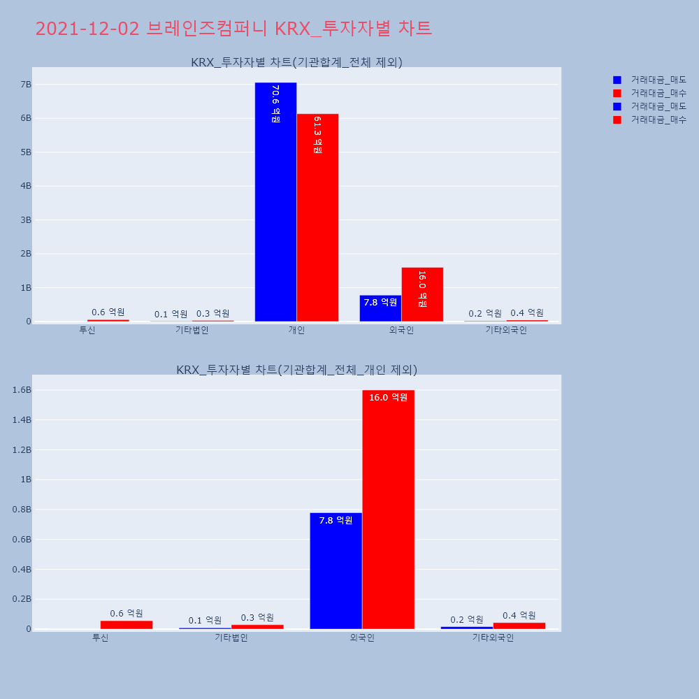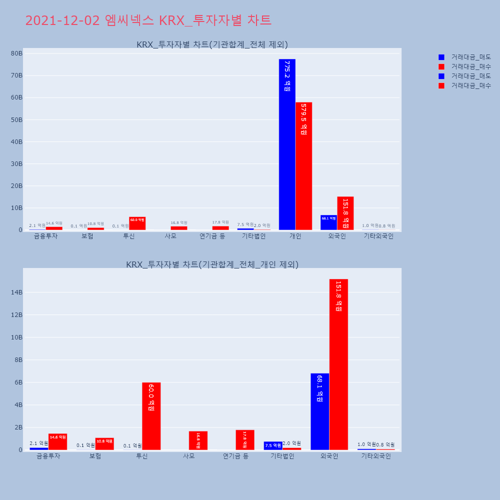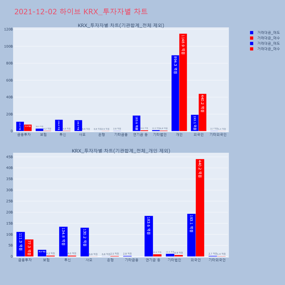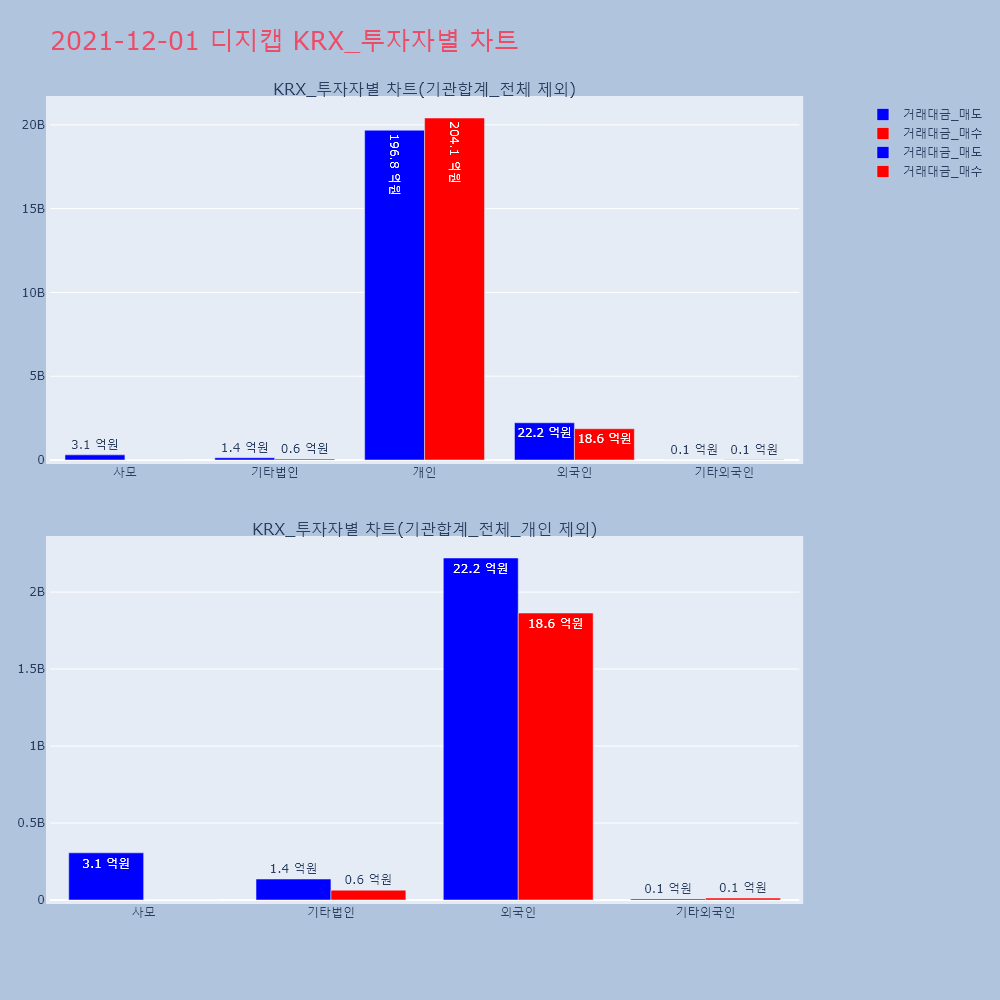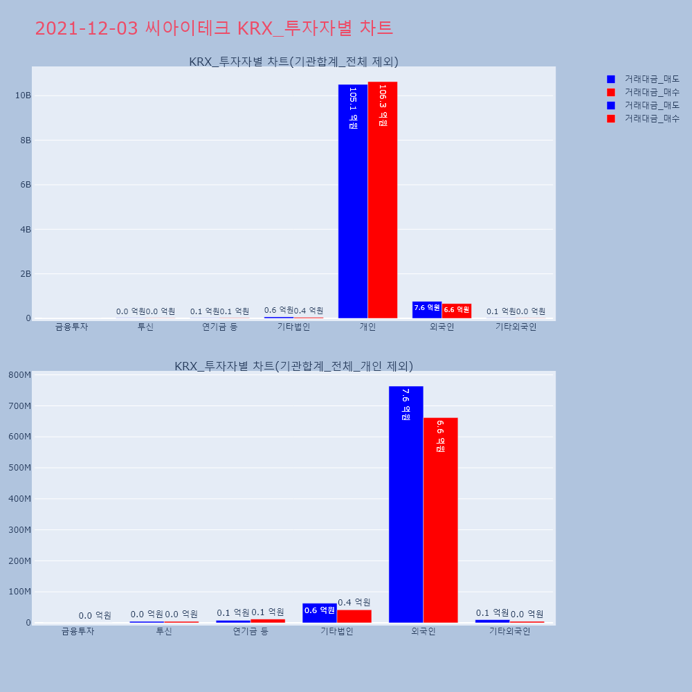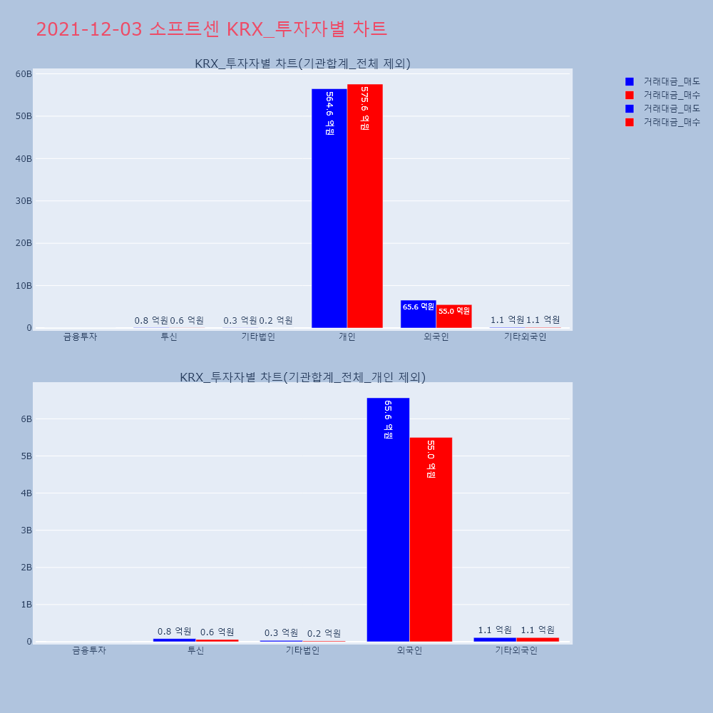 | 투자기관 | 거래량_매도 | 거래량_매수 | 거래량_순매수 | 거래대금_매도 | 거래대금_매수 | 거래대금_순매수 |