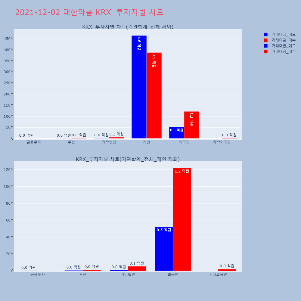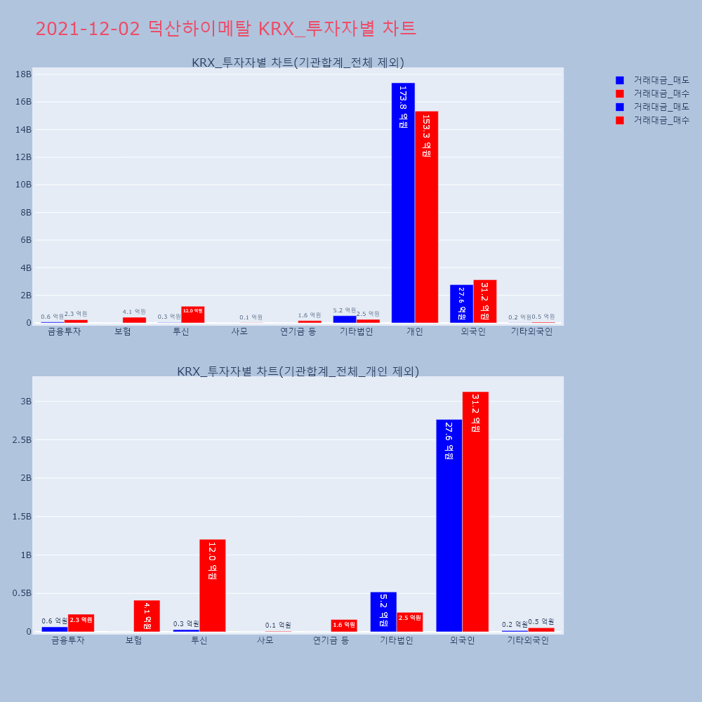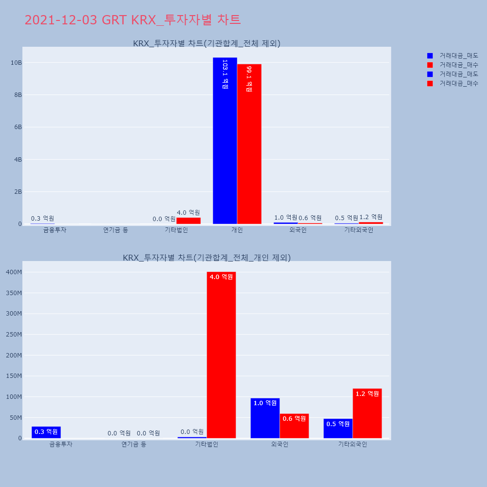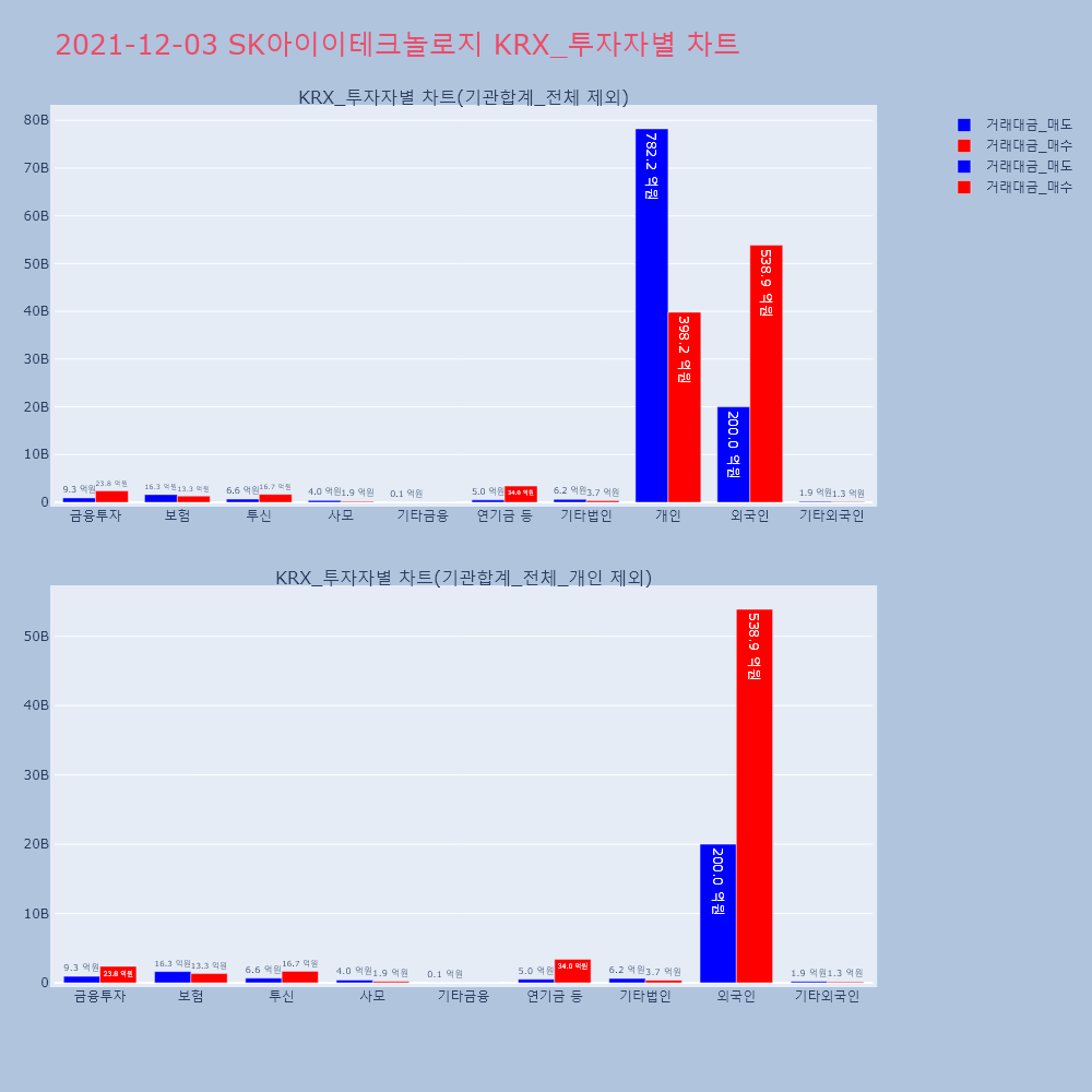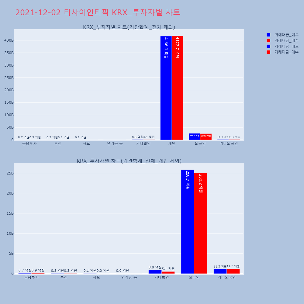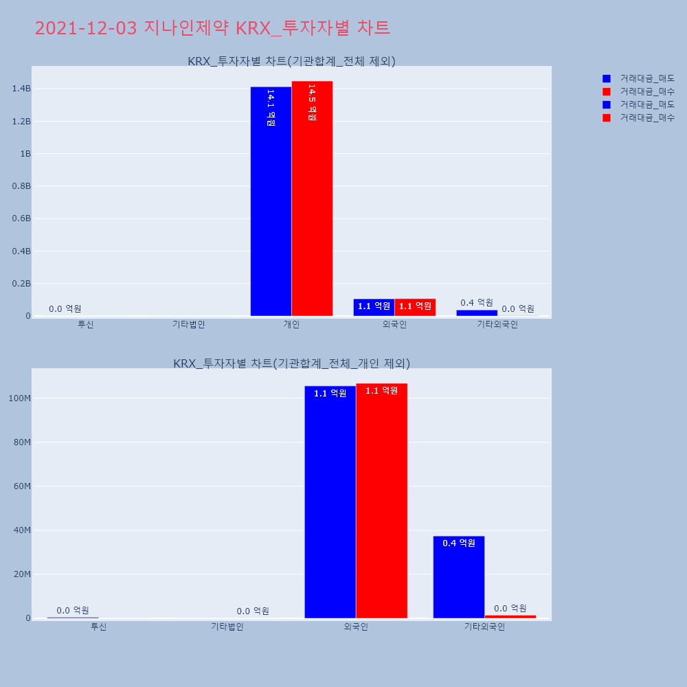 | 투자기관 | 거래량_매도 | 거래량_매수 | 거래량_순매수 | 거래대금_매도 | 거래대금_매수 | 거래대금_순매수 |