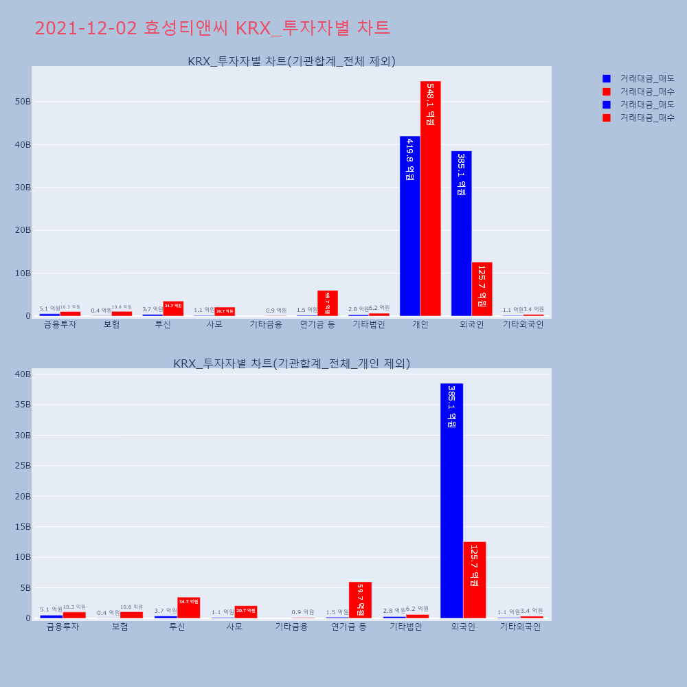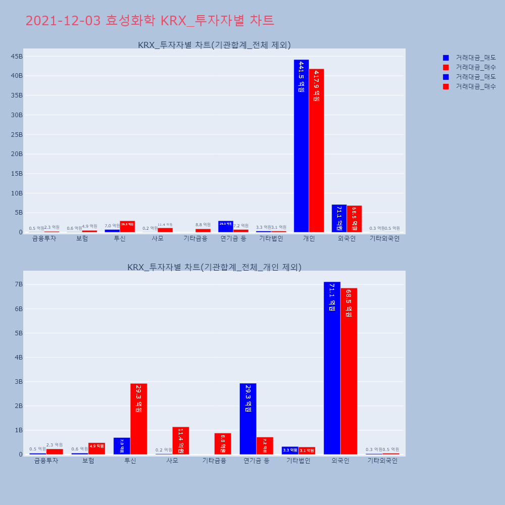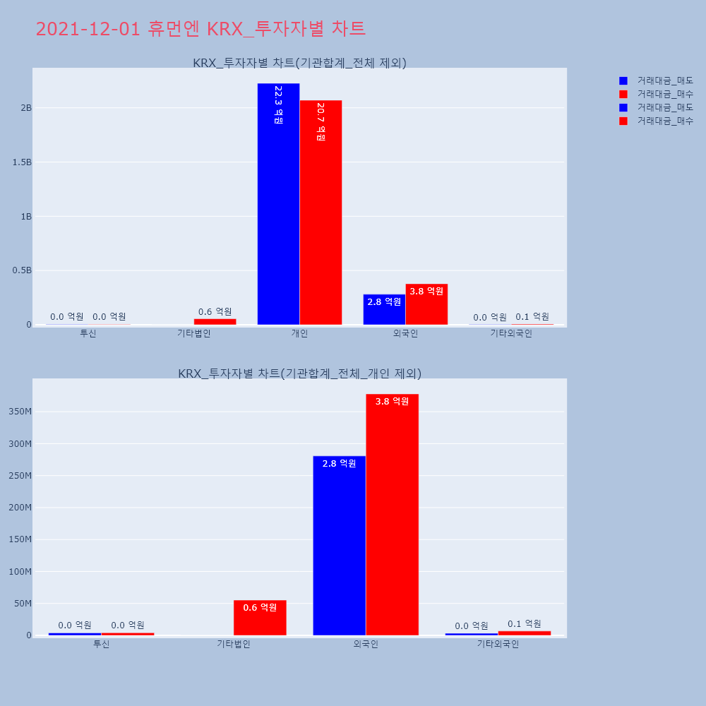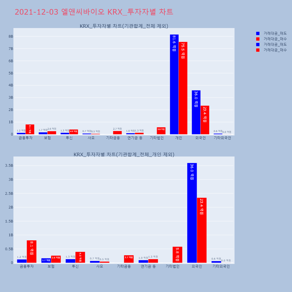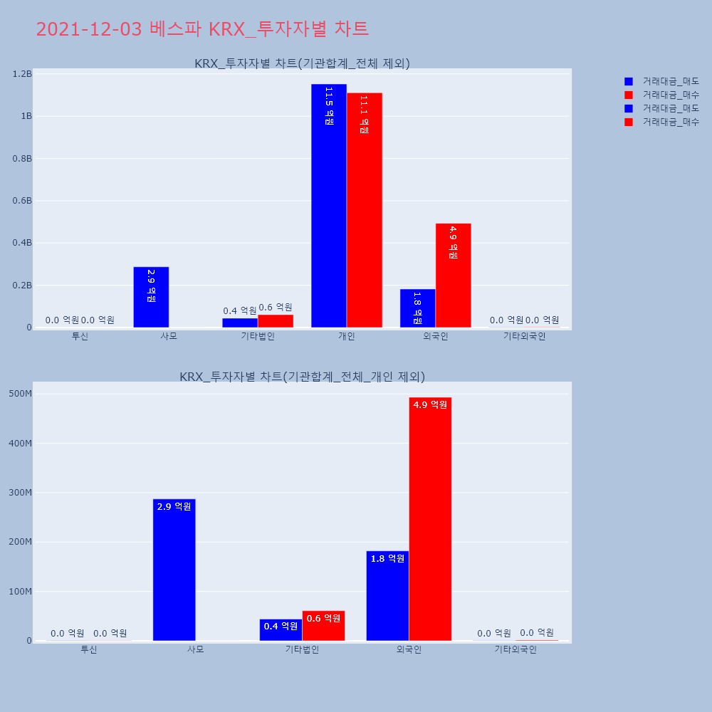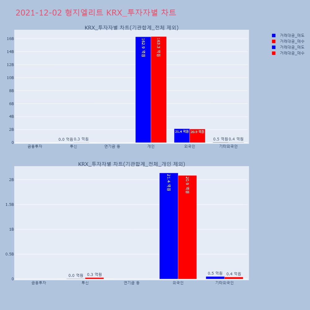 | 투자기관 | 거래량_매도 | 거래량_매수 | 거래량_순매수 | 거래대금_매도 | 거래대금_매수 | 거래대금_순매수 |