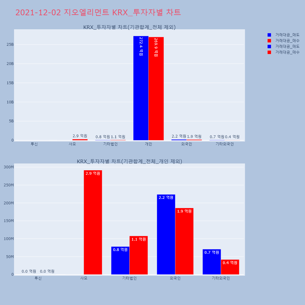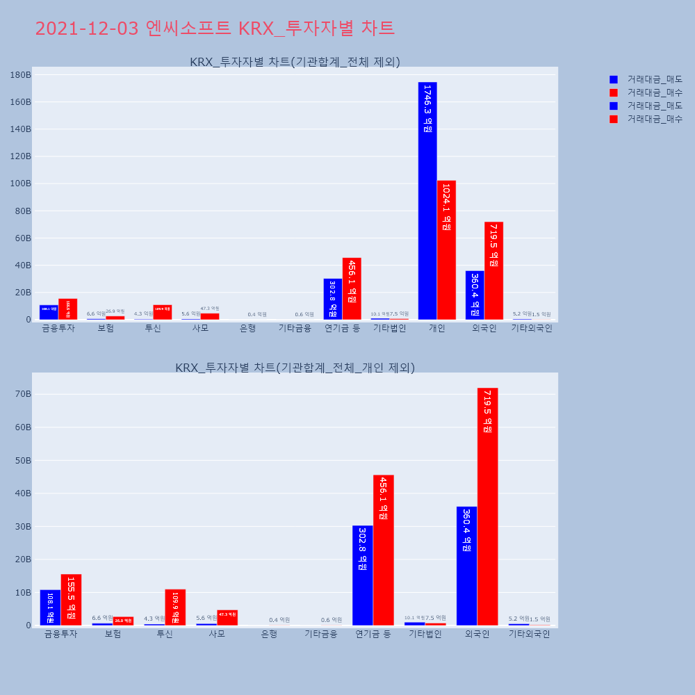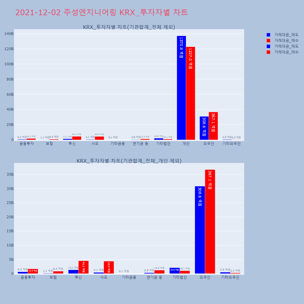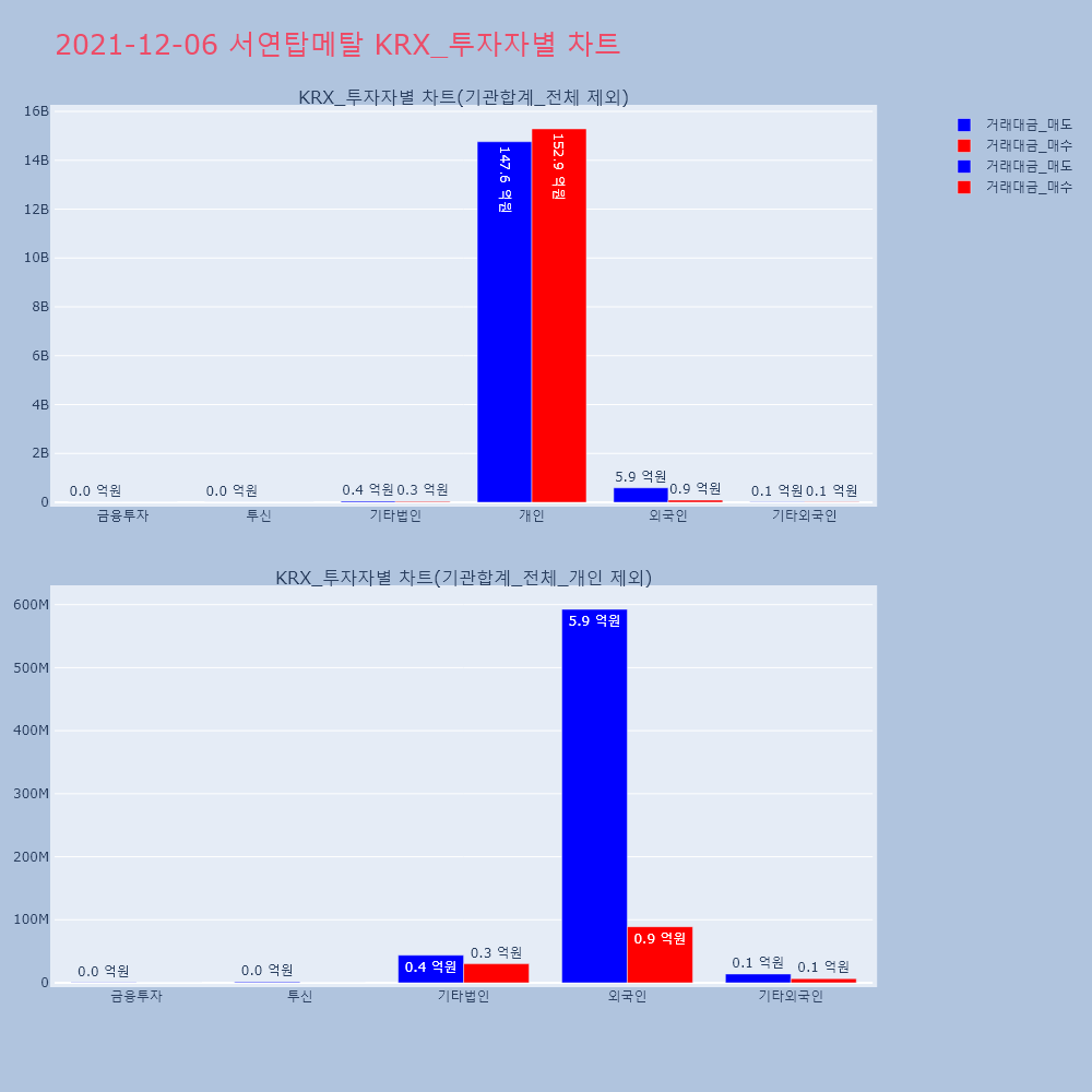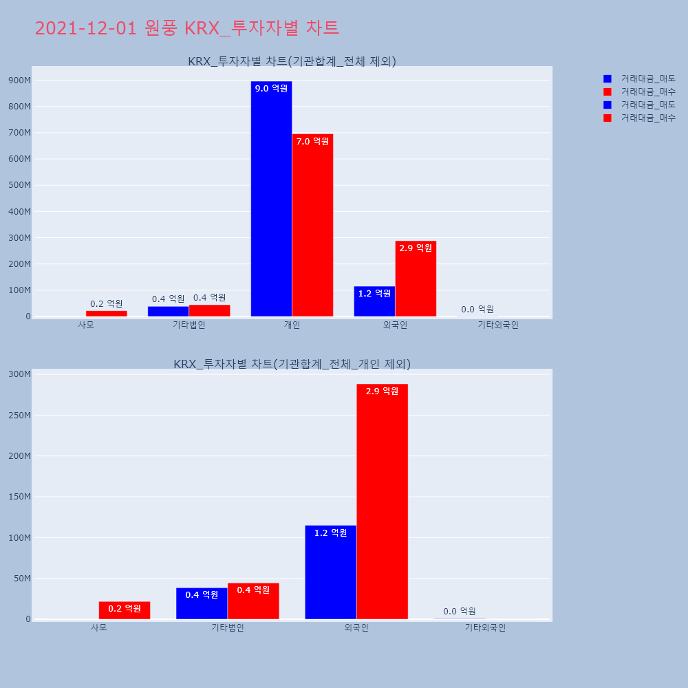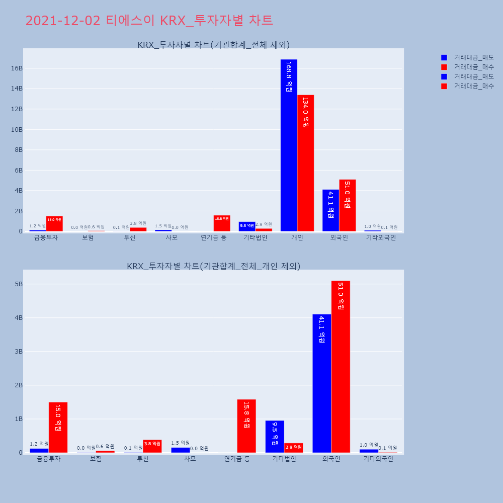 | 투자기관 | 거래량_매도 | 거래량_매수 | 거래량_순매수 | 거래대금_매도 | 거래대금_매수 | 거래대금_순매수 |