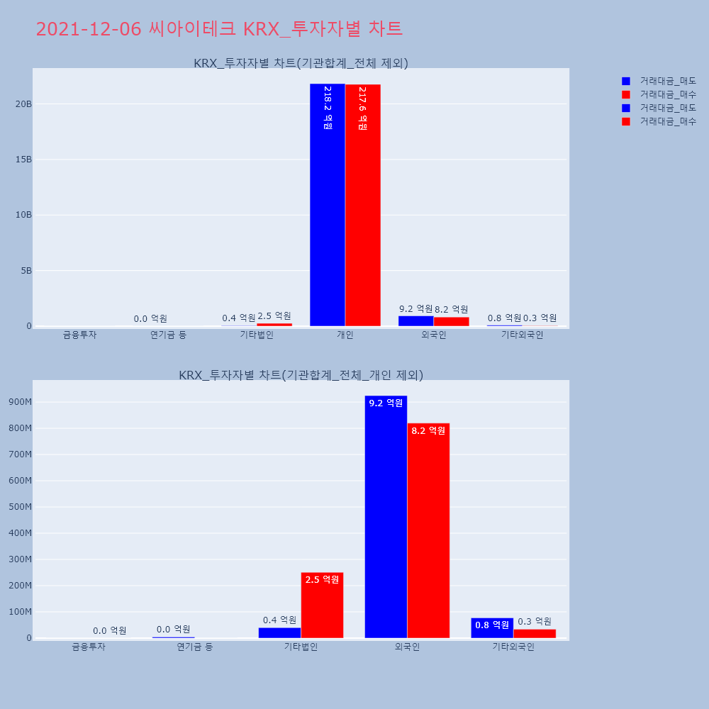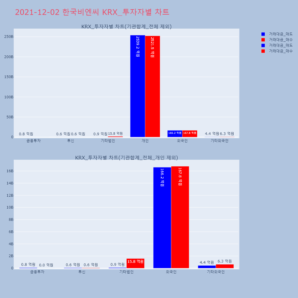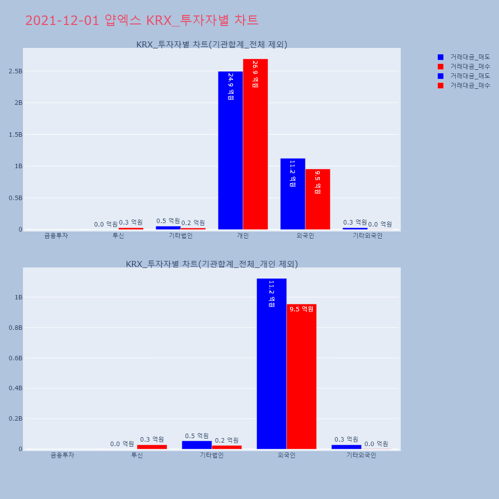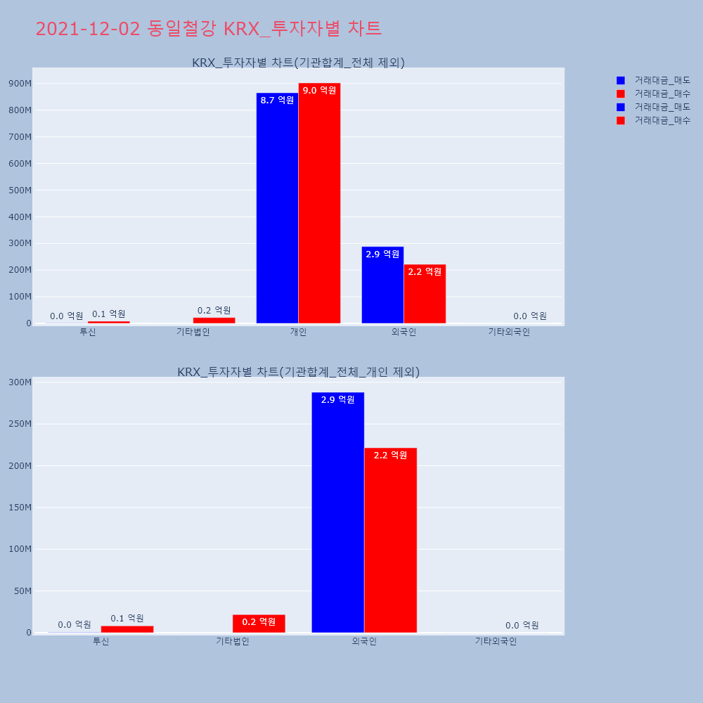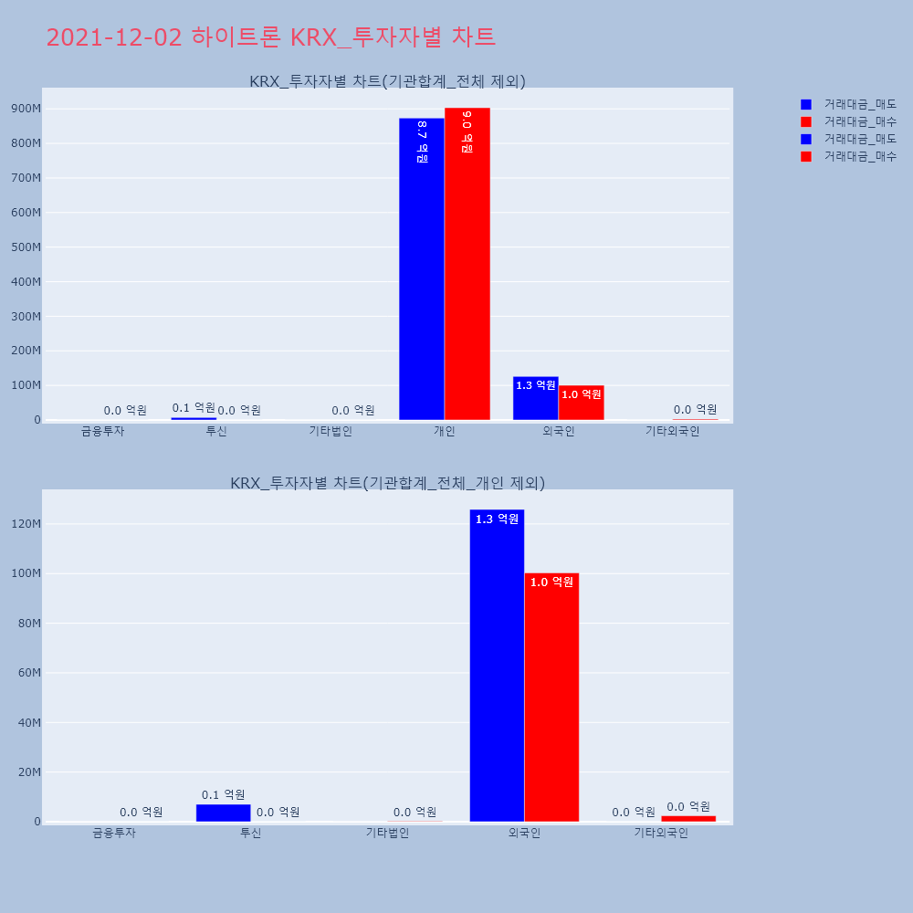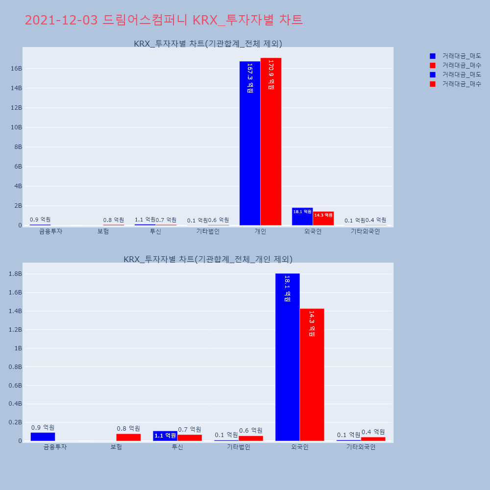 | 투자기관 | 거래량_매도 | 거래량_매수 | 거래량_순매수 | 거래대금_매도 | 거래대금_매수 | 거래대금_순매수 |