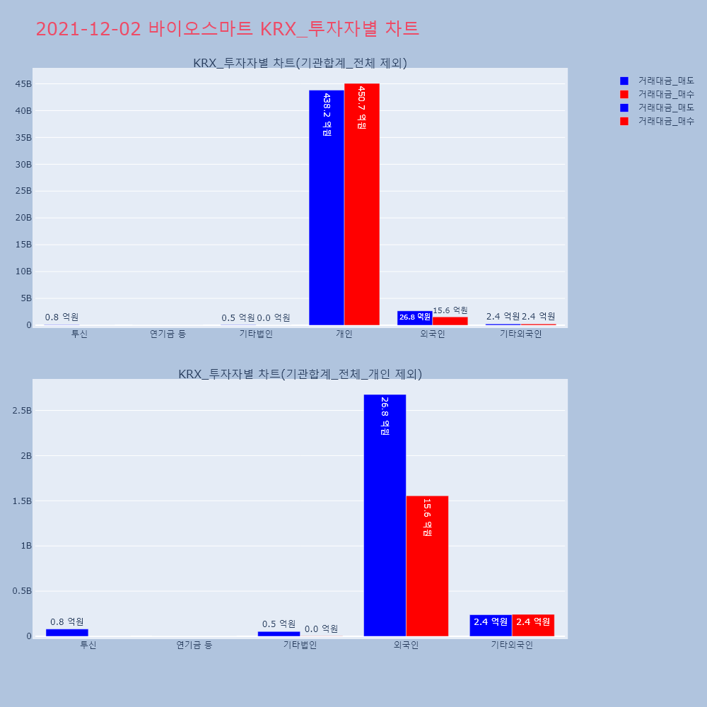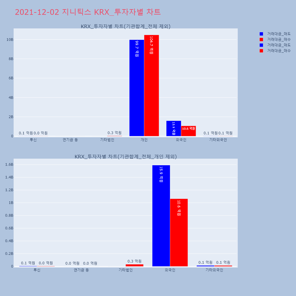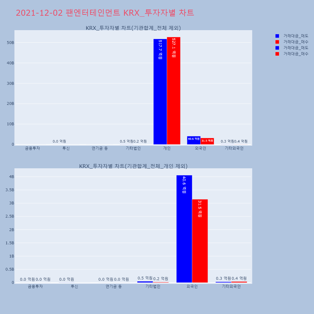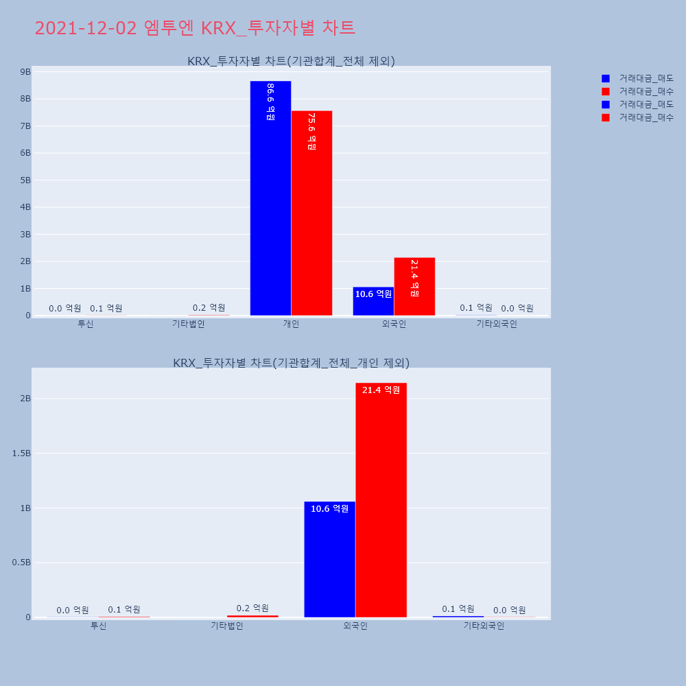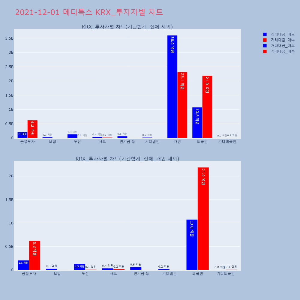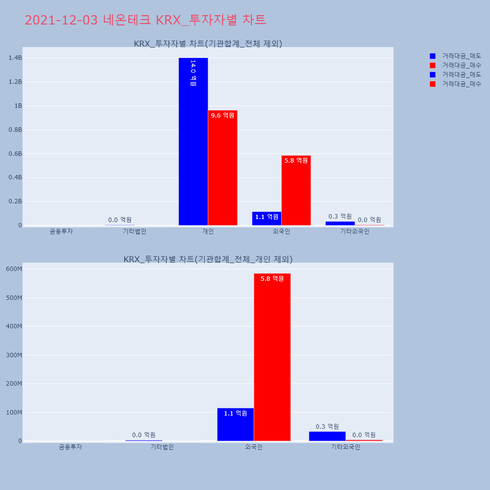 | 투자기관 | 거래량_매도 | 거래량_매수 | 거래량_순매수 | 거래대금_매도 | 거래대금_매수 | 거래대금_순매수 |