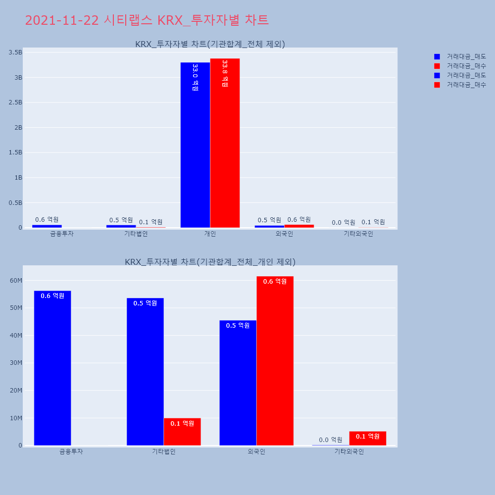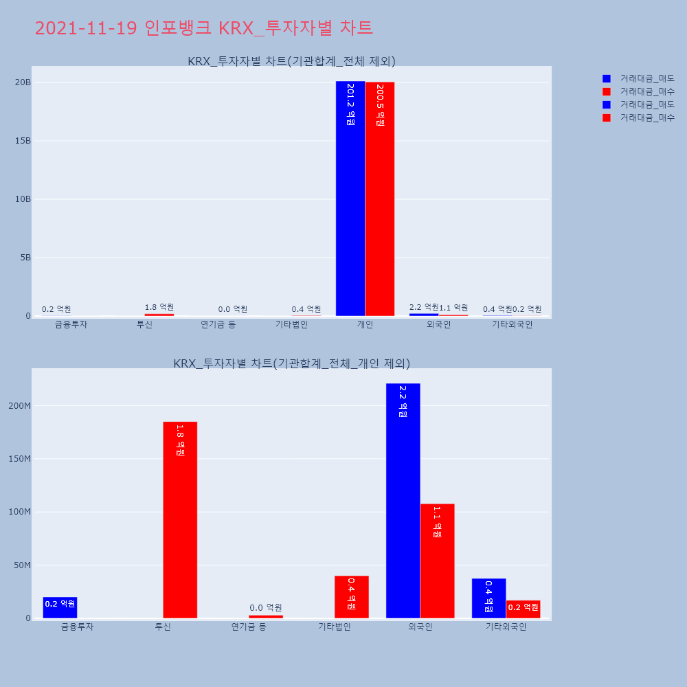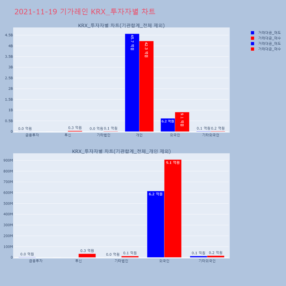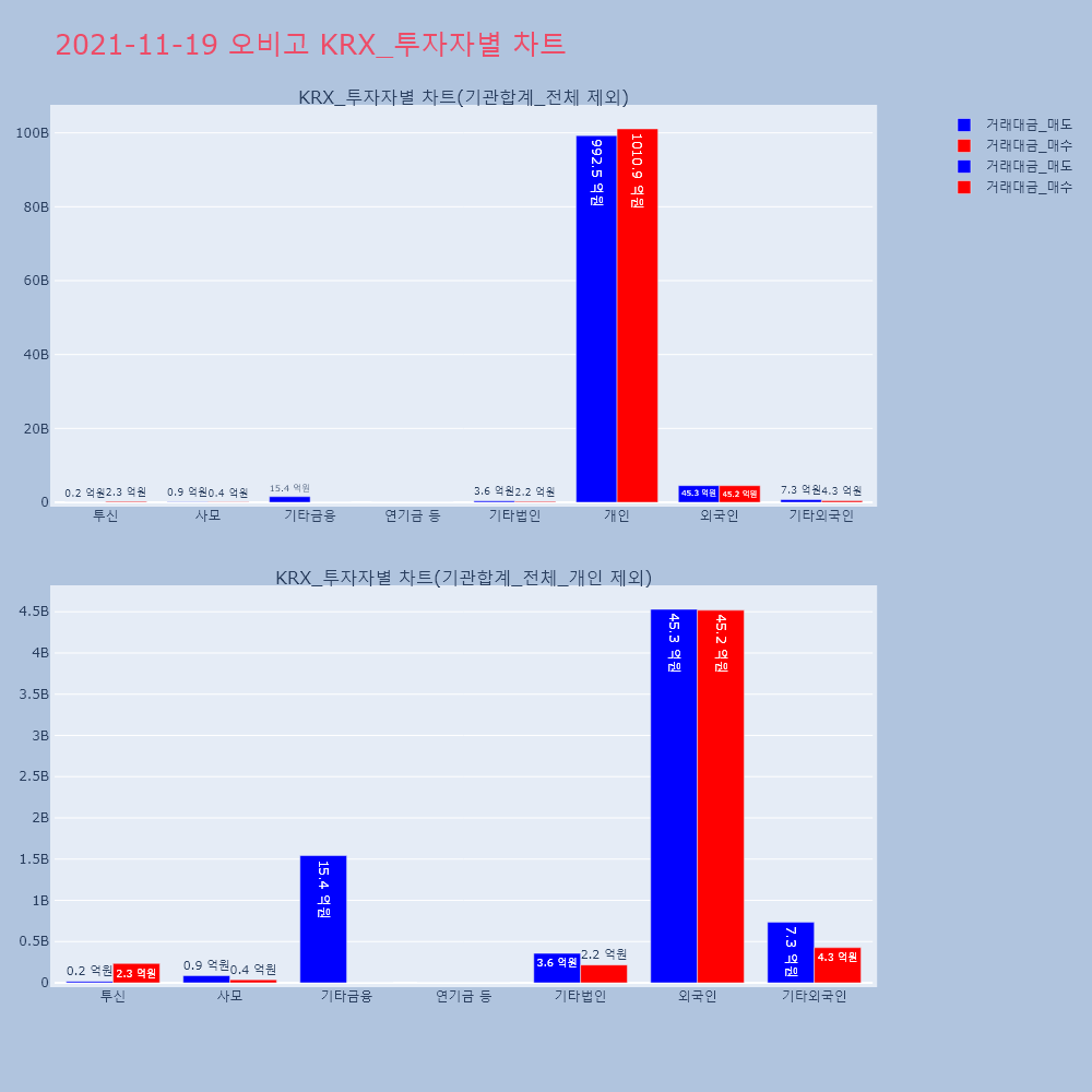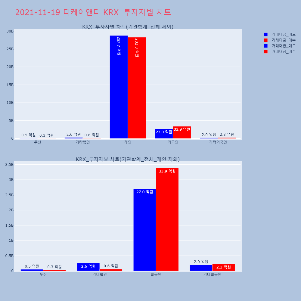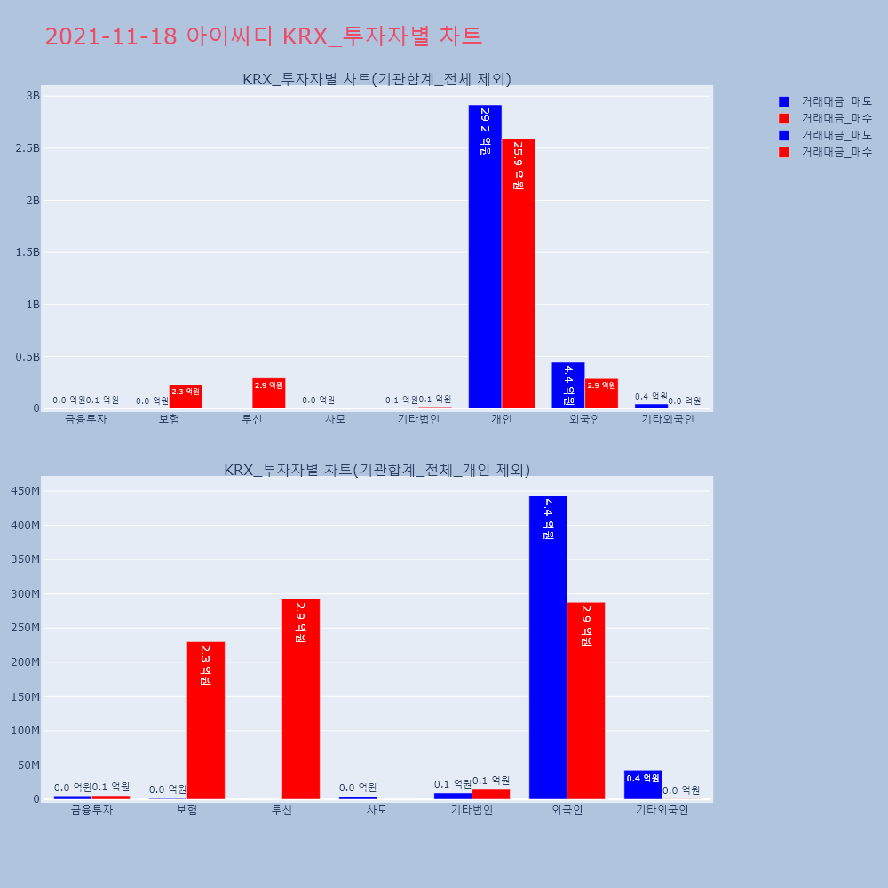 | 투자기관 | 거래량_매도 | 거래량_매수 | 거래량_순매수 | 거래대금_매도 | 거래대금_매수 | 거래대금_순매수 |