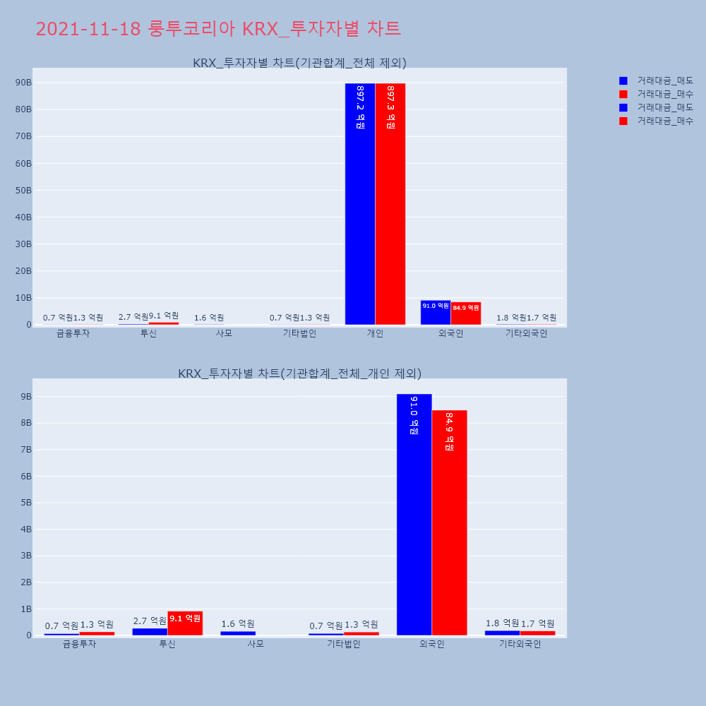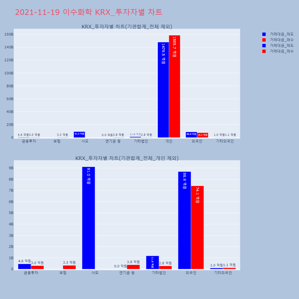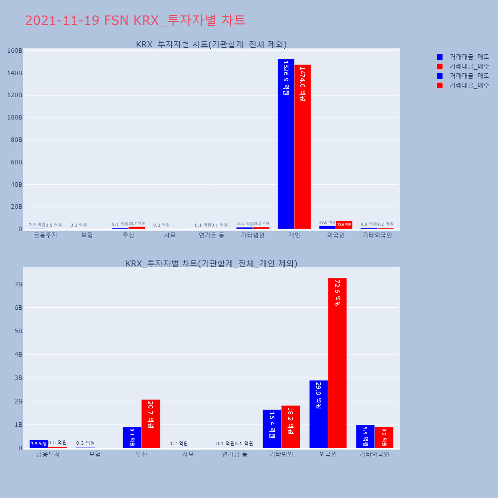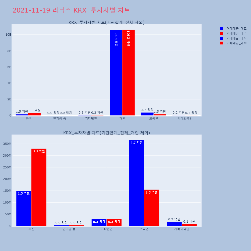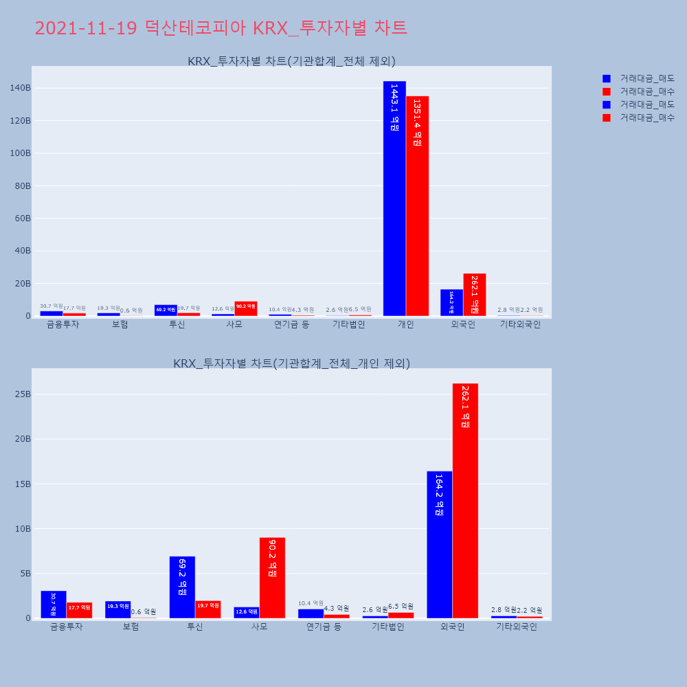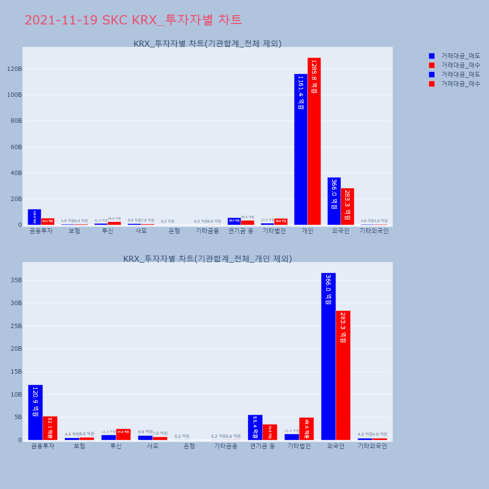 | 투자기관 | 거래량_매도 | 거래량_매수 | 거래량_순매수 | 거래대금_매도 | 거래대금_매수 | 거래대금_순매수 |
