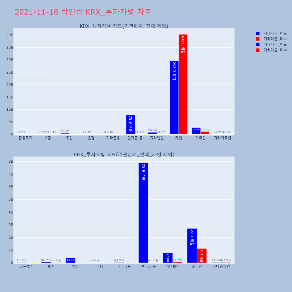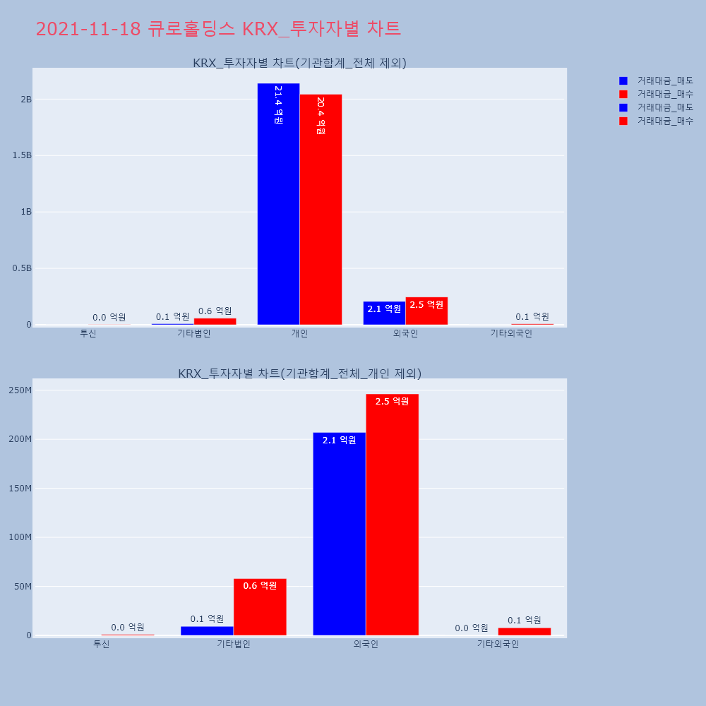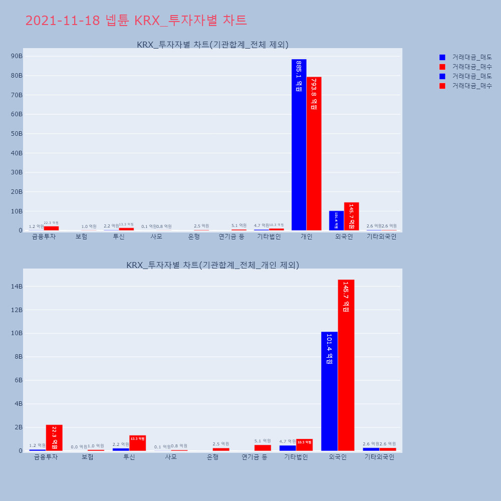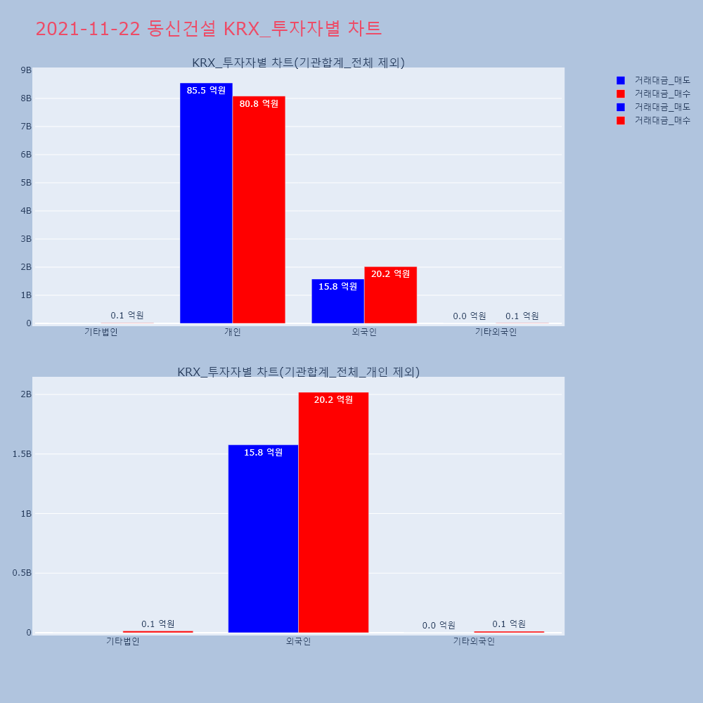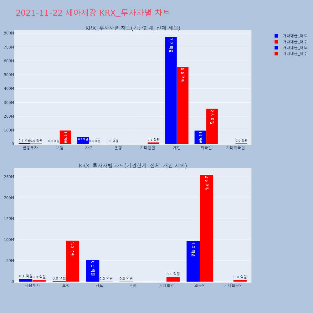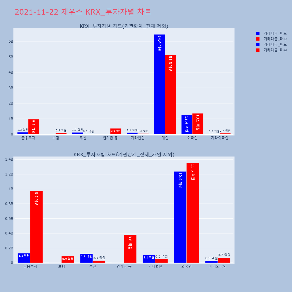 | 투자기관 | 거래량_매도 | 거래량_매수 | 거래량_순매수 | 거래대금_매도 | 거래대금_매수 | 거래대금_순매수 |