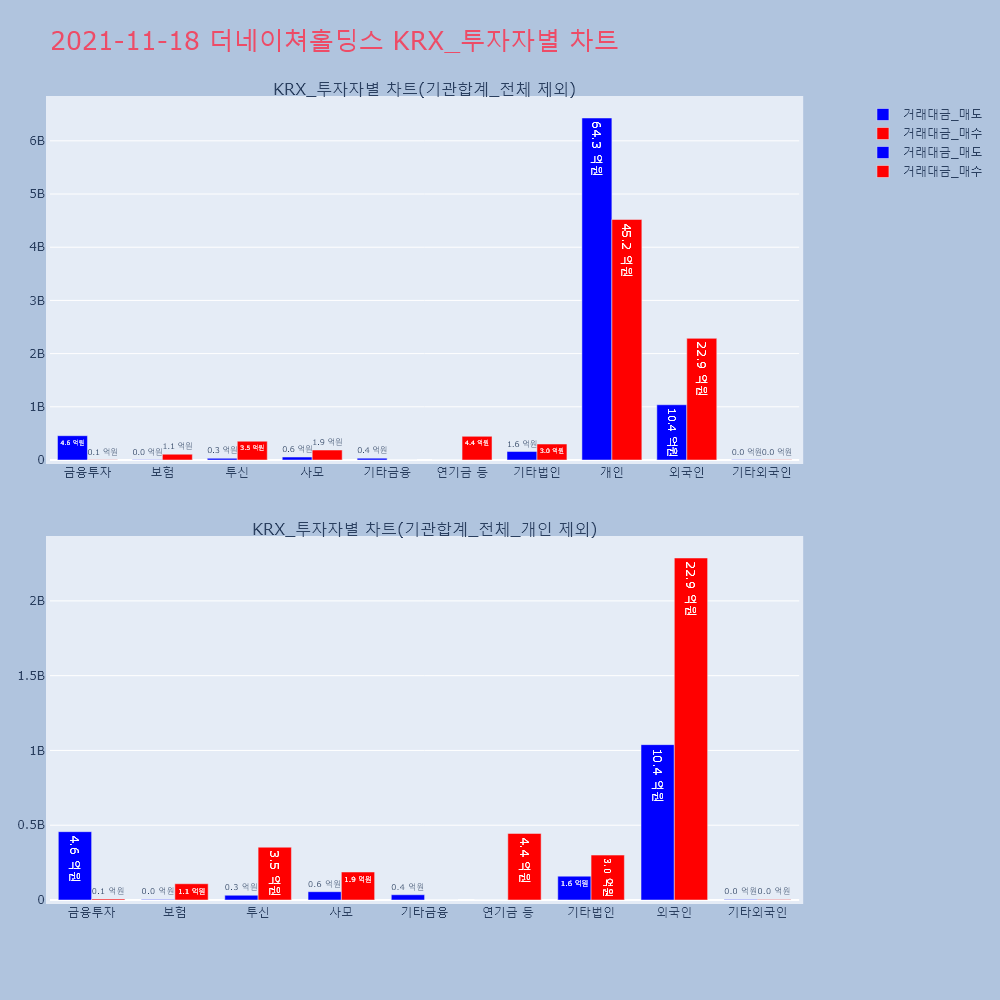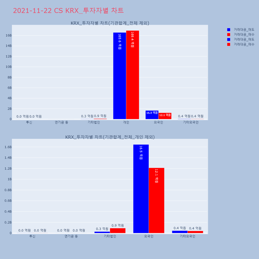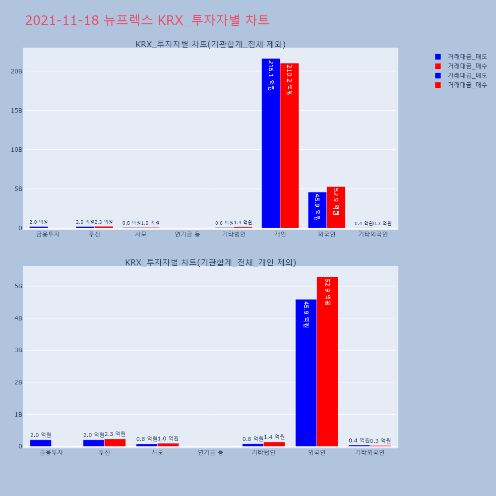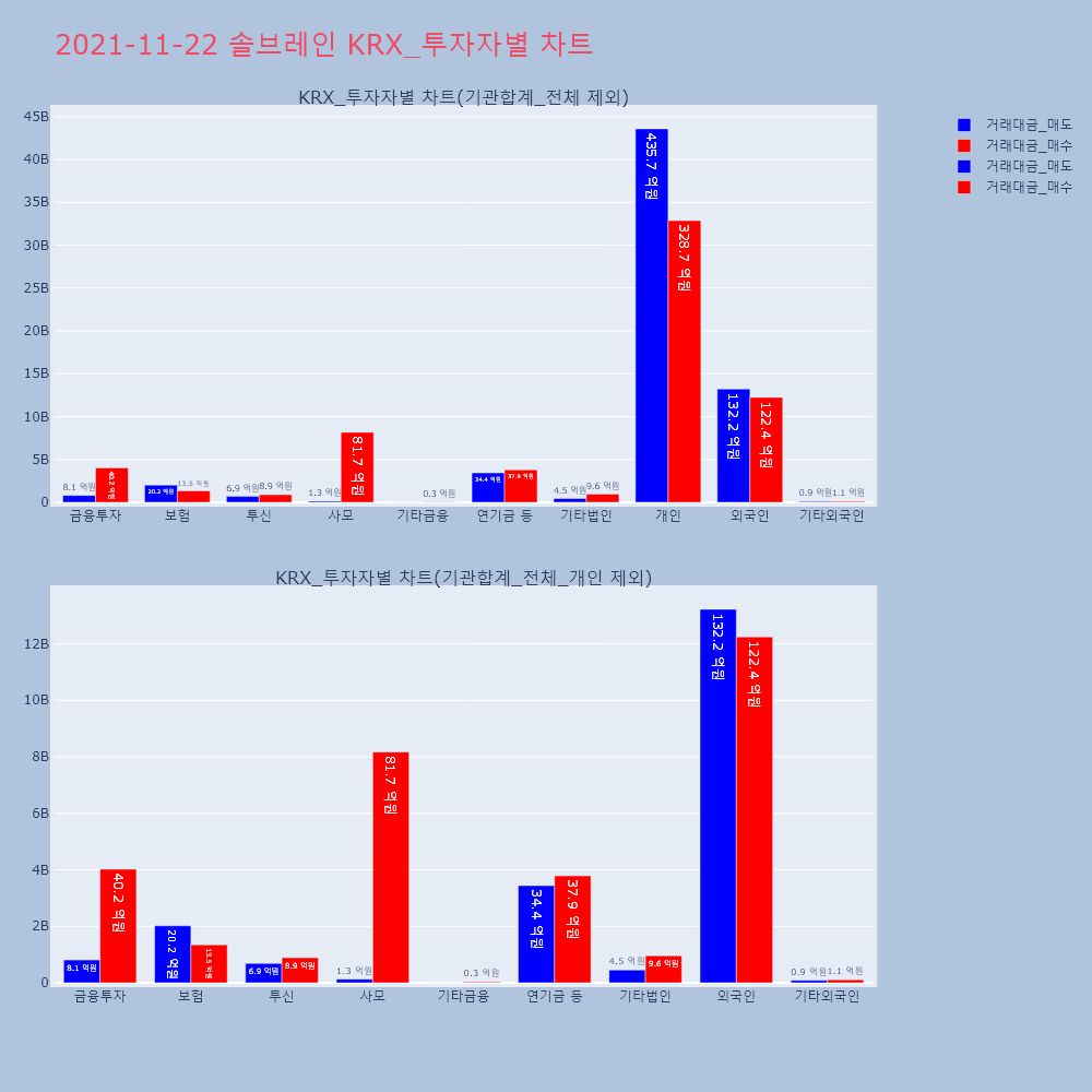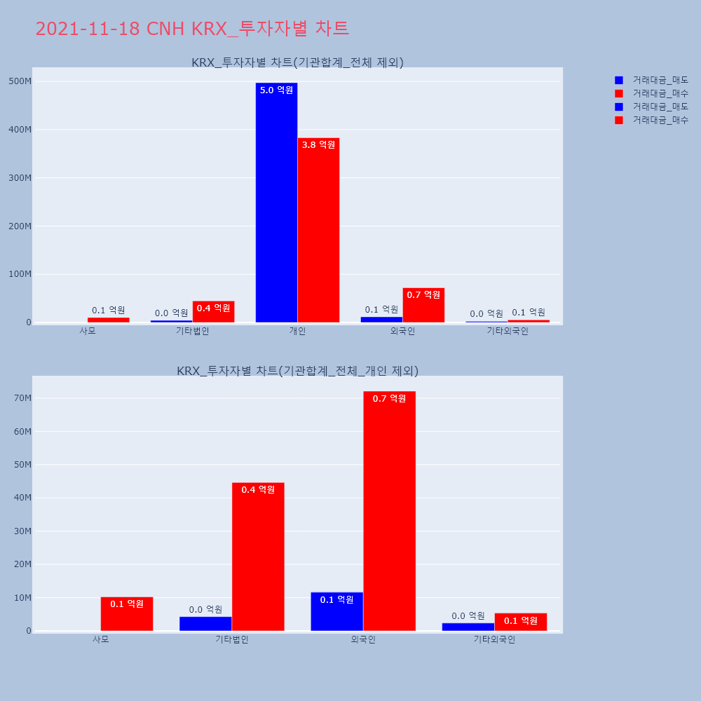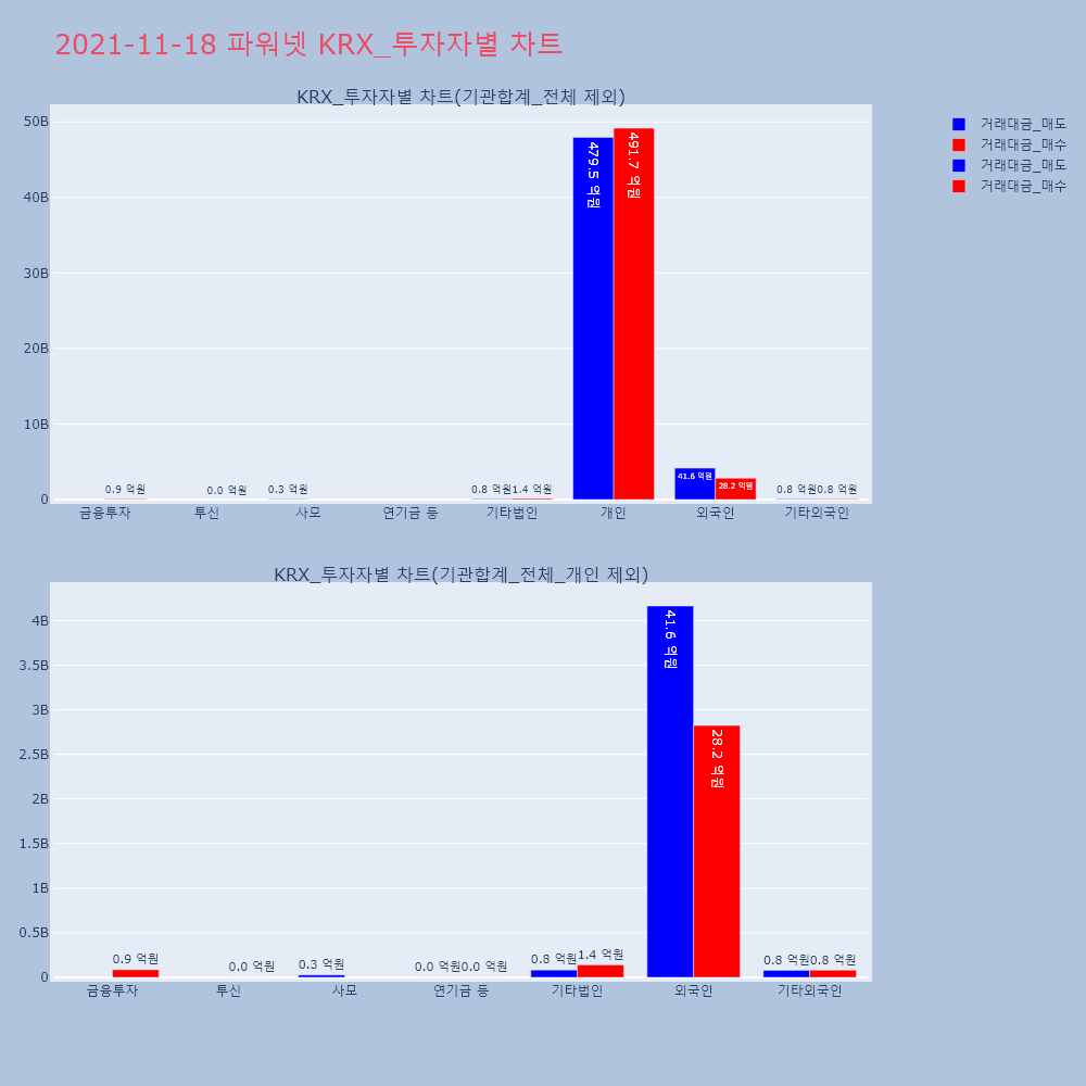 | 투자기관 | 거래량_매도 | 거래량_매수 | 거래량_순매수 | 거래대금_매도 | 거래대금_매수 | 거래대금_순매수 |
