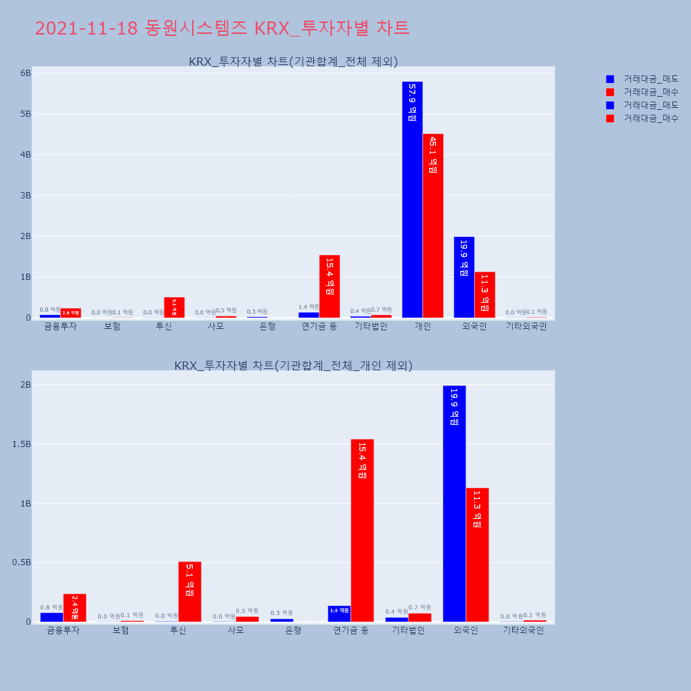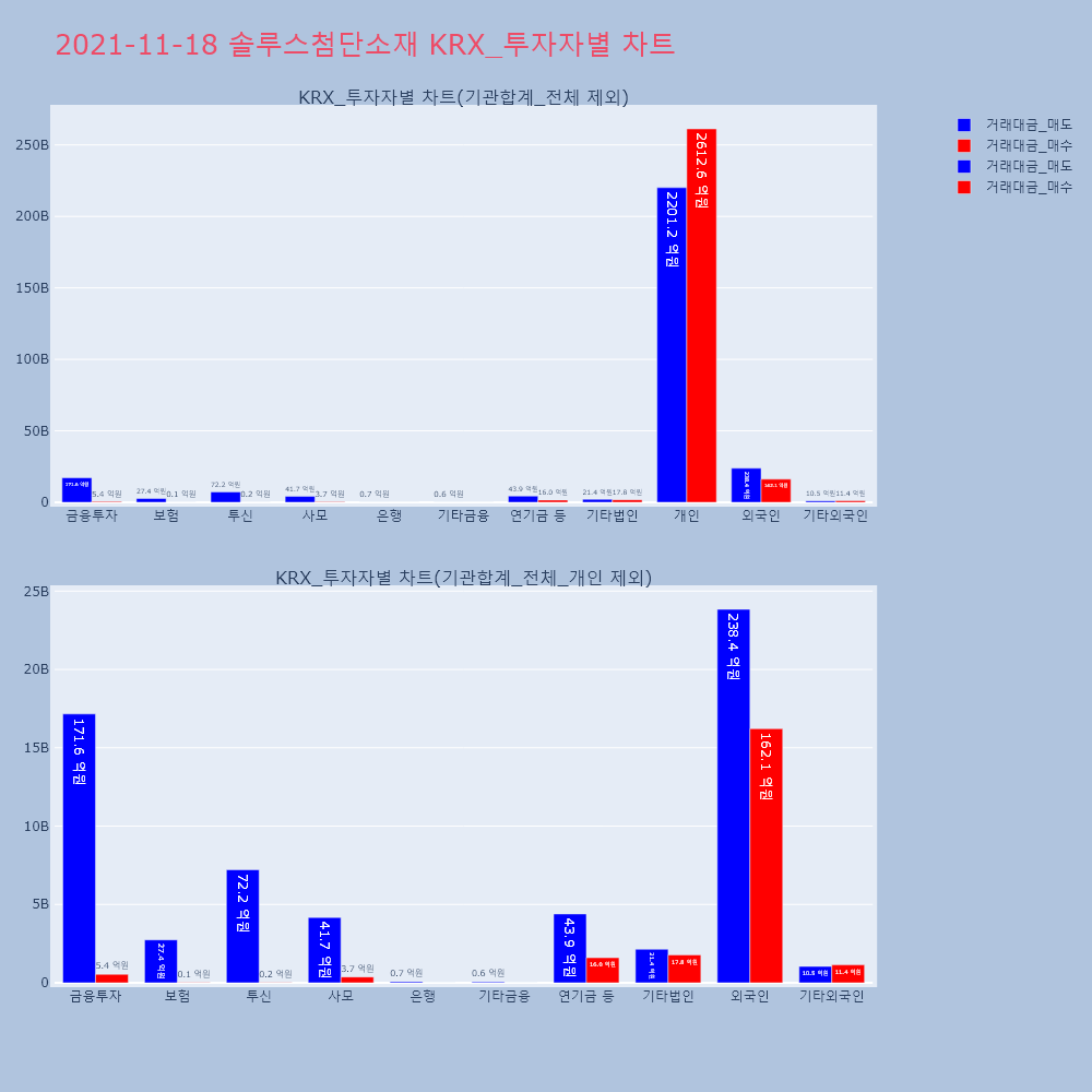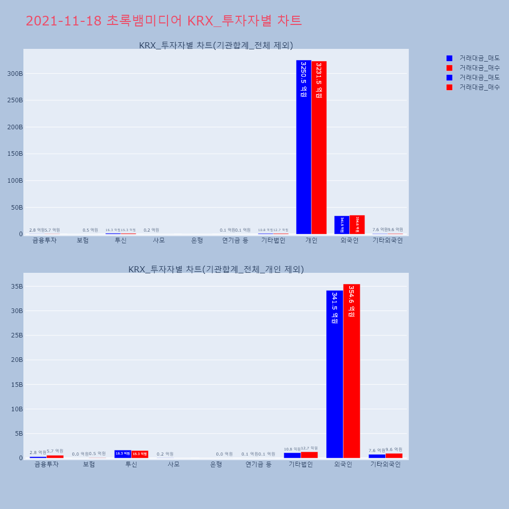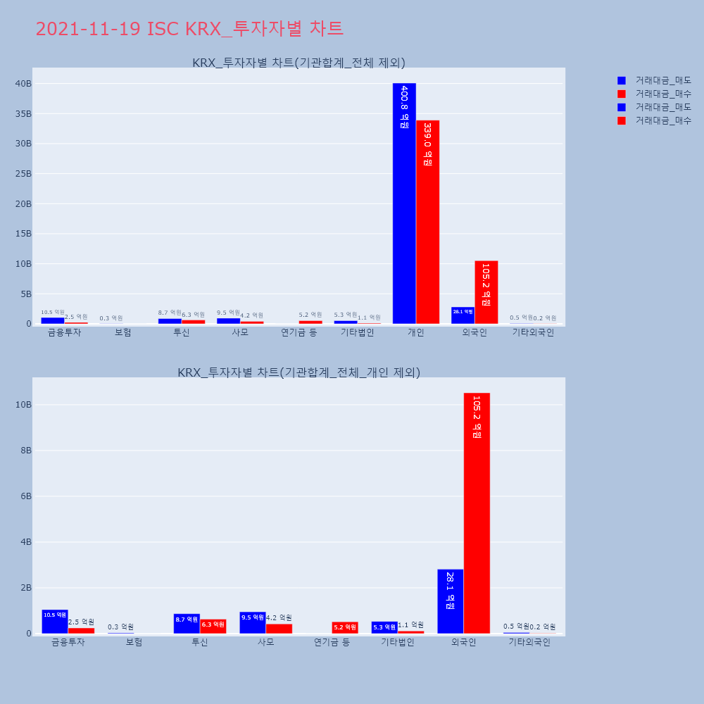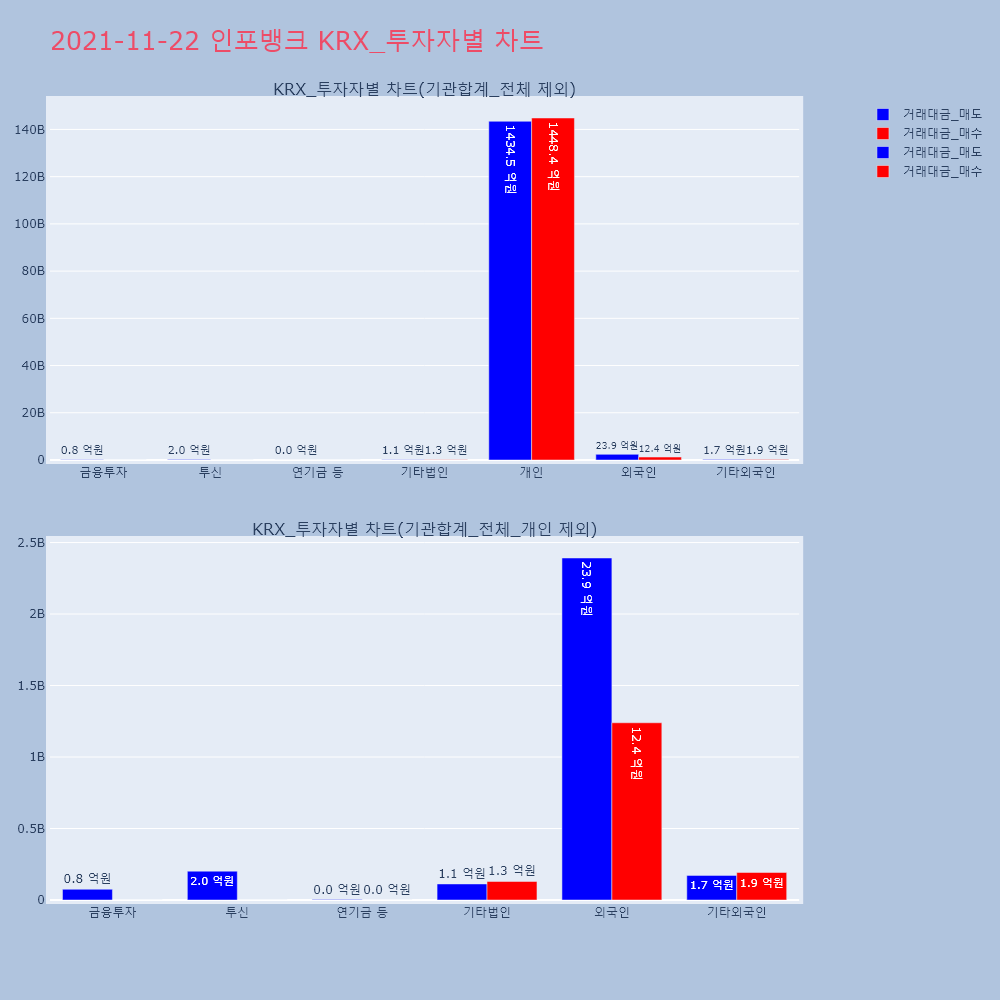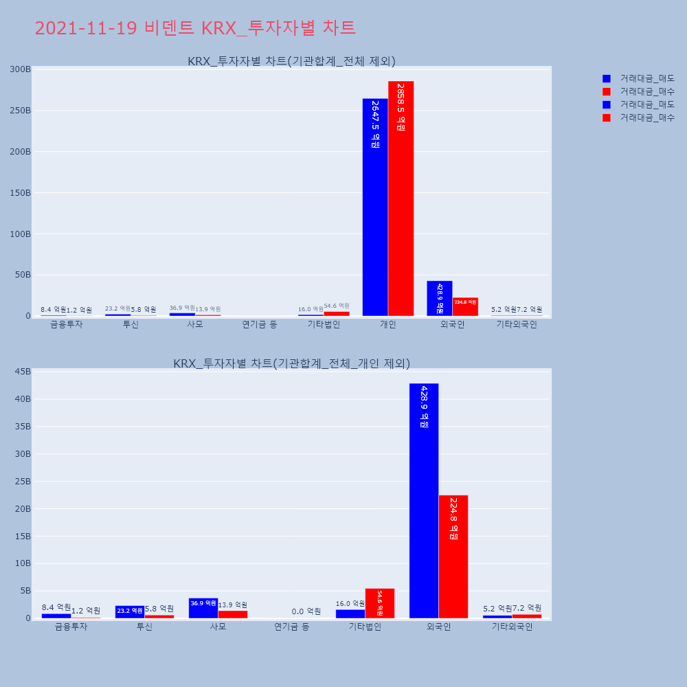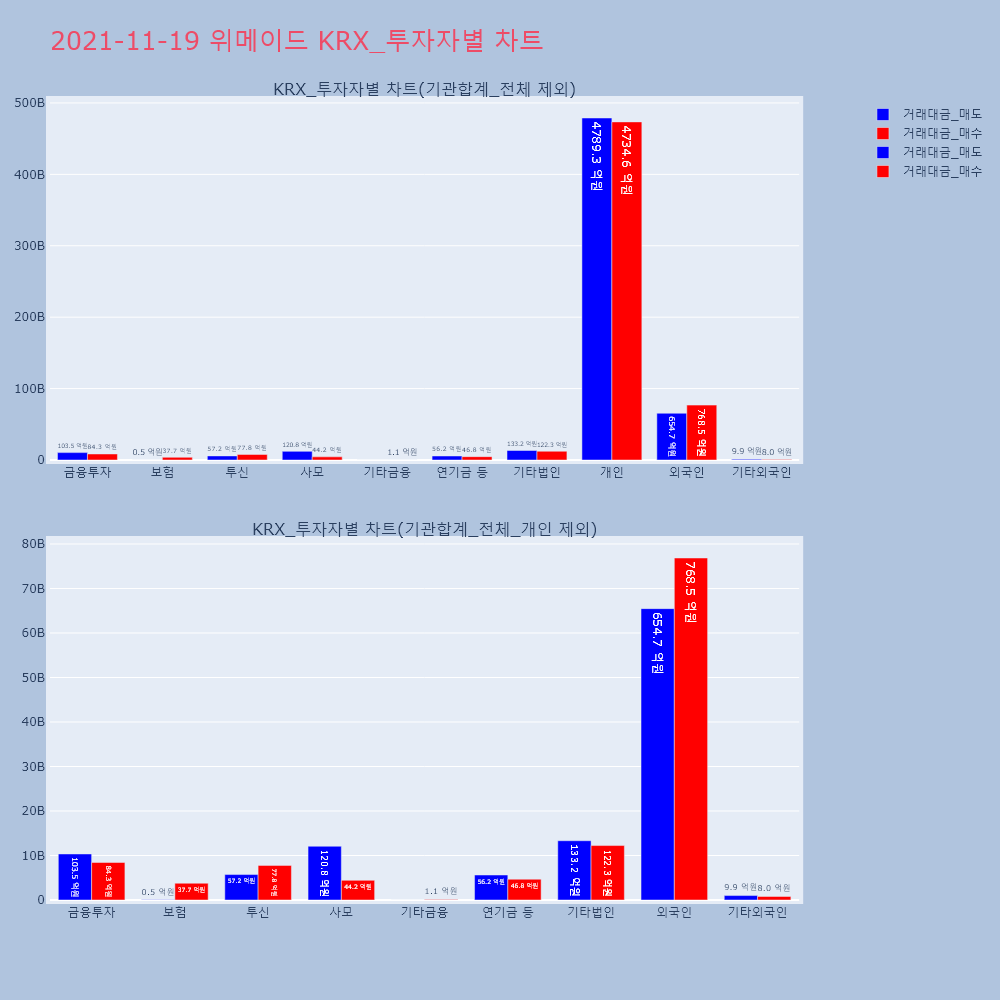 | 투자기관 | 거래량_매도 | 거래량_매수 | 거래량_순매수 | 거래대금_매도 | 거래대금_매수 | 거래대금_순매수 |