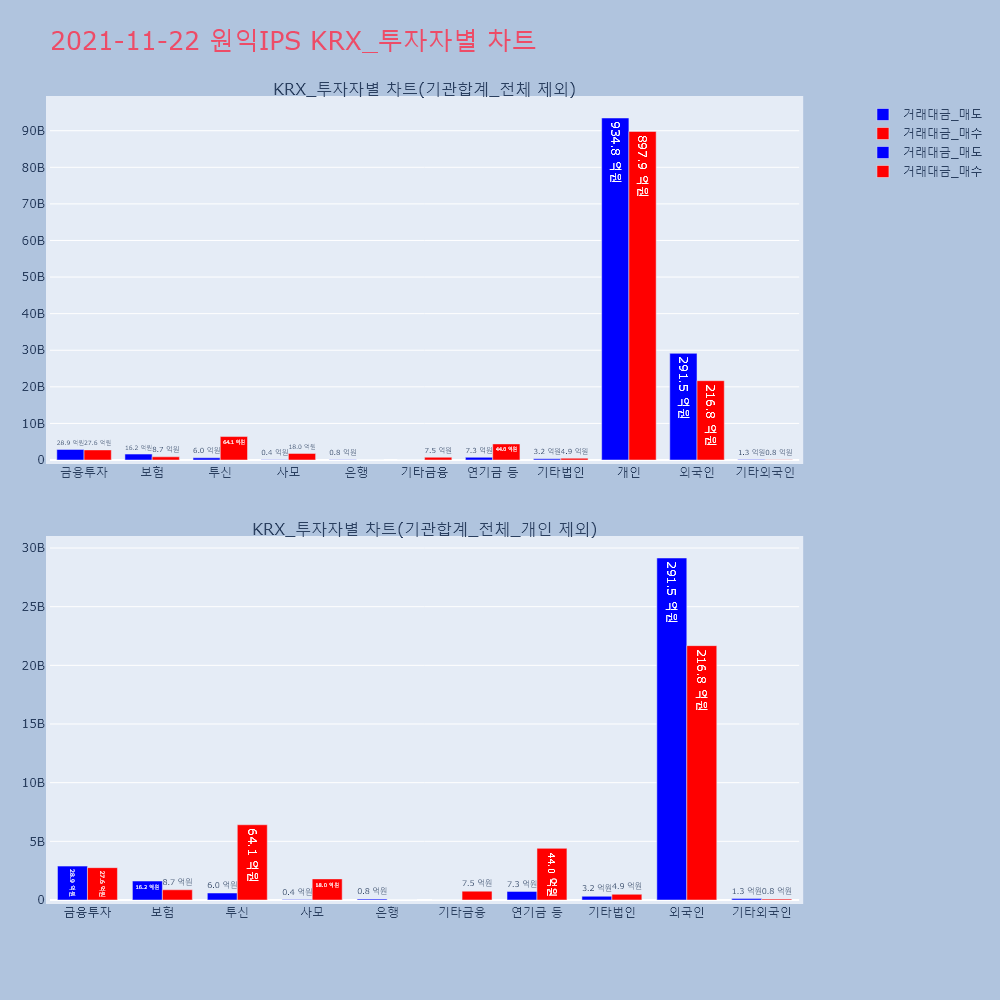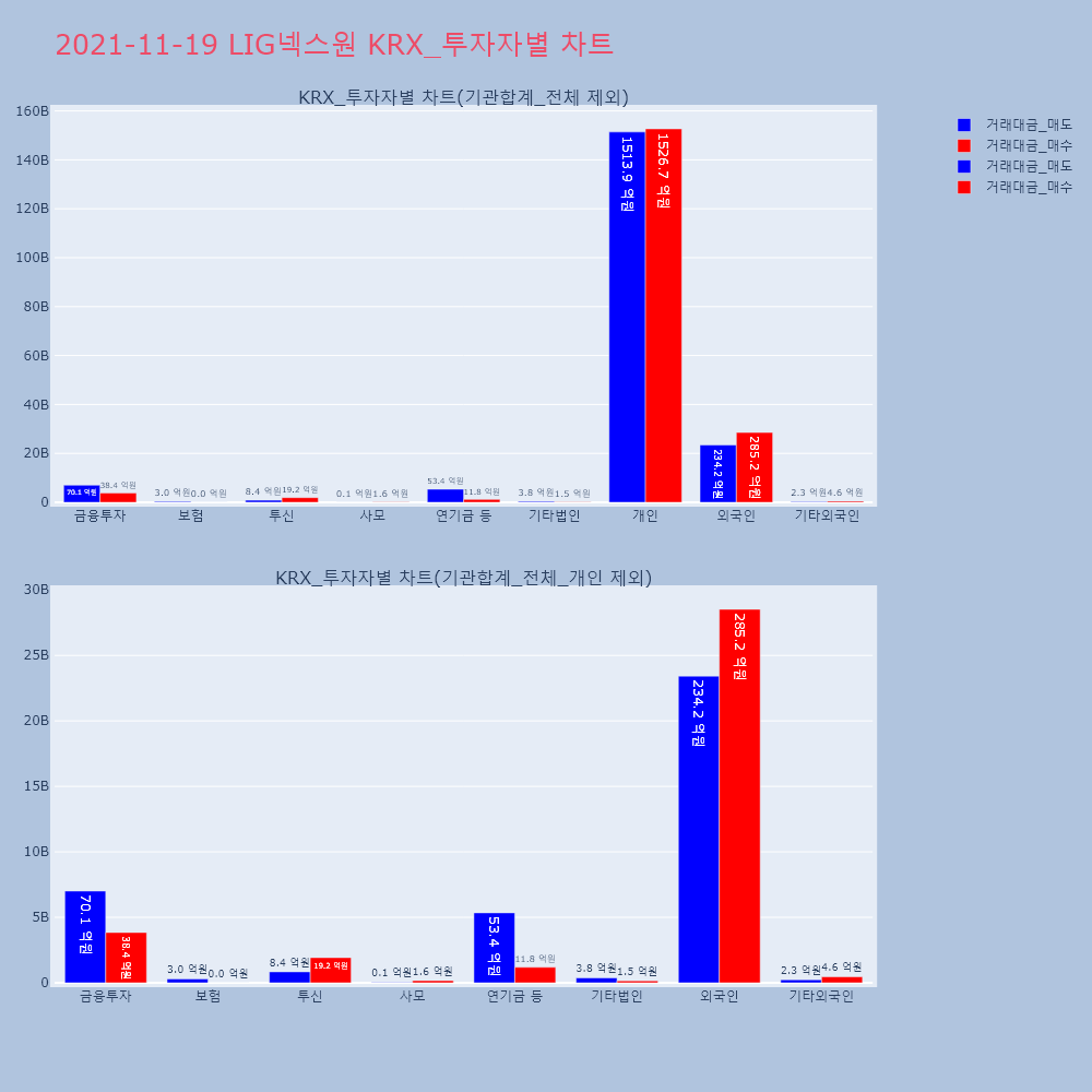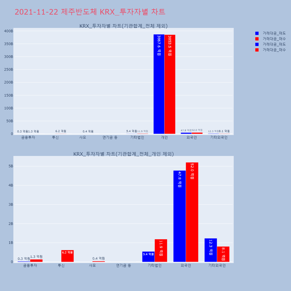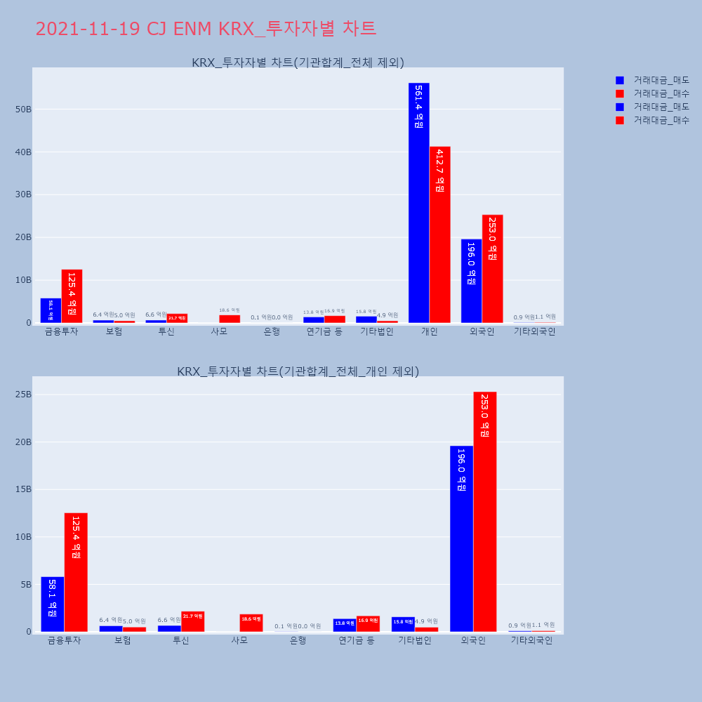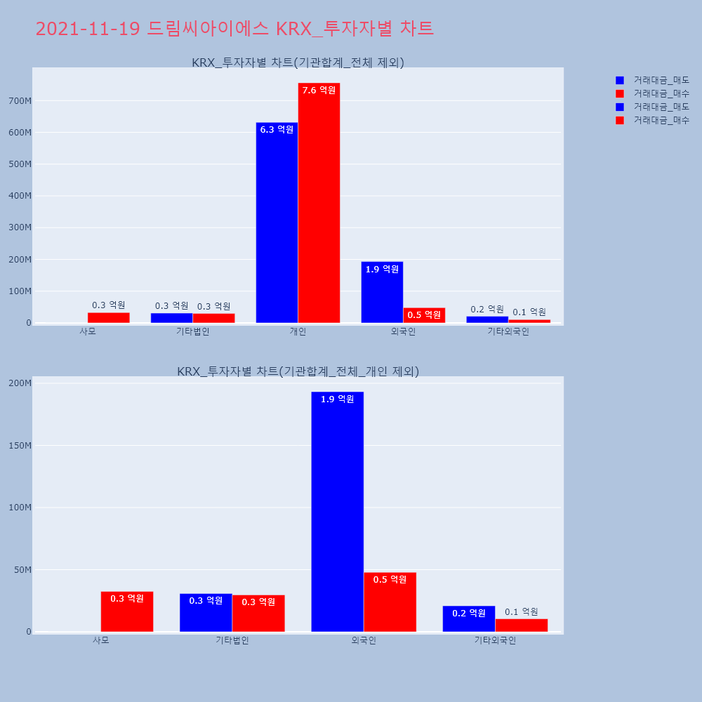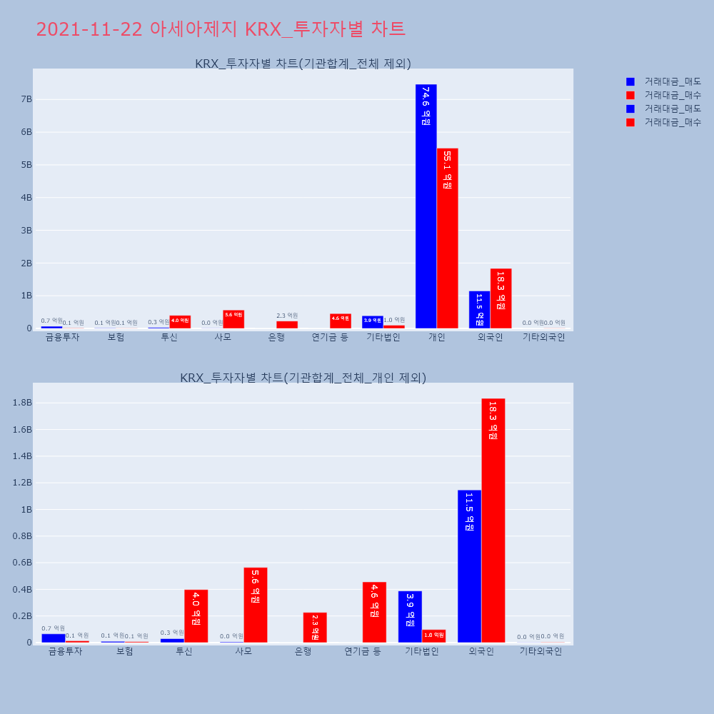 | 투자기관 | 거래량_매도 | 거래량_매수 | 거래량_순매수 | 거래대금_매도 | 거래대금_매수 | 거래대금_순매수 |