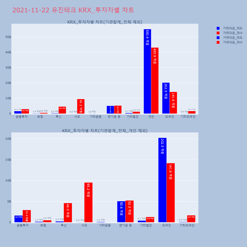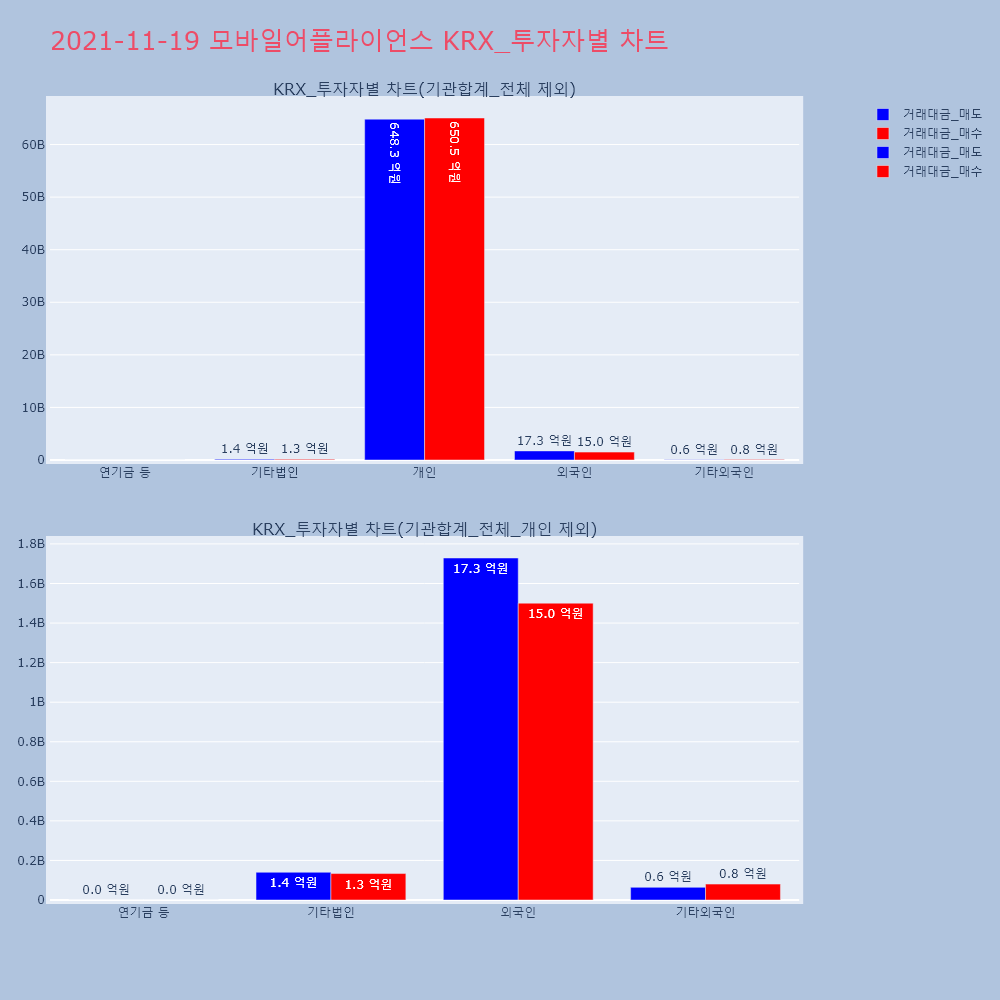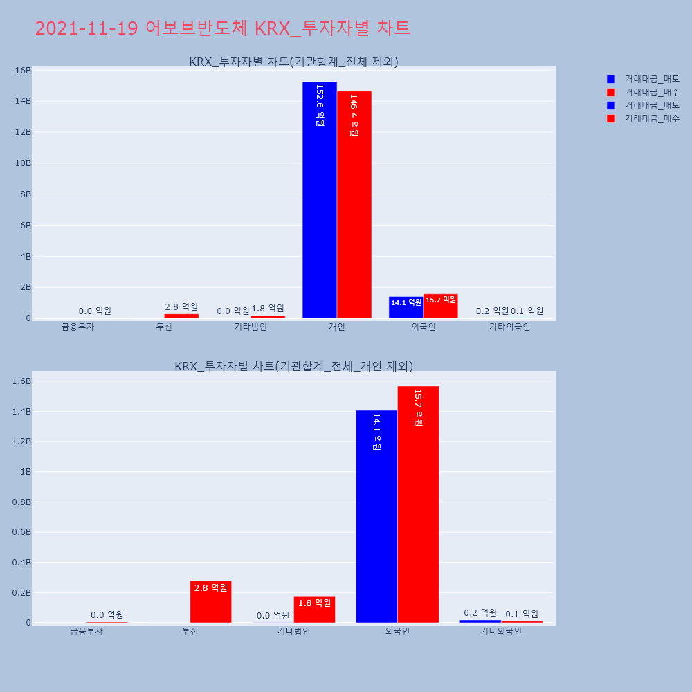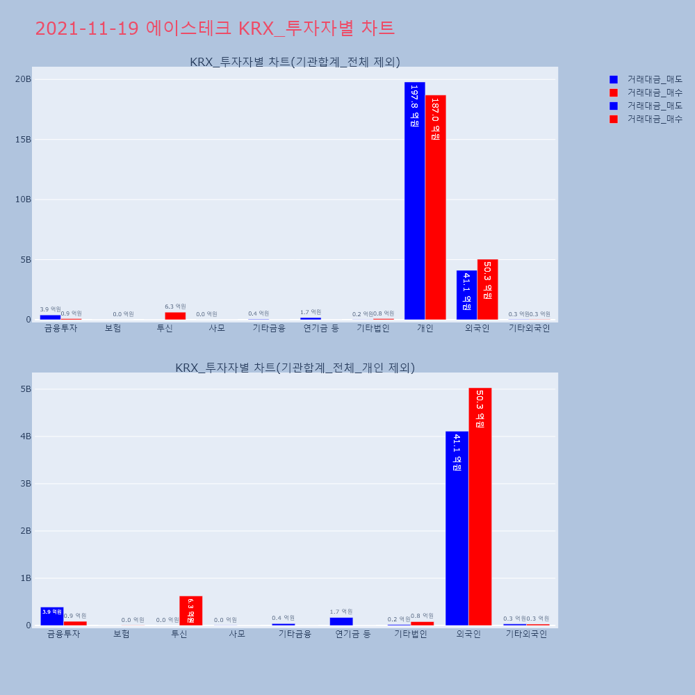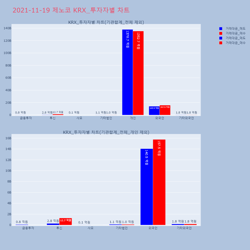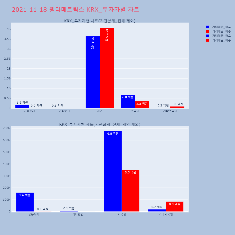 | 투자기관 | 거래량_매도 | 거래량_매수 | 거래량_순매수 | 거래대금_매도 | 거래대금_매수 | 거래대금_순매수 |