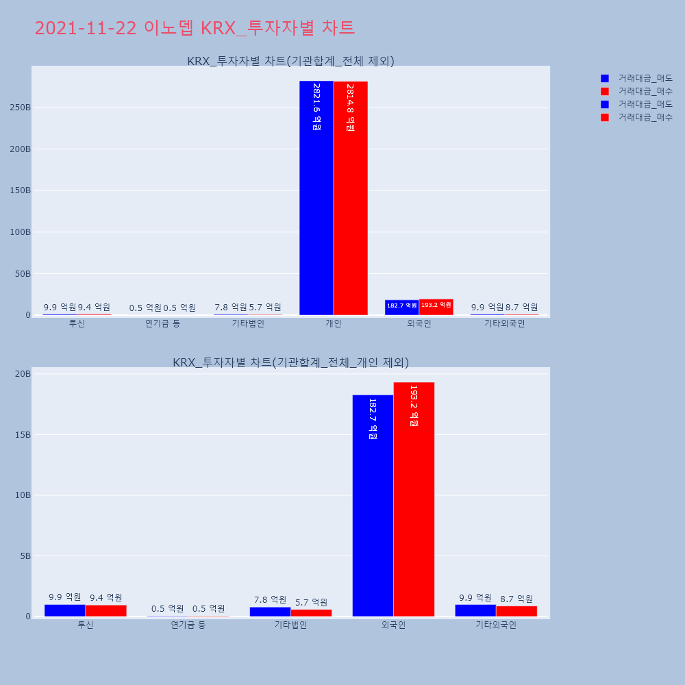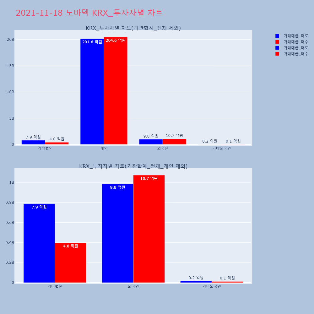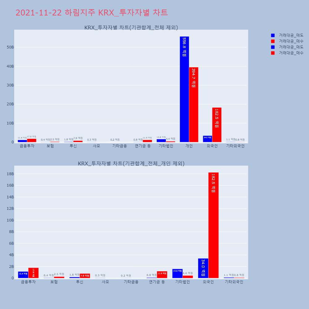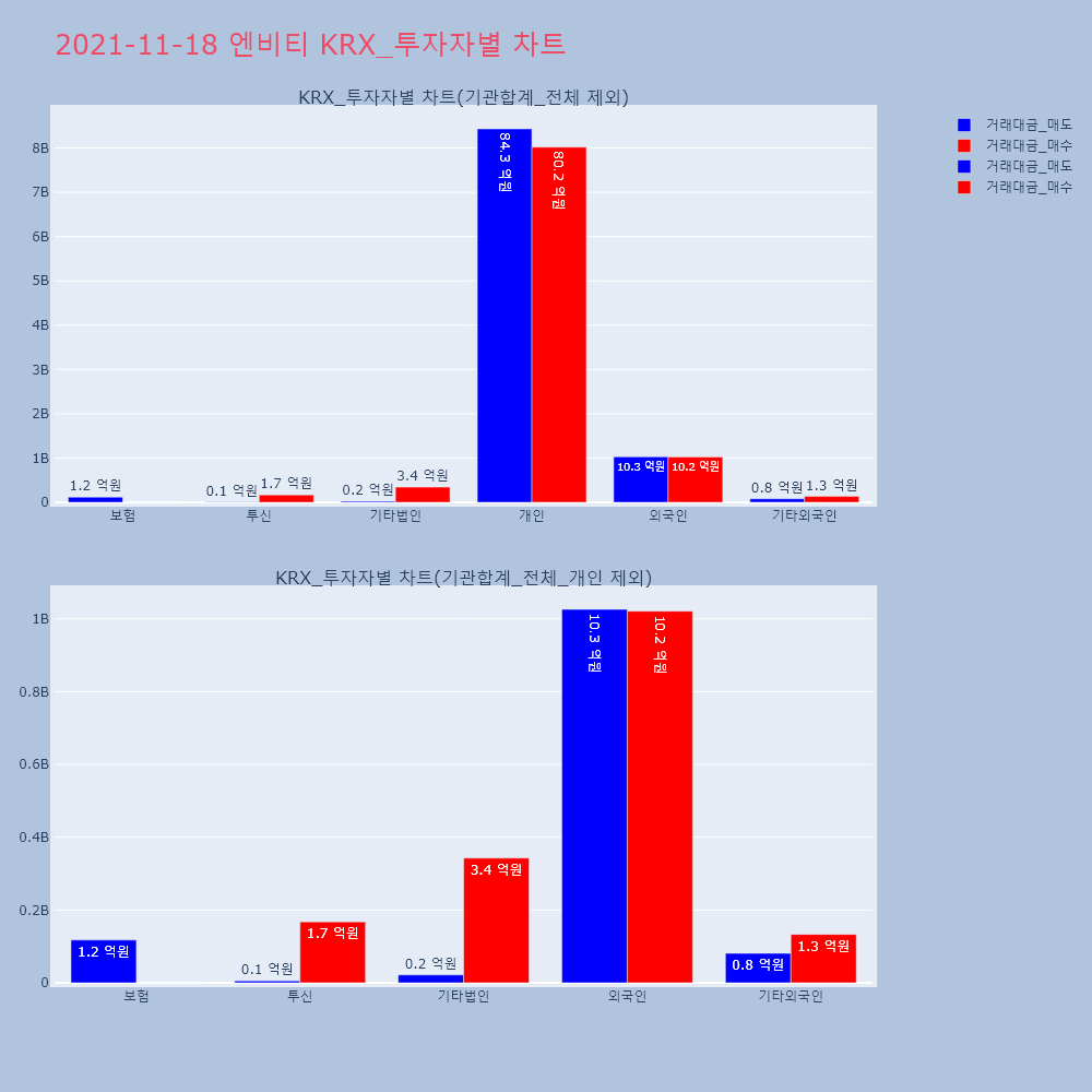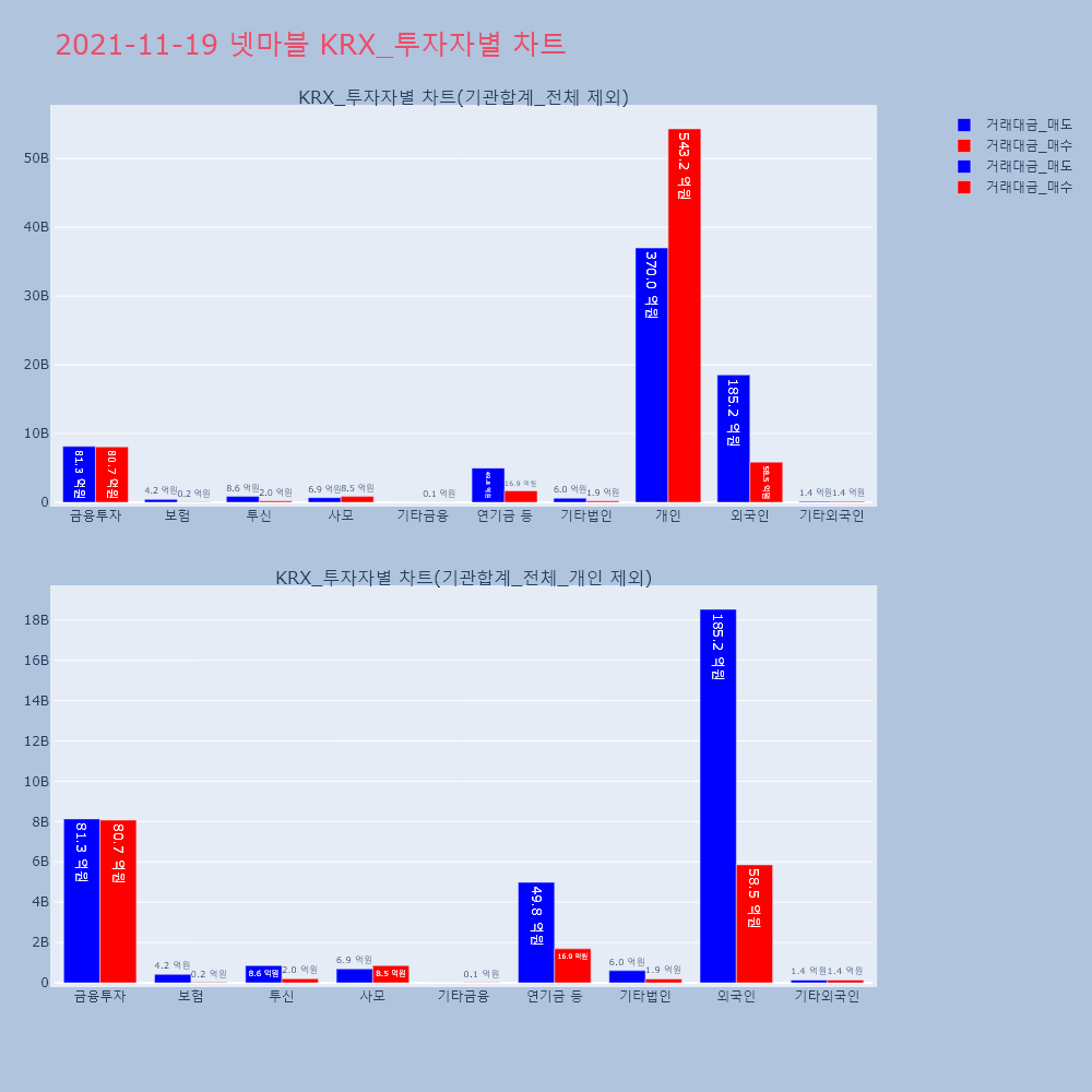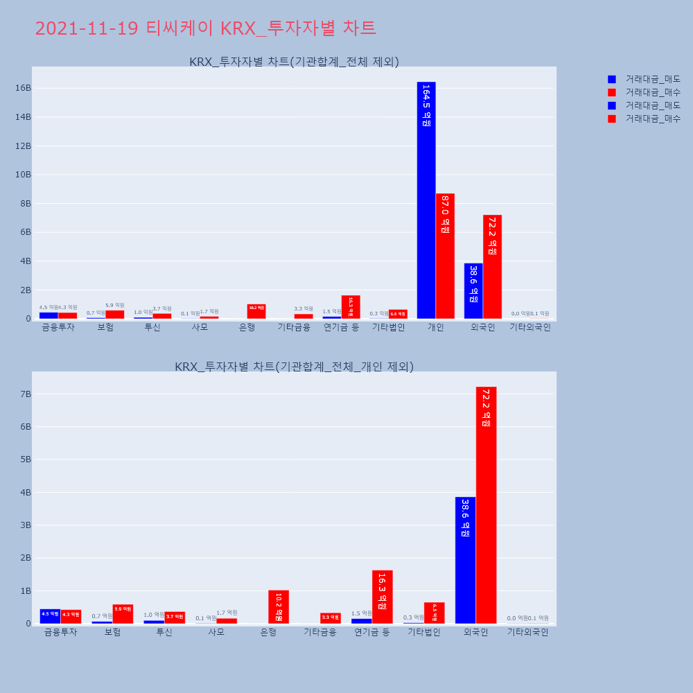 | 투자기관 | 거래량_매도 | 거래량_매수 | 거래량_순매수 | 거래대금_매도 | 거래대금_매수 | 거래대금_순매수 |