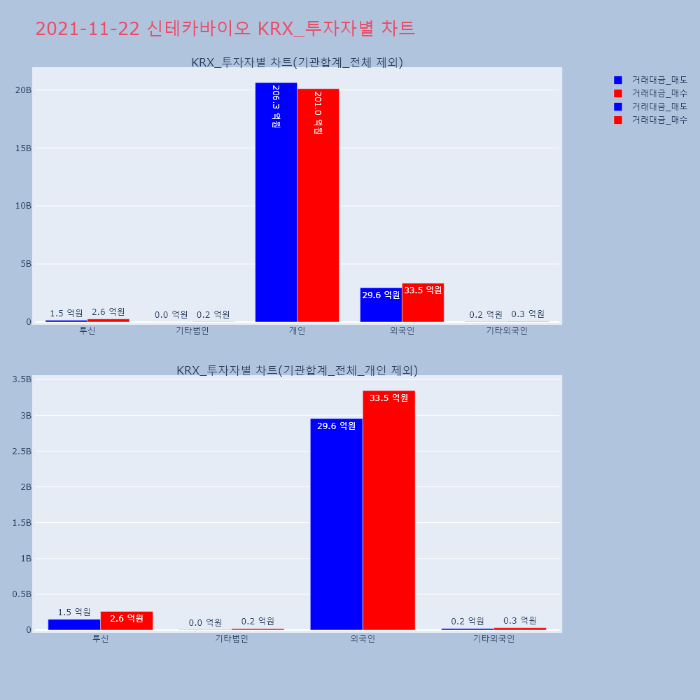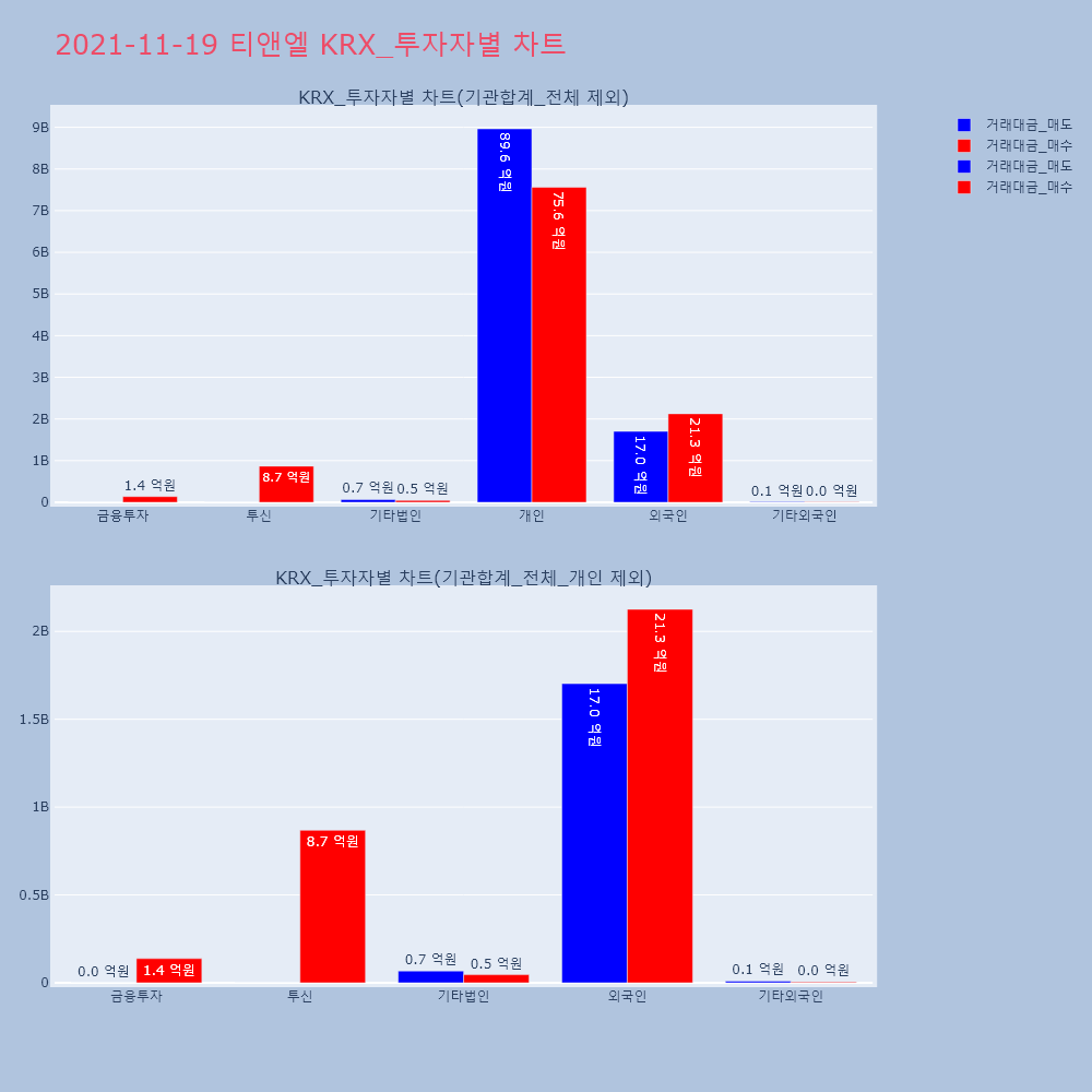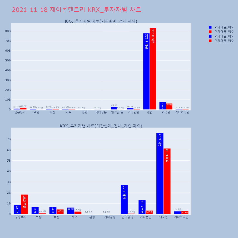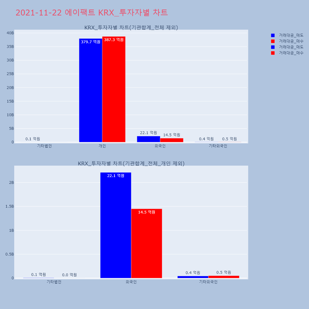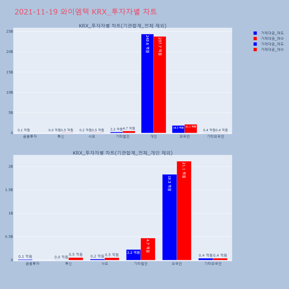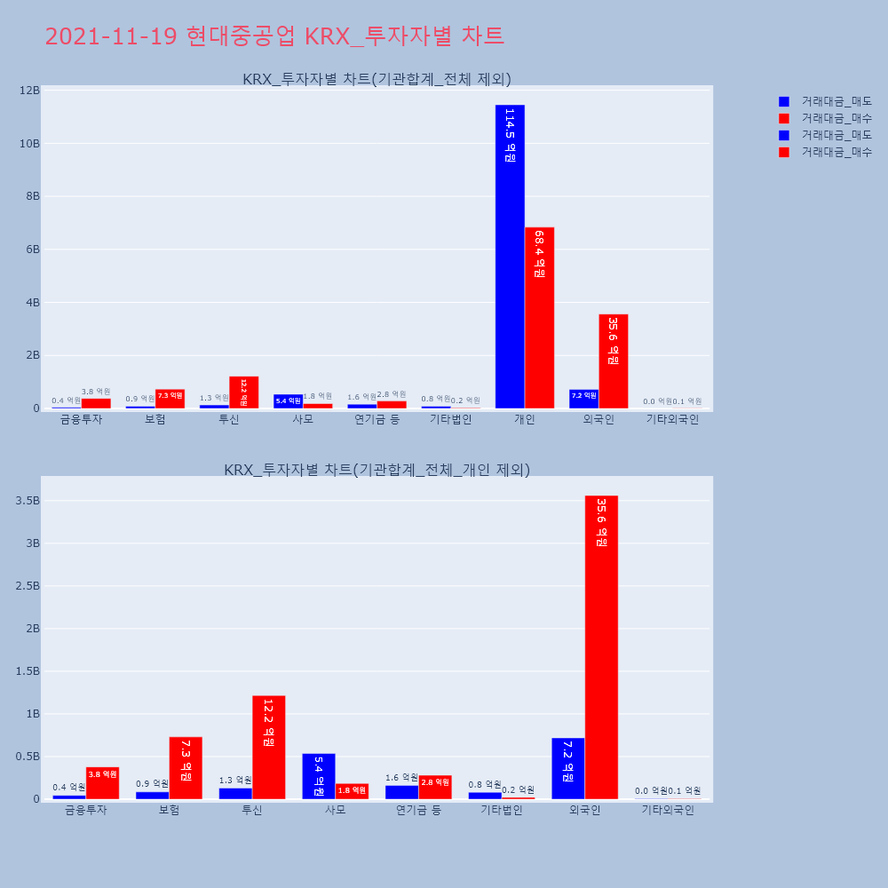 | 투자기관 | 거래량_매도 | 거래량_매수 | 거래량_순매수 | 거래대금_매도 | 거래대금_매수 | 거래대금_순매수 |