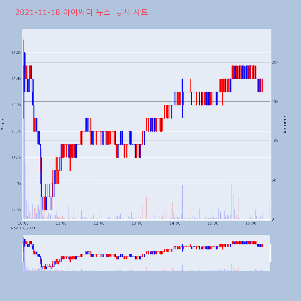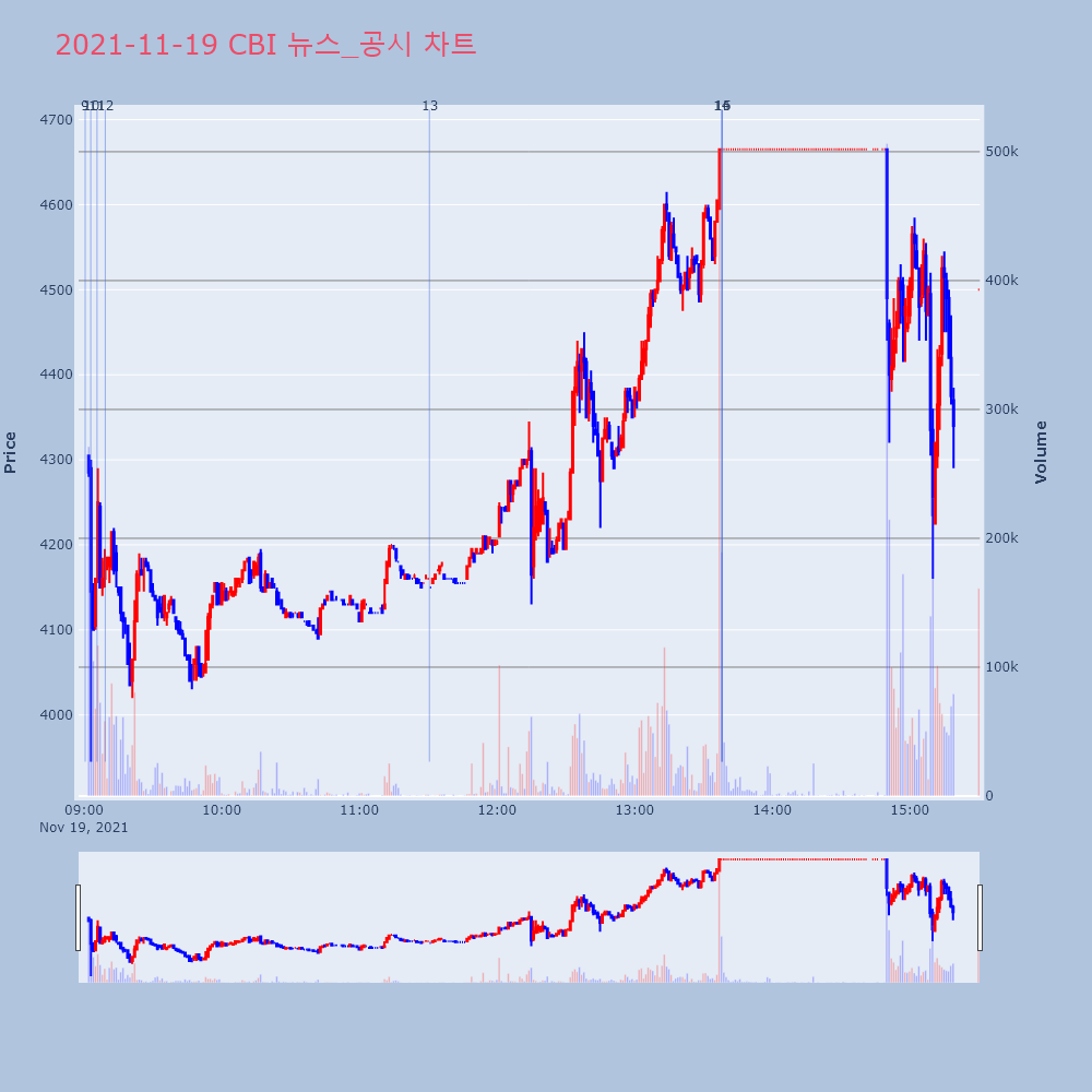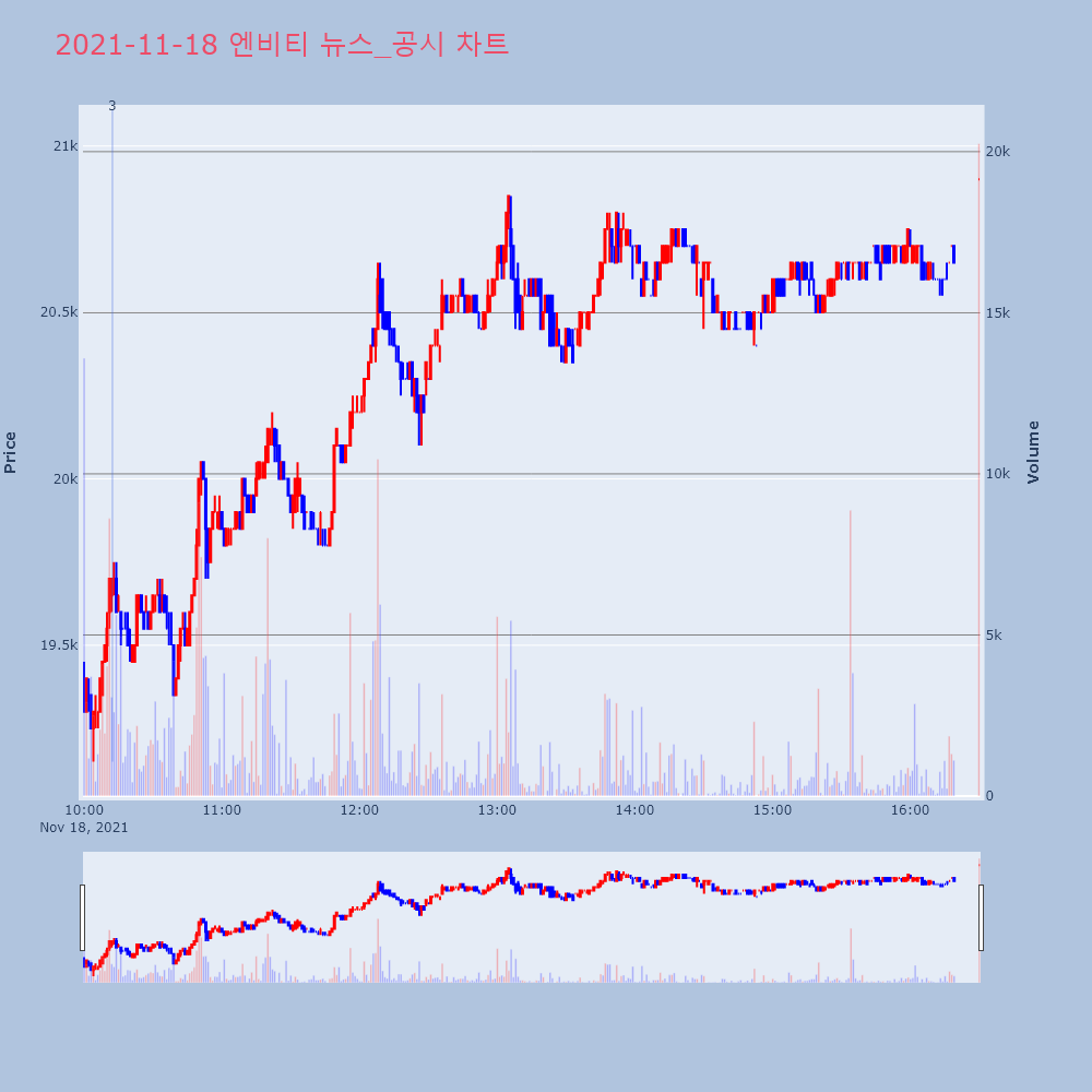 | 13 | 알비더블유 상장 마무리…"엔터株에 콘텐츠 더해 긍정적 전망"- 시초가 대비 9% 내린 3만8950원, 공모가 대비 | 이데일리 | 알비더블유 | 2021-11-22 15:49:46 |