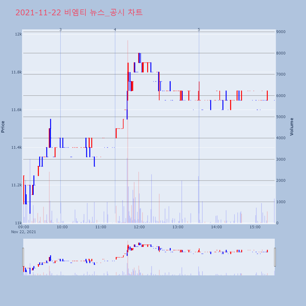 | 5 | [특징주] 비엠티, 부산 신공장에 340억 투자 소식에 강세 제목 : [특징주] 비엠티, 부산 신공장에 340억 투 | 인포스탁 | 비엠티 | 2021-11-22 13:32:53 |