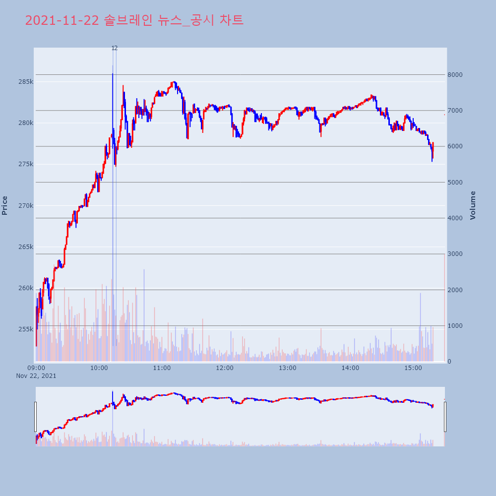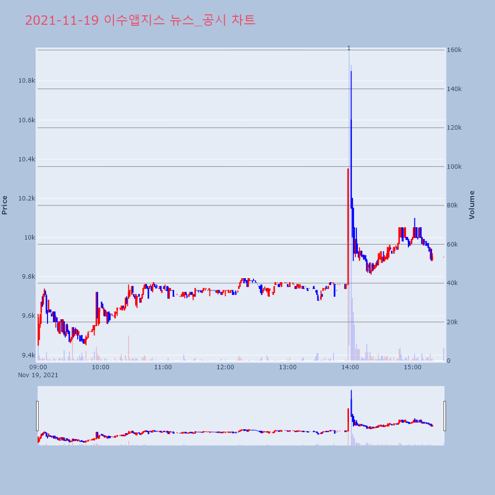| 1 | [이시각 상한가] 알비더블유(▲12800) - 22일 오전 9시[이투데이/e2BOT 기자(e2bot@etoday.co | 이투데이 | 알비더블유 | 2021-11-22 09:01:02 |