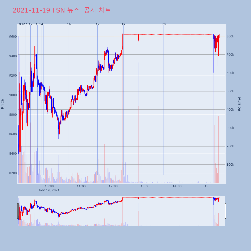 | 9 | [장초반 인기 검색 종목 PICK5] - 알비더블유, 아이오케이, 비덴트... 최적의 매매타이밍을 실시간으로 전송하여 투자자들에게 도 | 파이낸셜 | 제이콘텐트리 | 2021-11-22 10:11:16 |