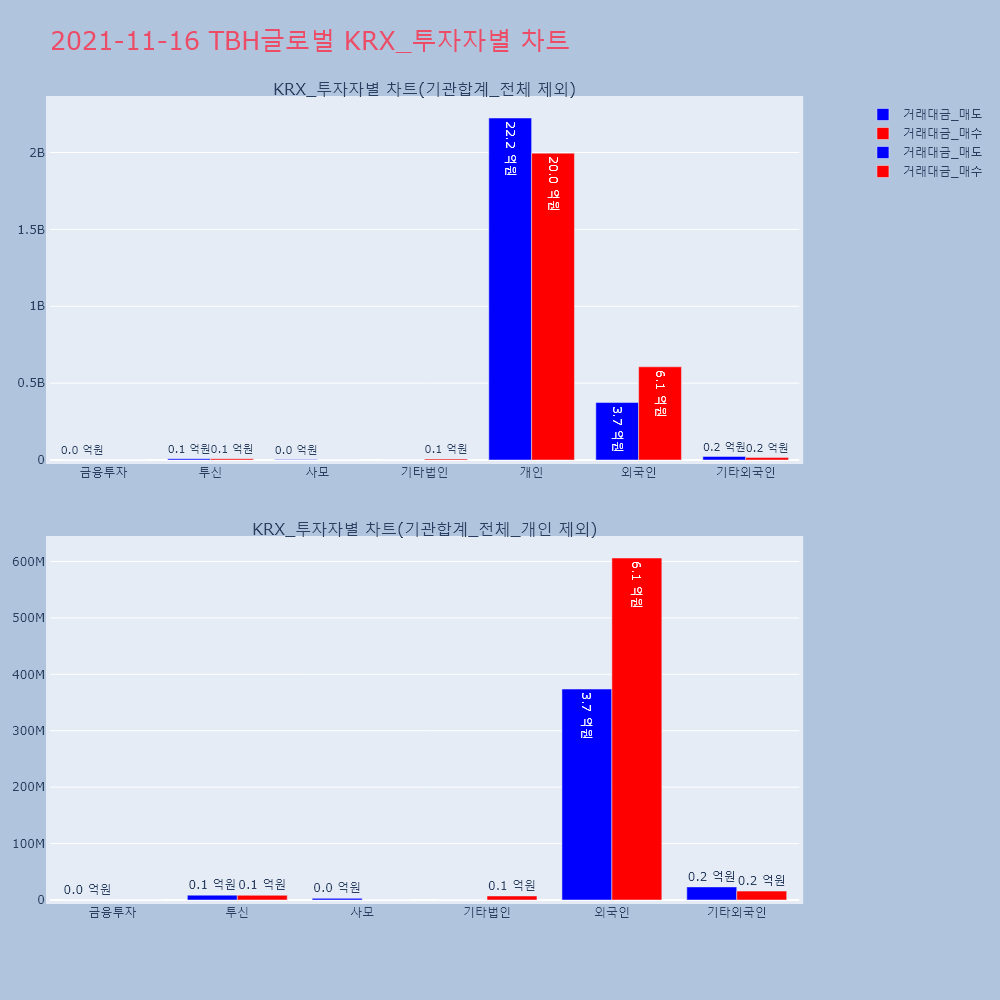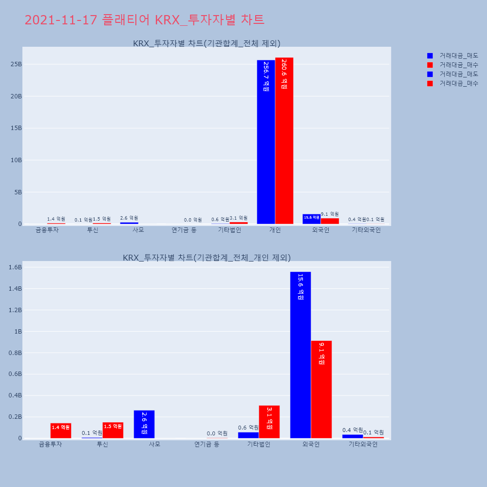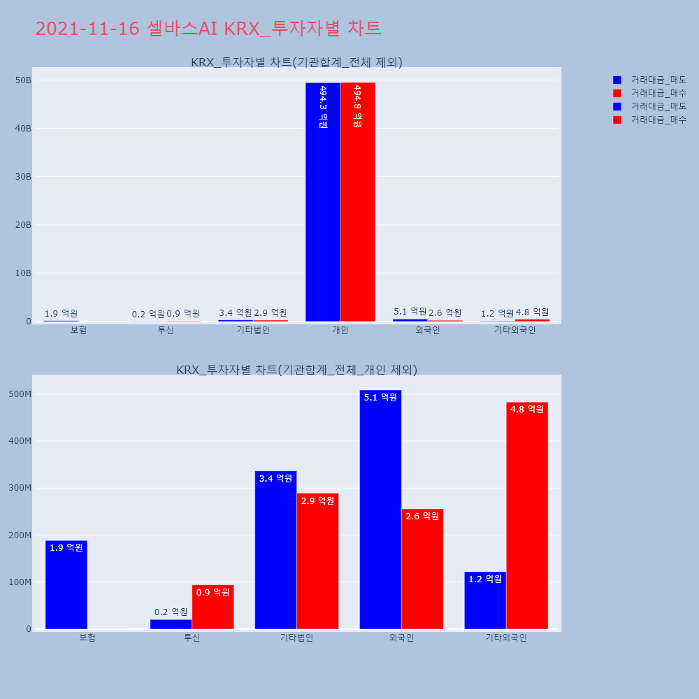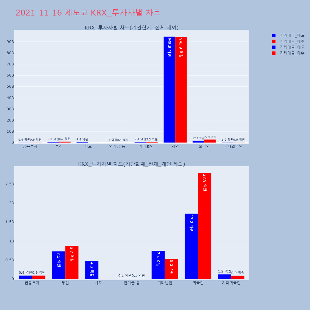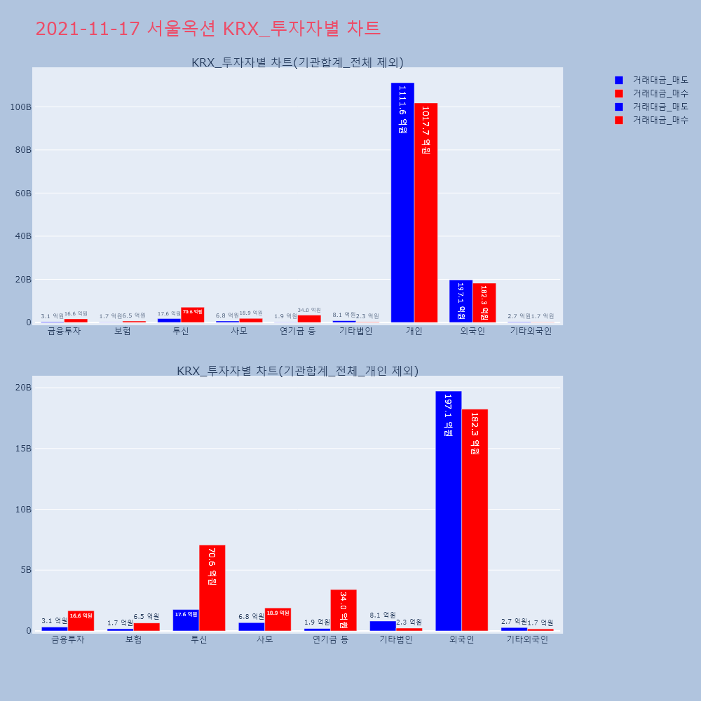 | 투자기관 | 거래량_매도 | 거래량_매수 | 거래량_순매수 | 거래대금_매도 | 거래대금_매수 | 거래대금_순매수 |