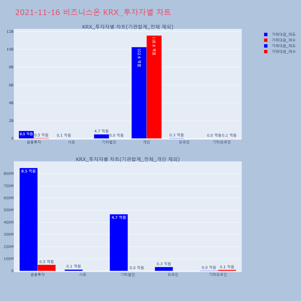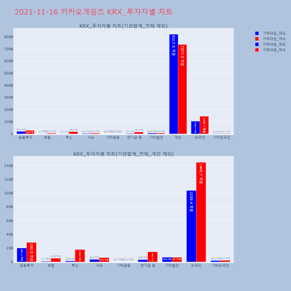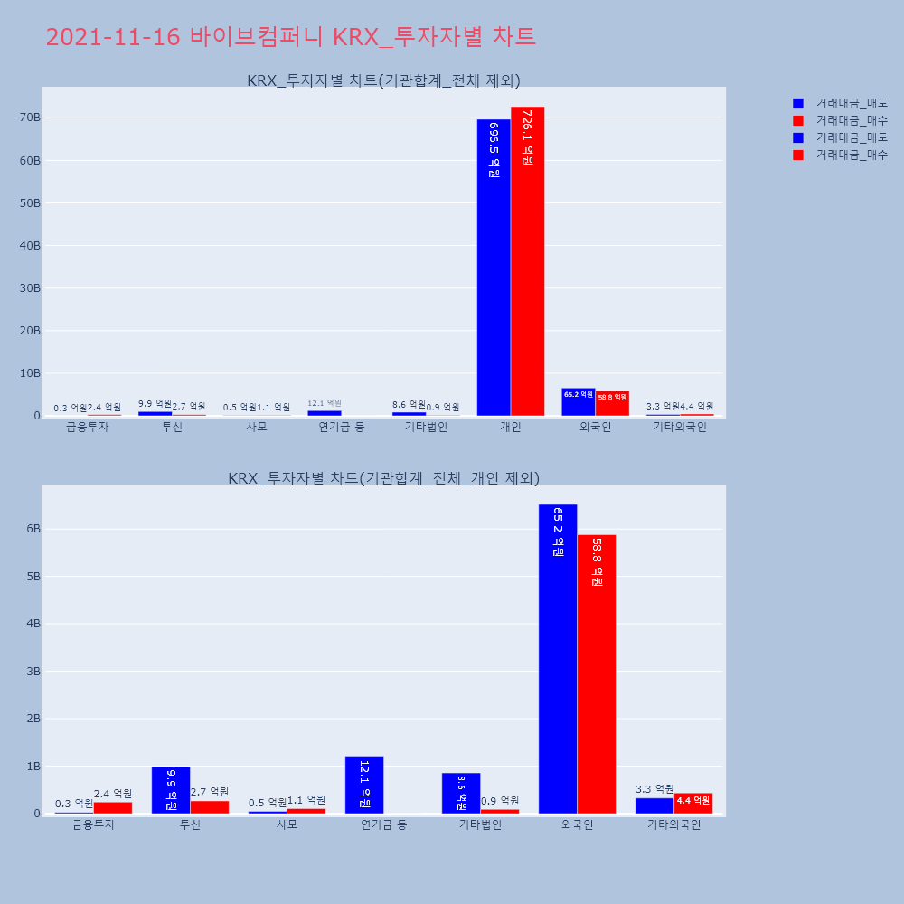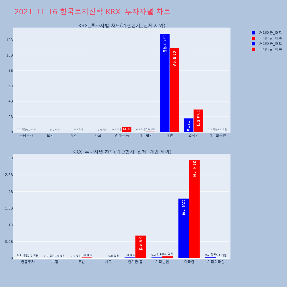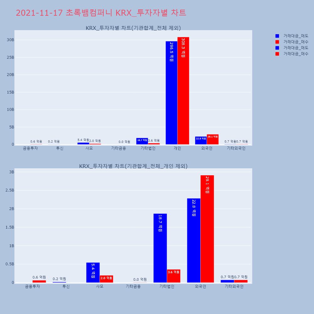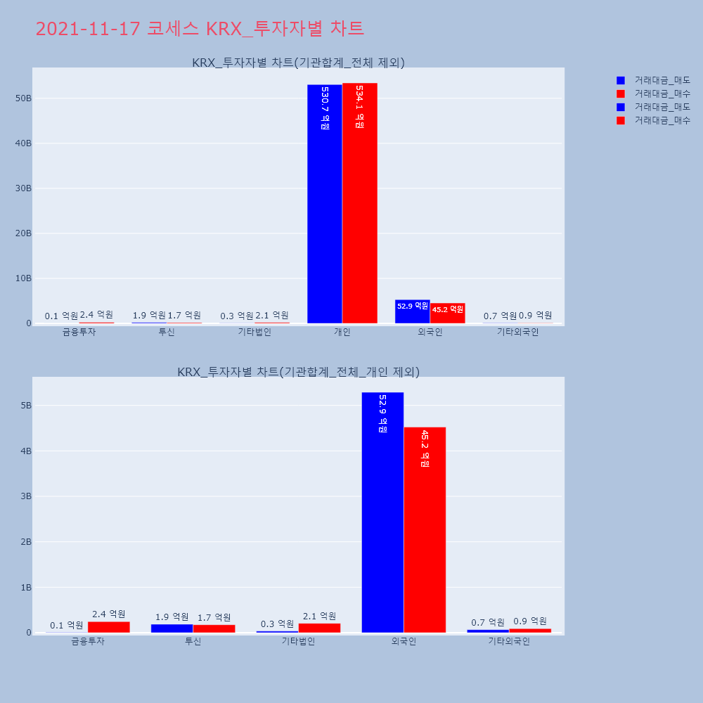| 투자기관 | 거래량_매도 | 거래량_매수 | 거래량_순매수 | 거래대금_매도 | 거래대금_매수 | 거래대금_순매수 |