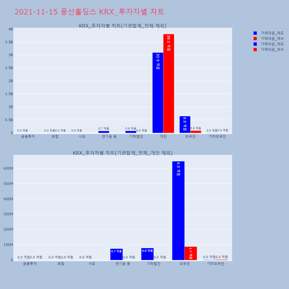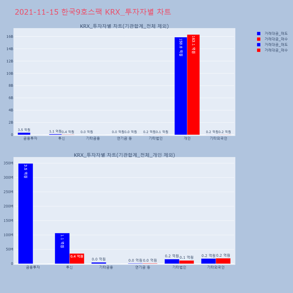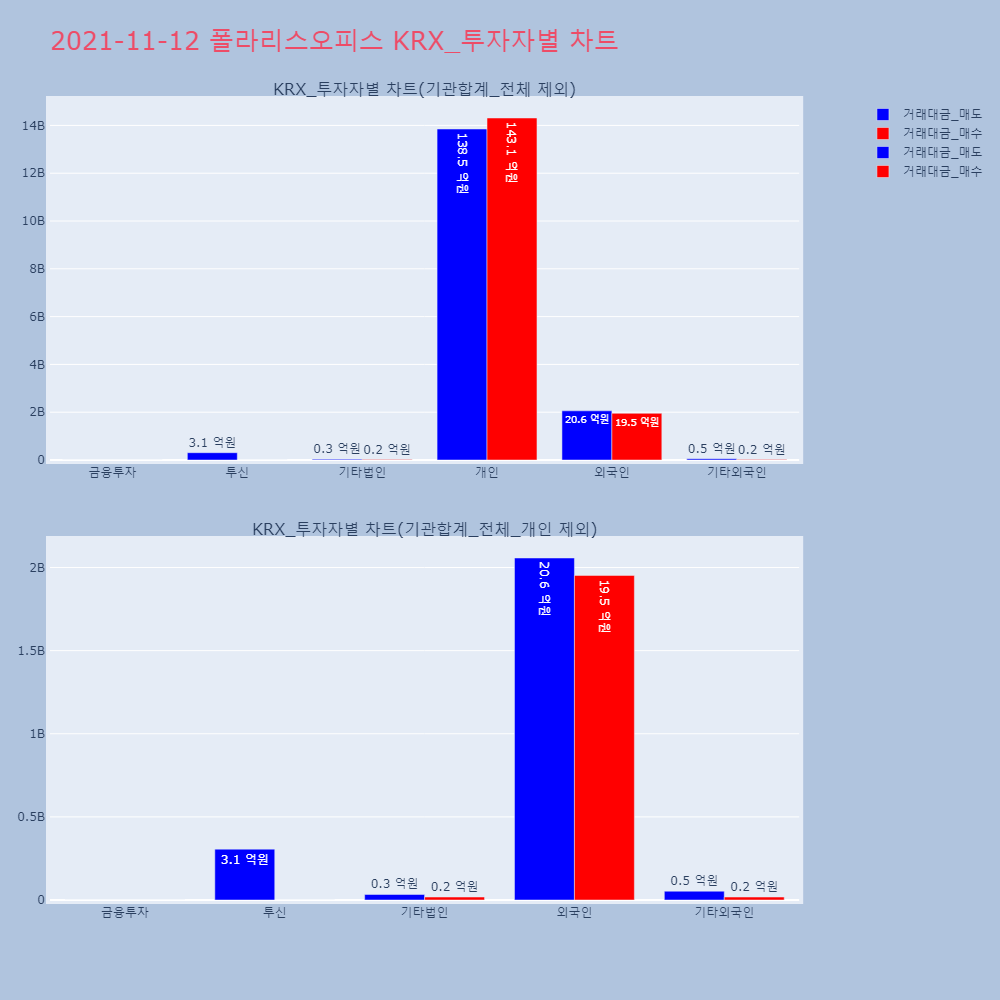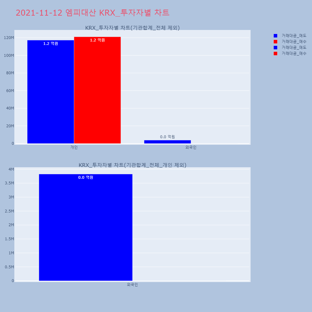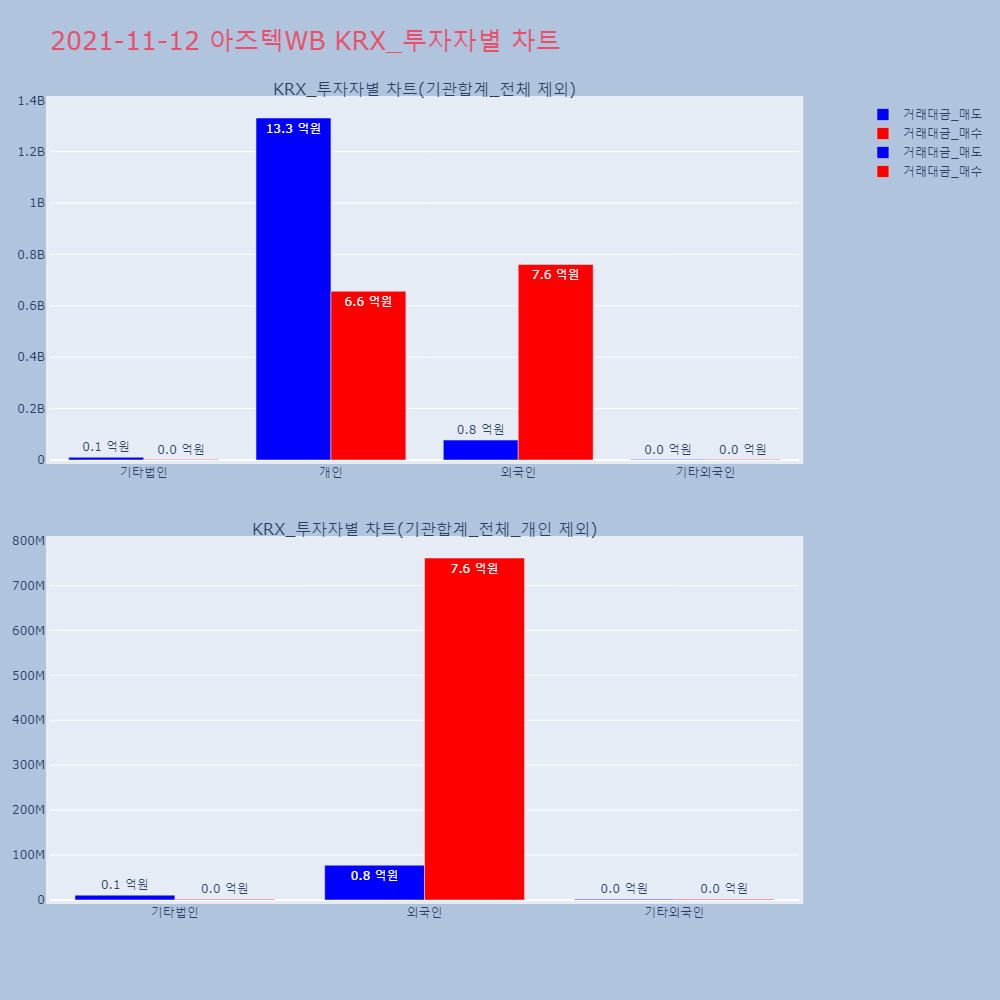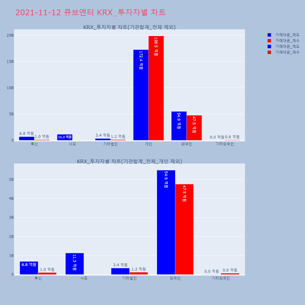 | 투자기관 | 거래량_매도 | 거래량_매수 | 거래량_순매수 | 거래대금_매도 | 거래대금_매수 | 거래대금_순매수 |