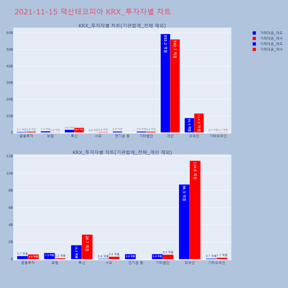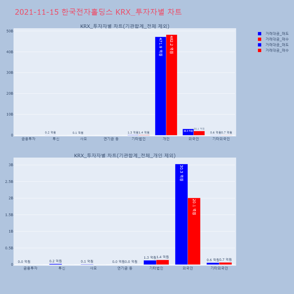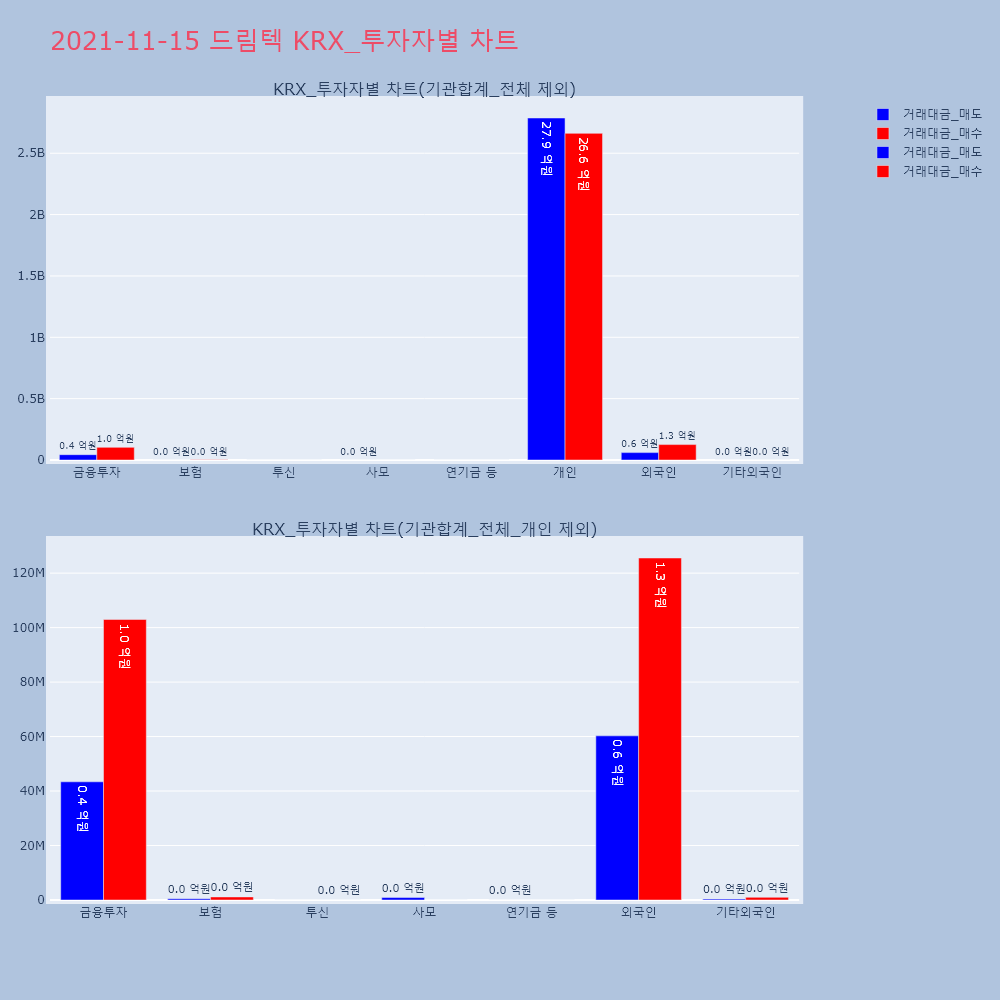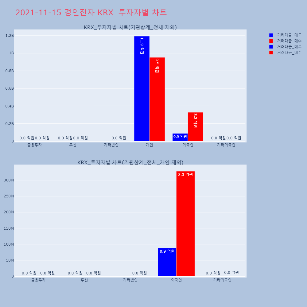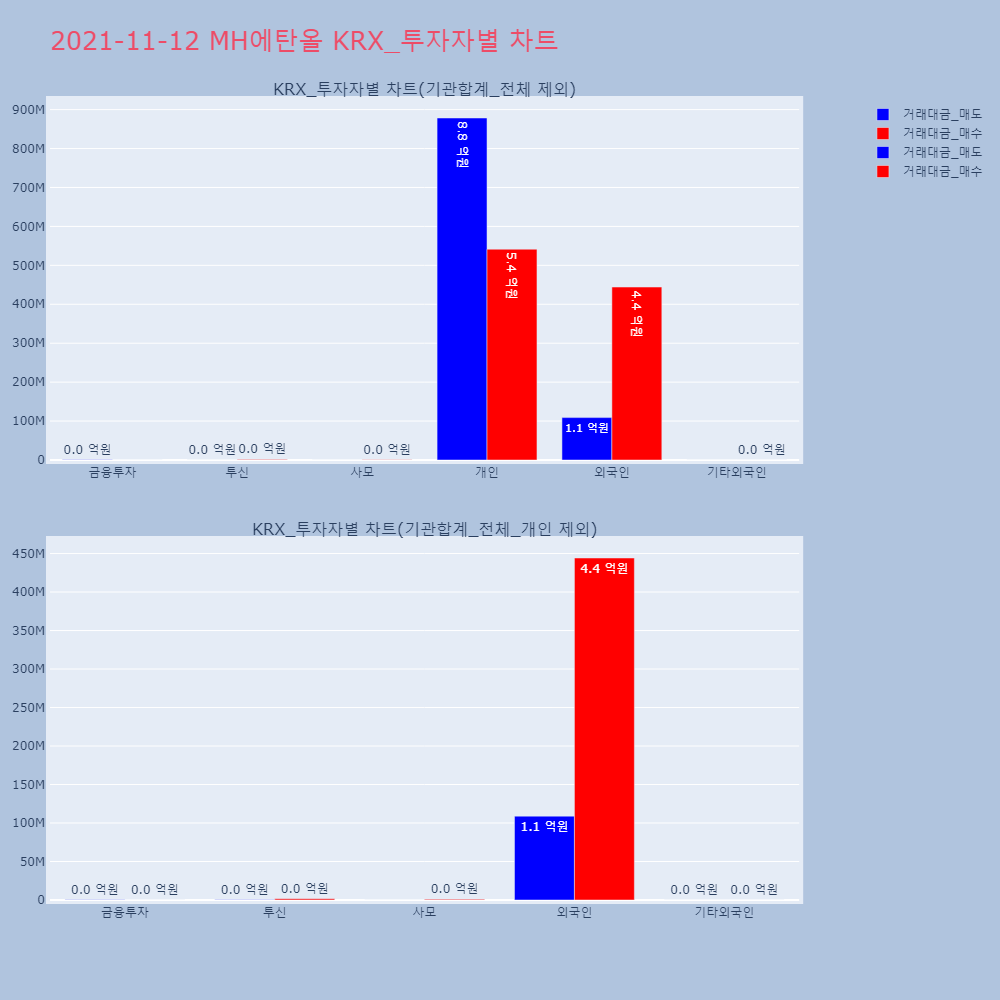 | 투자기관 | 거래량_매도 | 거래량_매수 | 거래량_순매수 | 거래대금_매도 | 거래대금_매수 | 거래대금_순매수 |