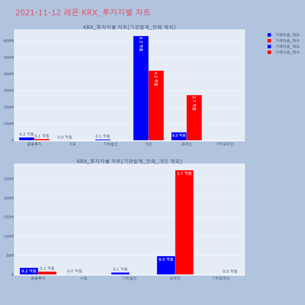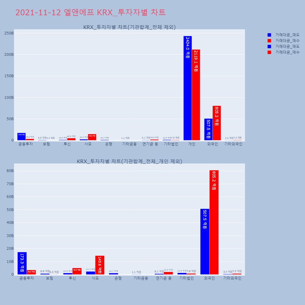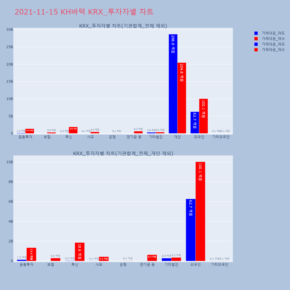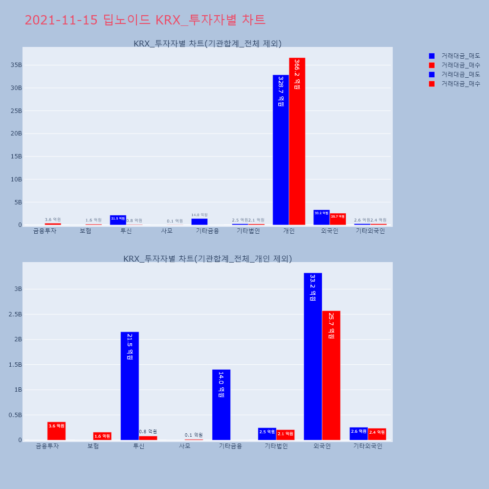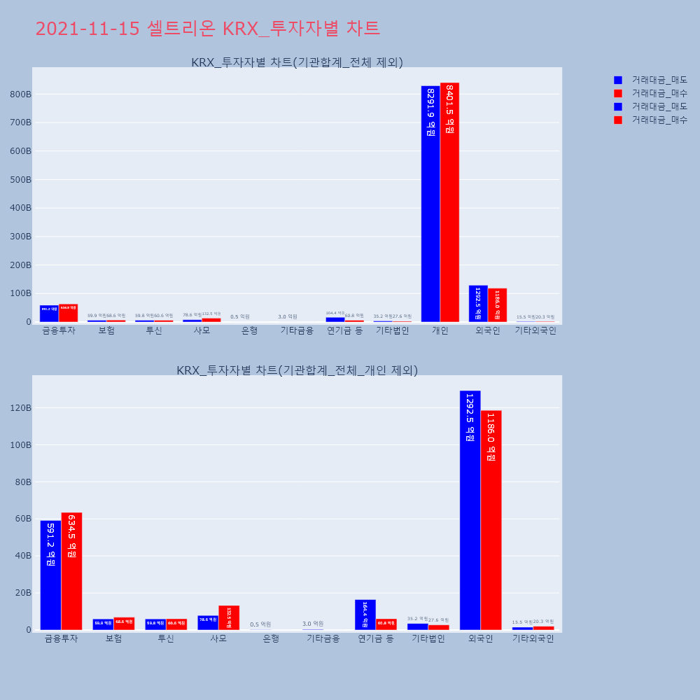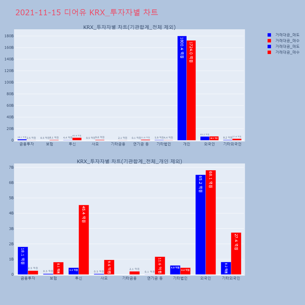 | 투자기관 | 거래량_매도 | 거래량_매수 | 거래량_순매수 | 거래대금_매도 | 거래대금_매수 | 거래대금_순매수 |