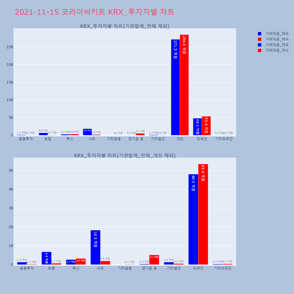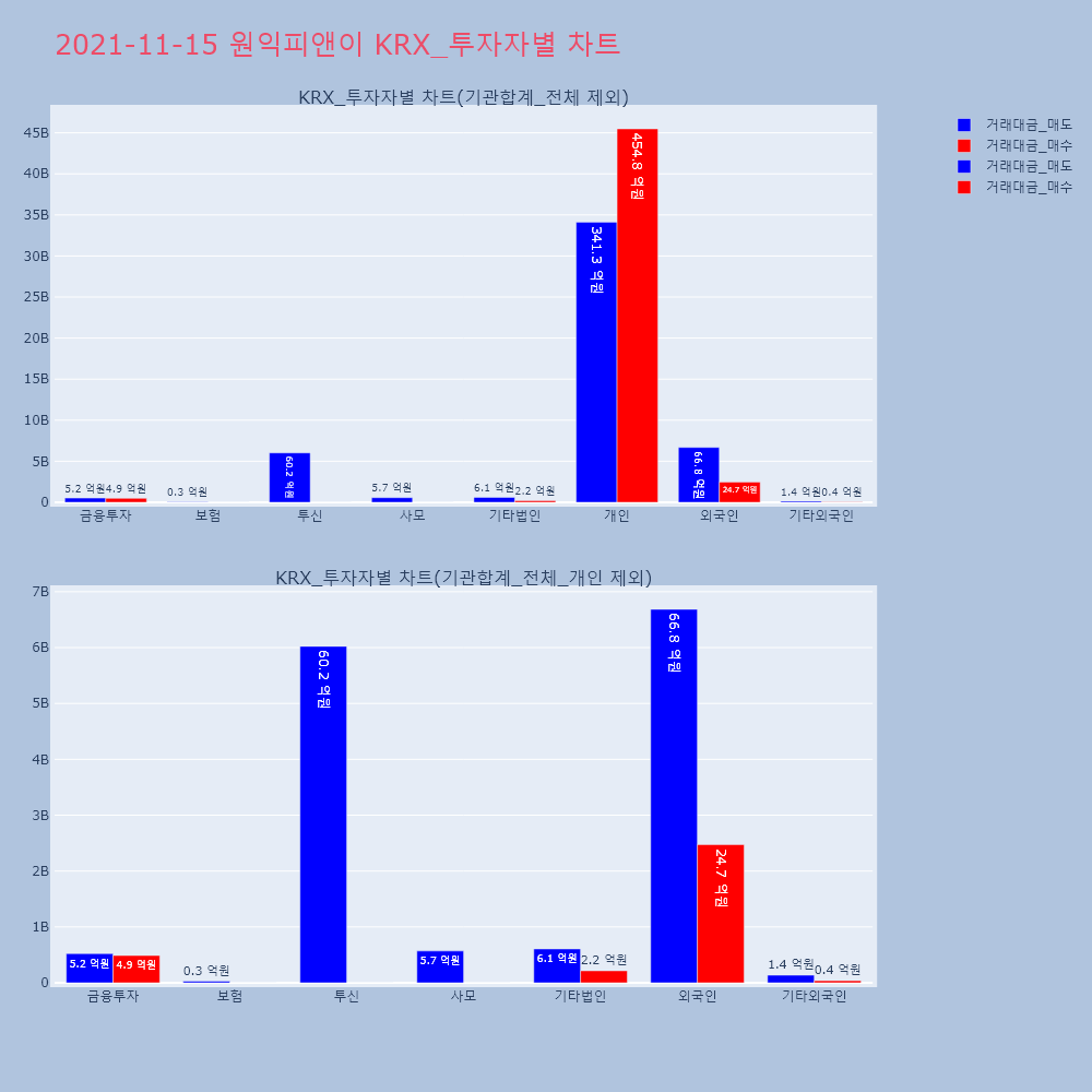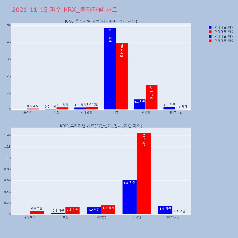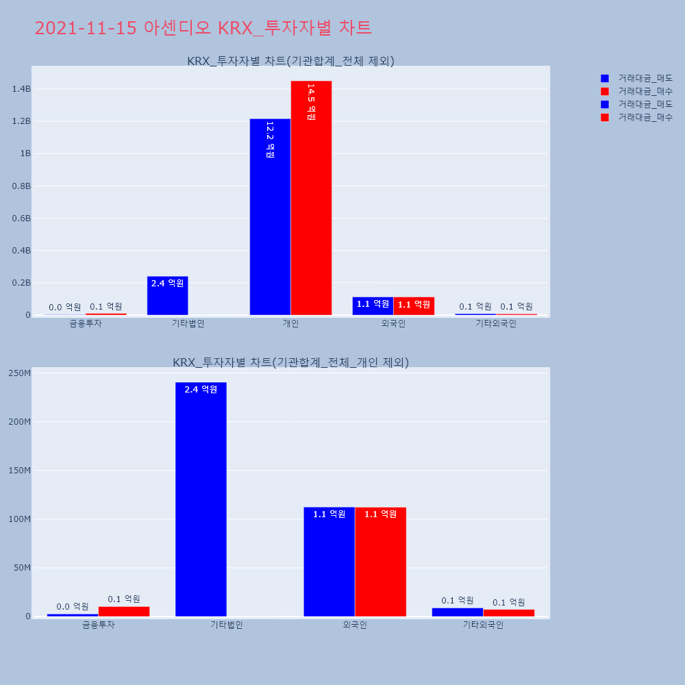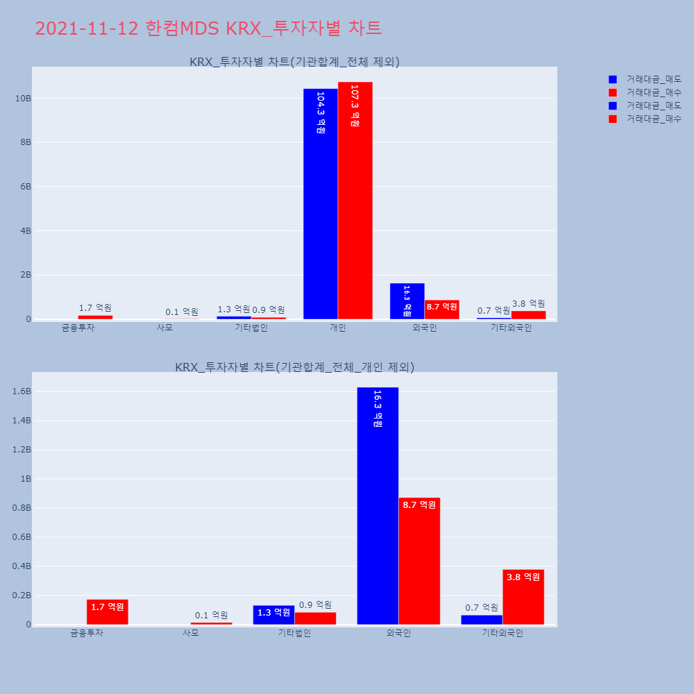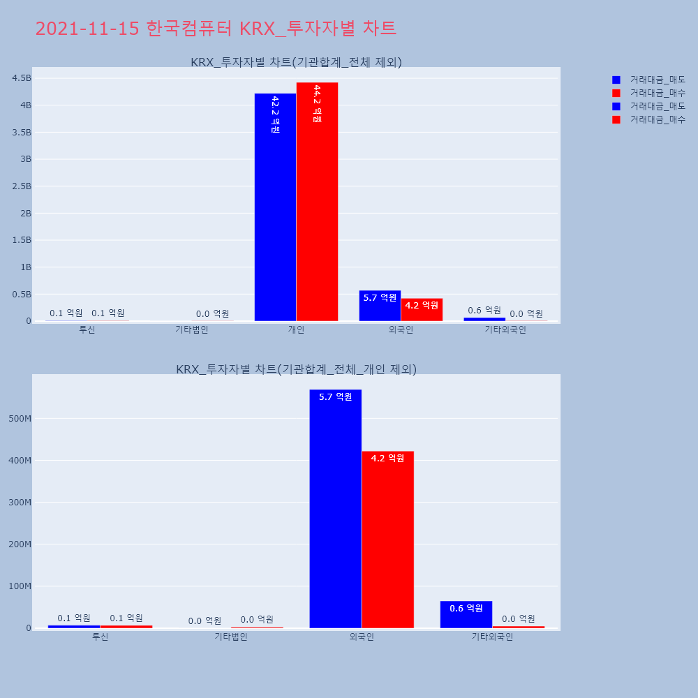 | 투자기관 | 거래량_매도 | 거래량_매수 | 거래량_순매수 | 거래대금_매도 | 거래대금_매수 | 거래대금_순매수 |