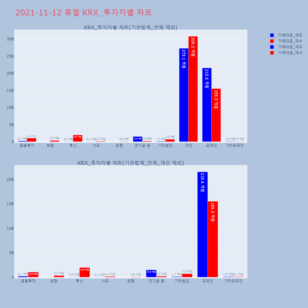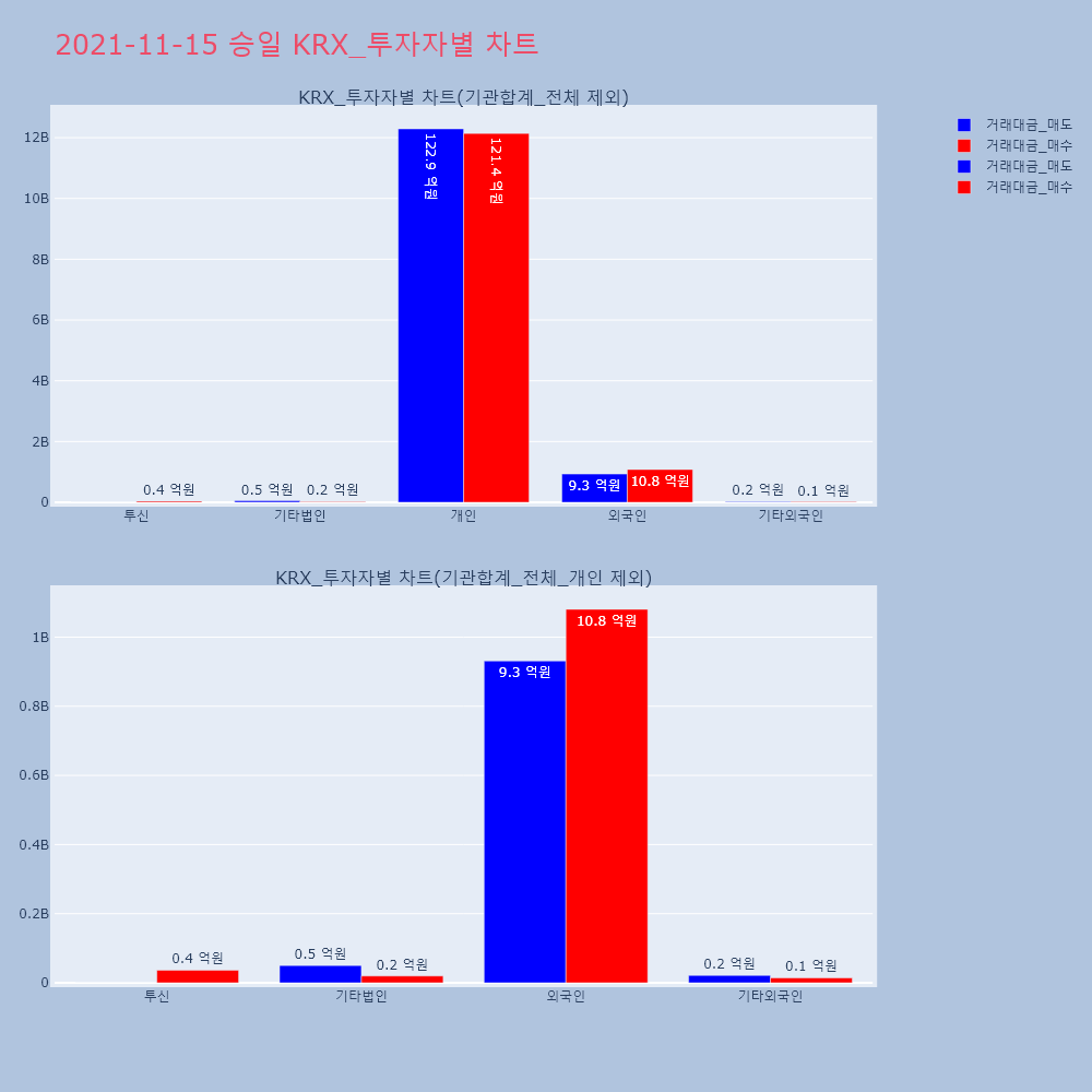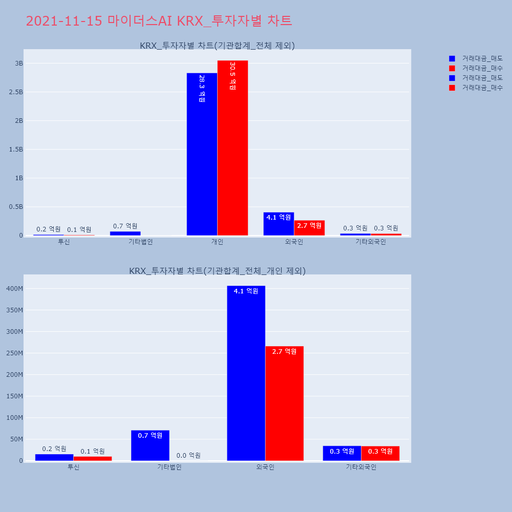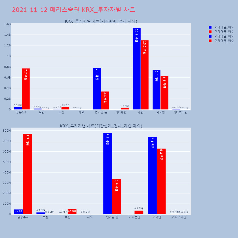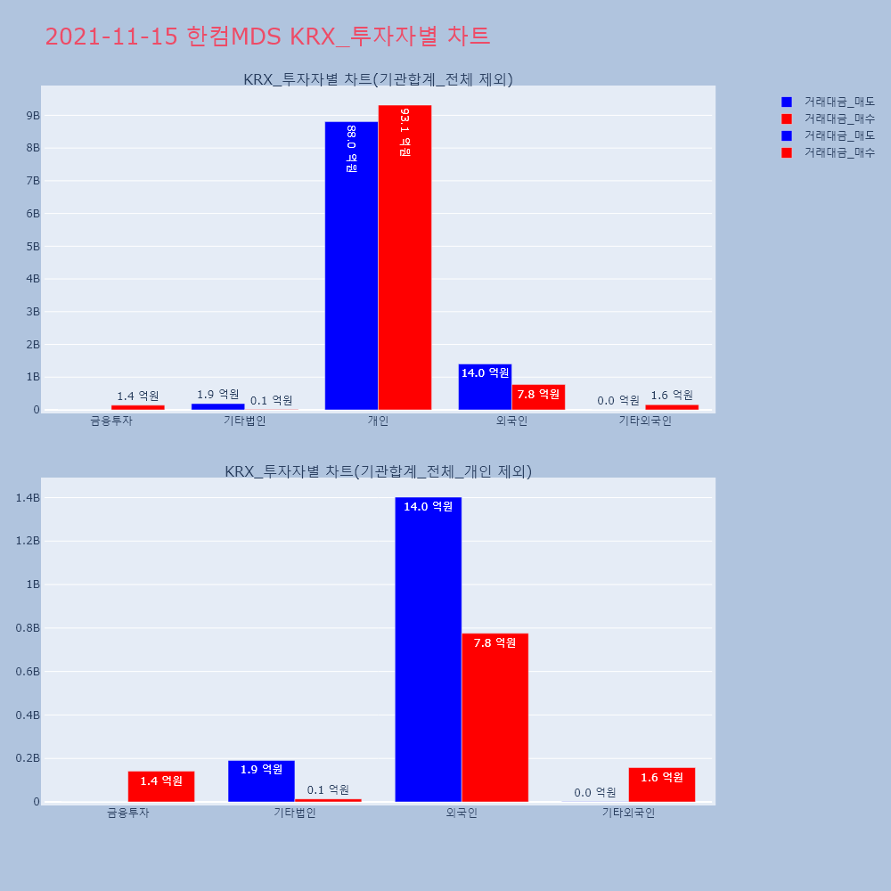 | 투자기관 | 거래량_매도 | 거래량_매수 | 거래량_순매수 | 거래대금_매도 | 거래대금_매수 | 거래대금_순매수 |