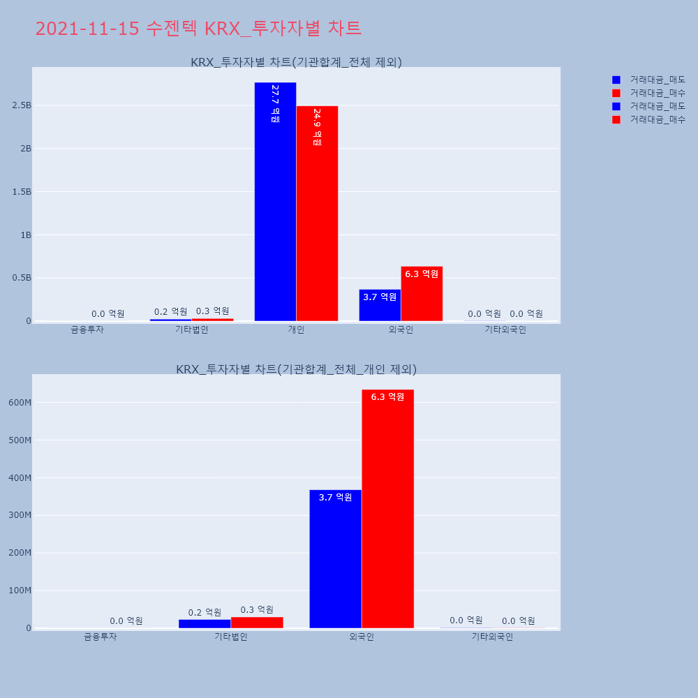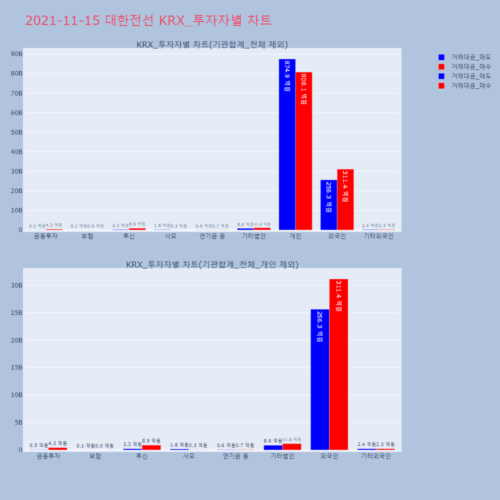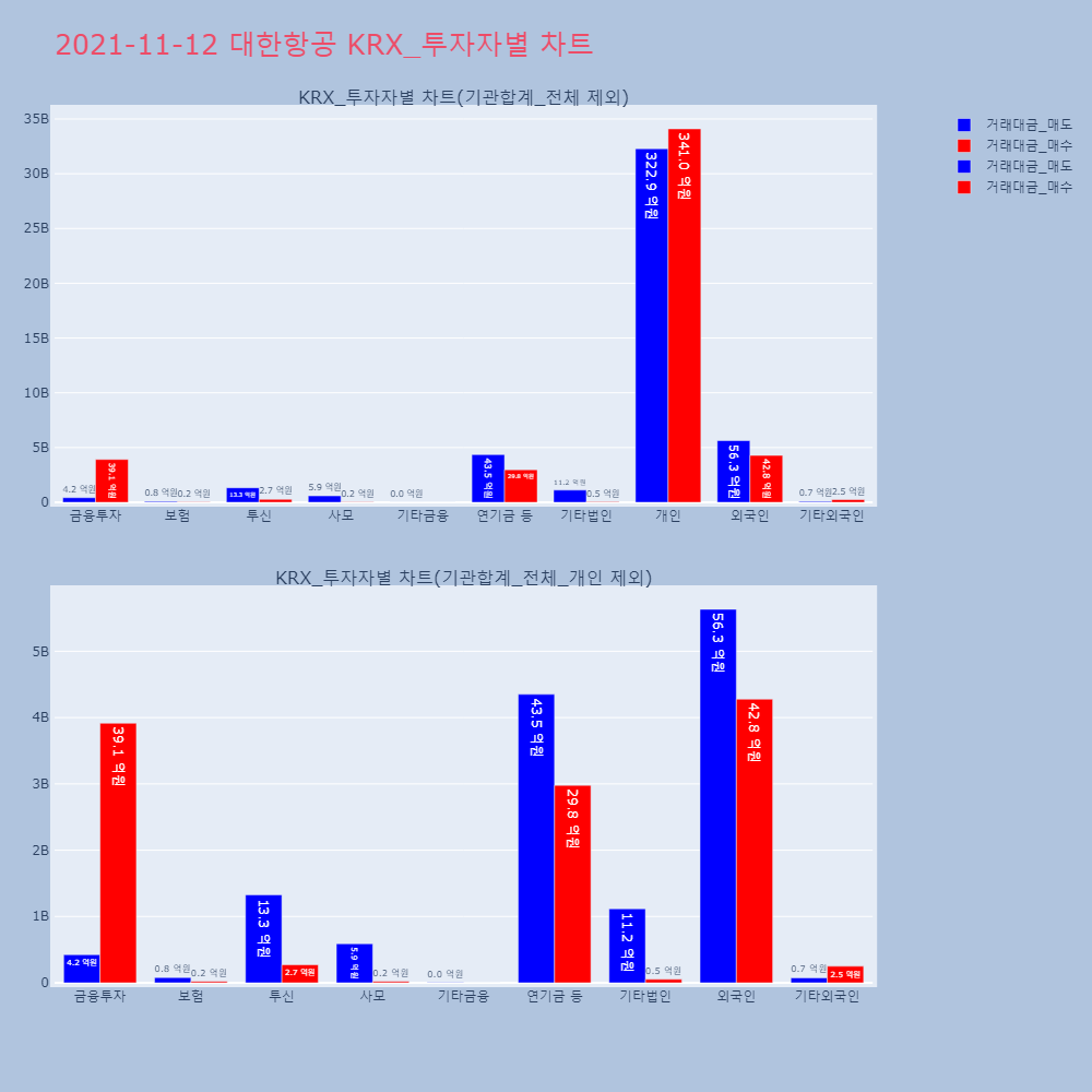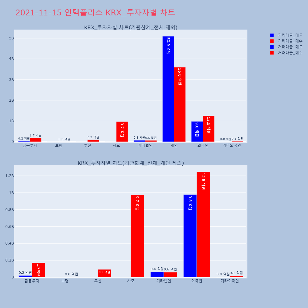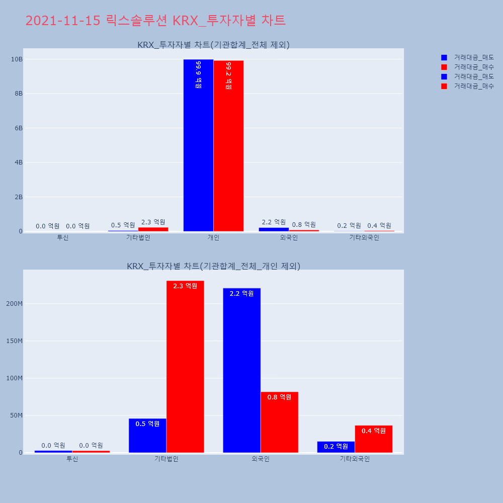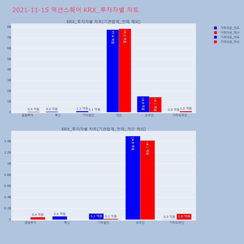 | 투자기관 | 거래량_매도 | 거래량_매수 | 거래량_순매수 | 거래대금_매도 | 거래대금_매수 | 거래대금_순매수 |