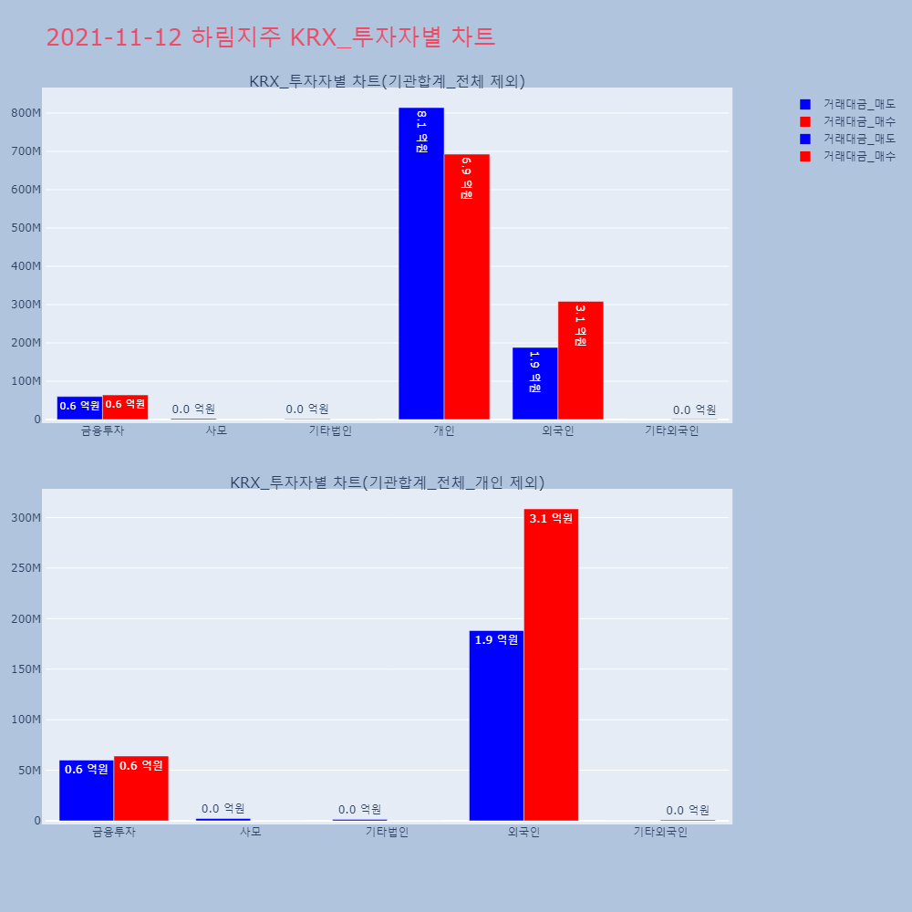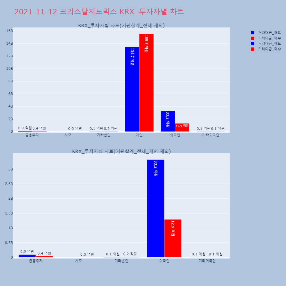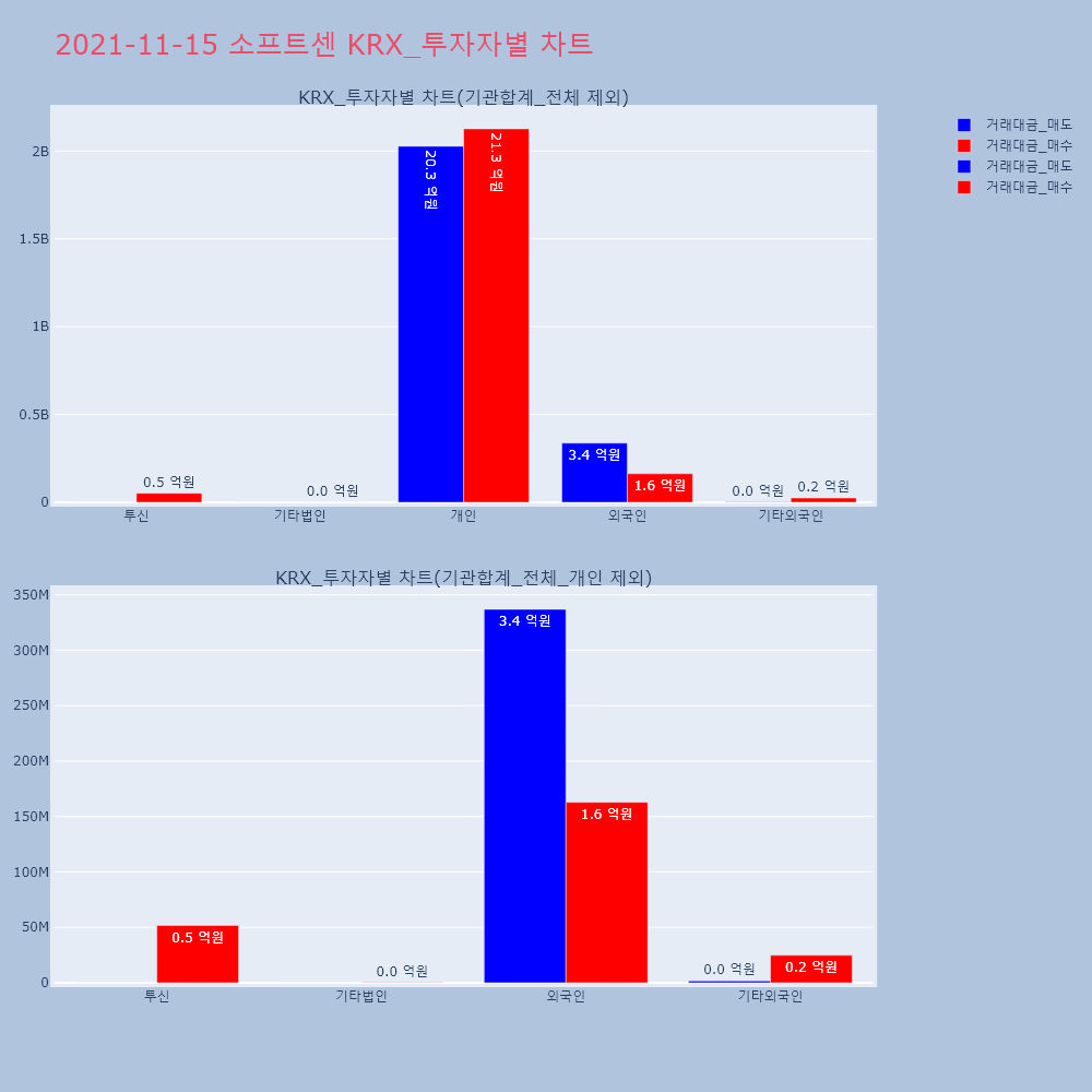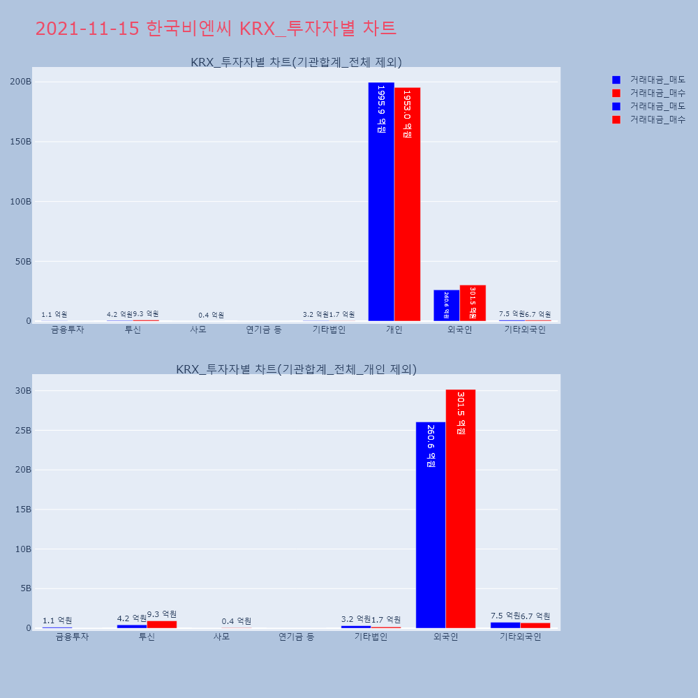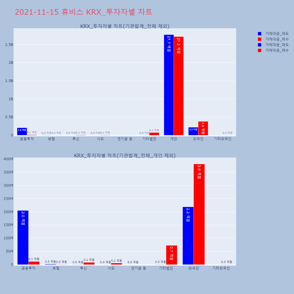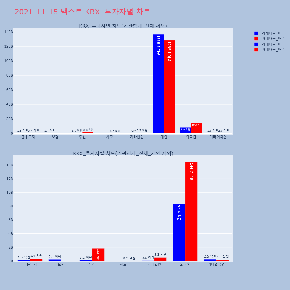 | 투자기관 | 거래량_매도 | 거래량_매수 | 거래량_순매수 | 거래대금_매도 | 거래대금_매수 | 거래대금_순매수 |