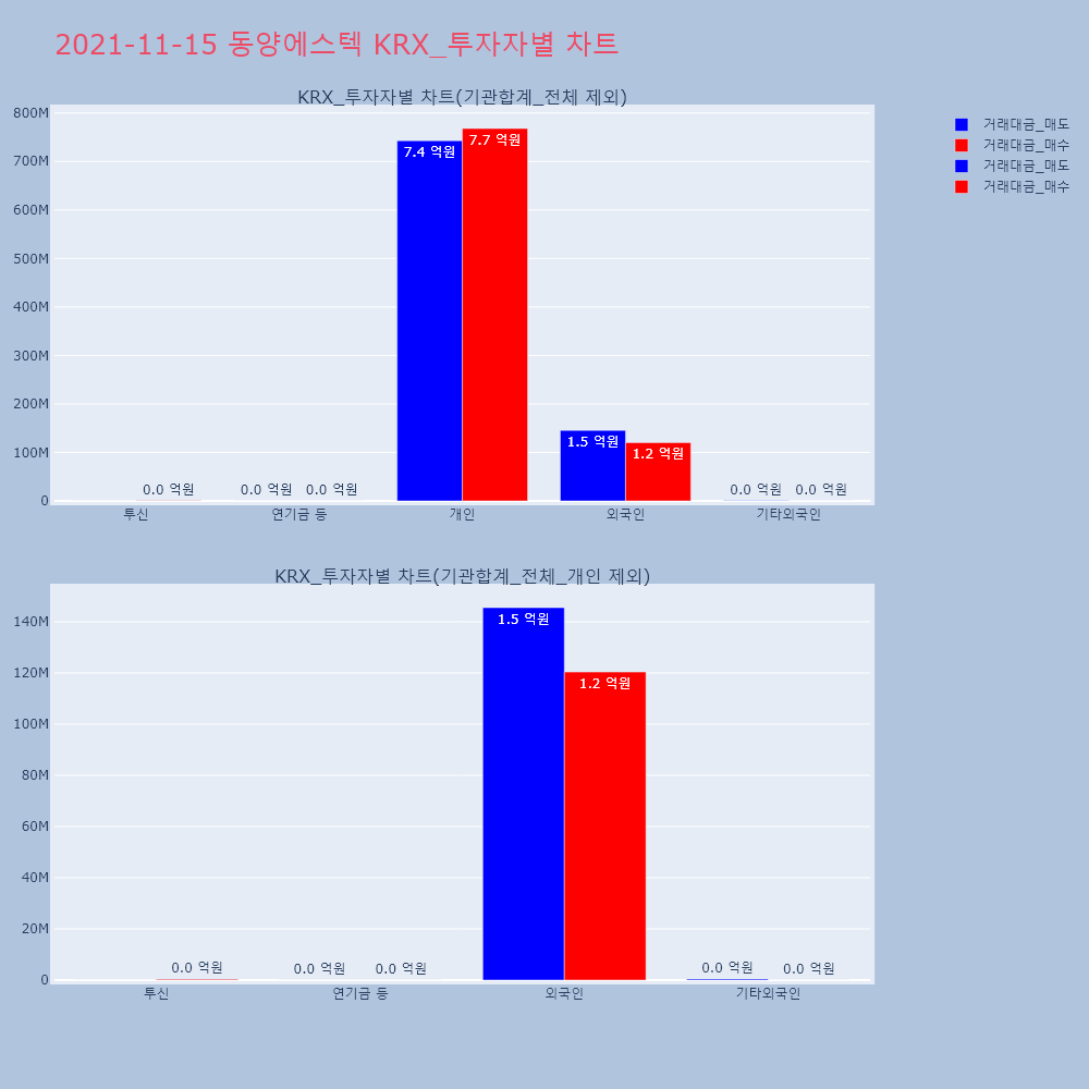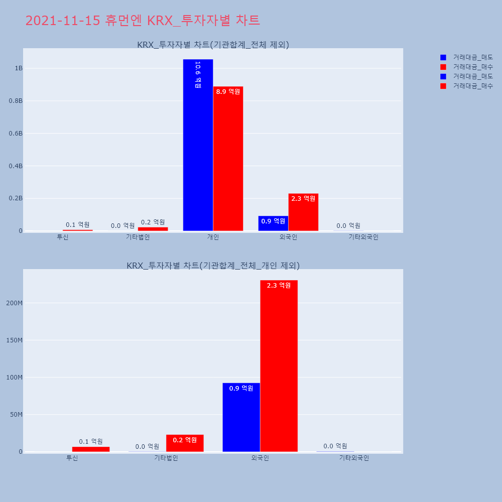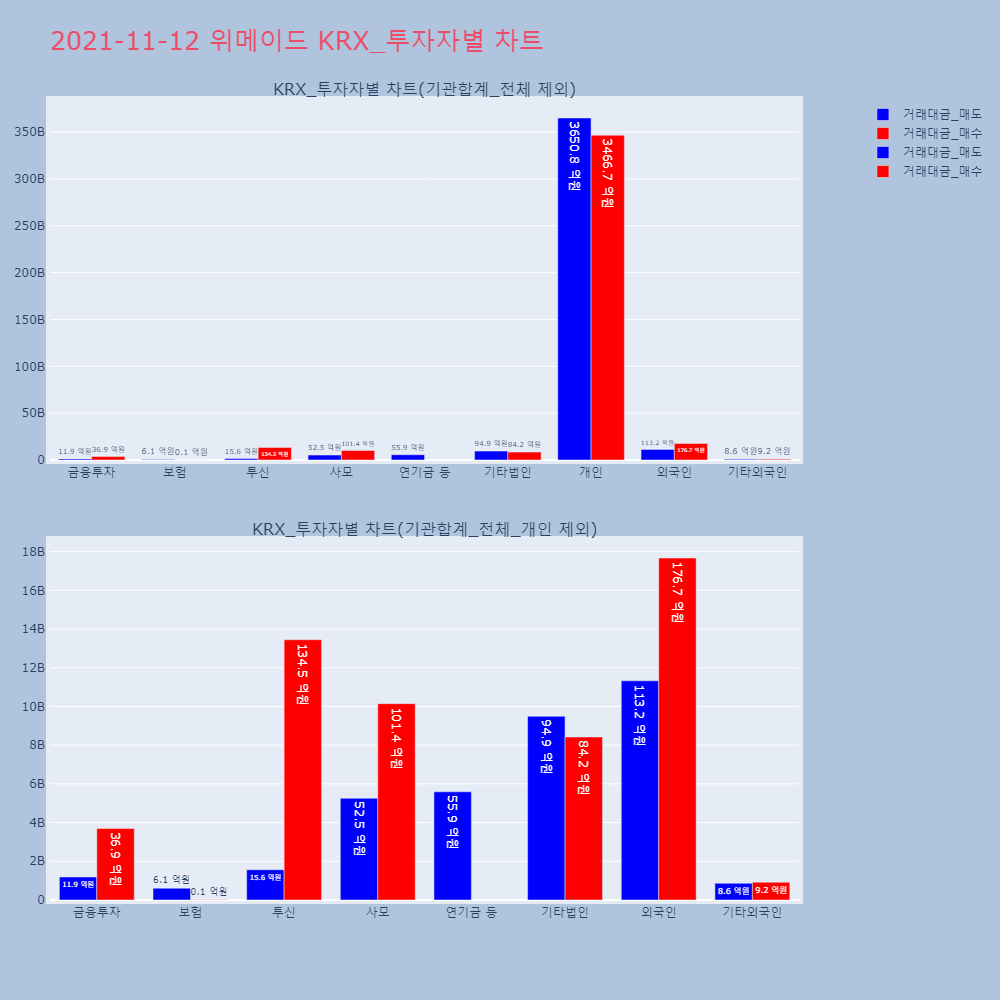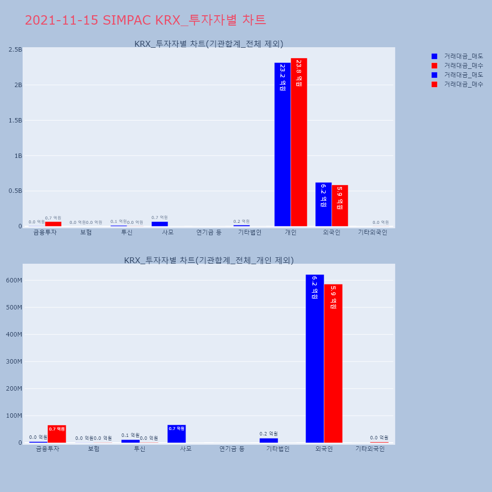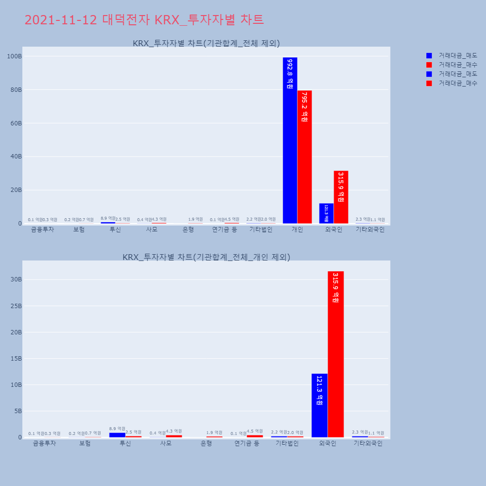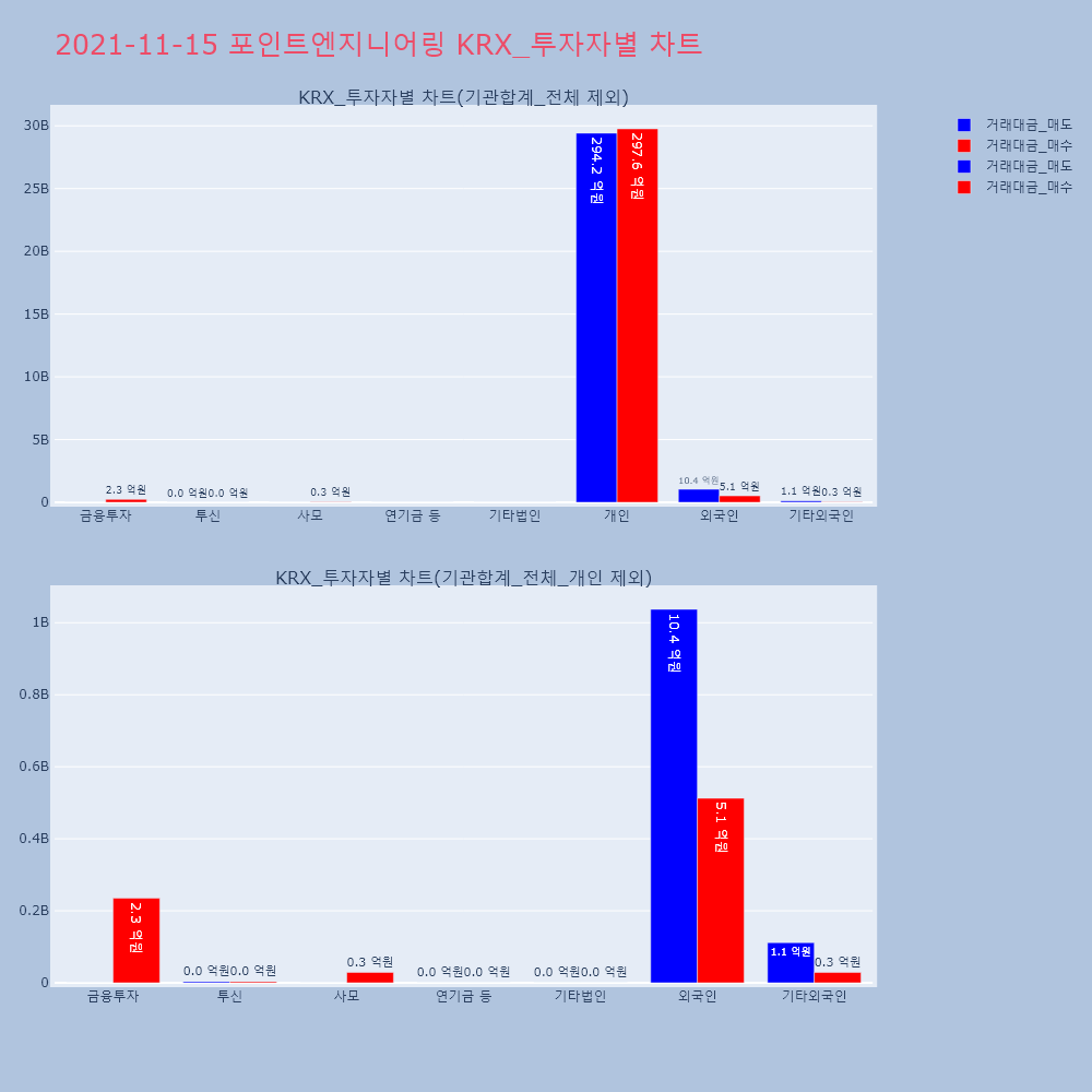 | 투자기관 | 거래량_매도 | 거래량_매수 | 거래량_순매수 | 거래대금_매도 | 거래대금_매수 | 거래대금_순매수 |