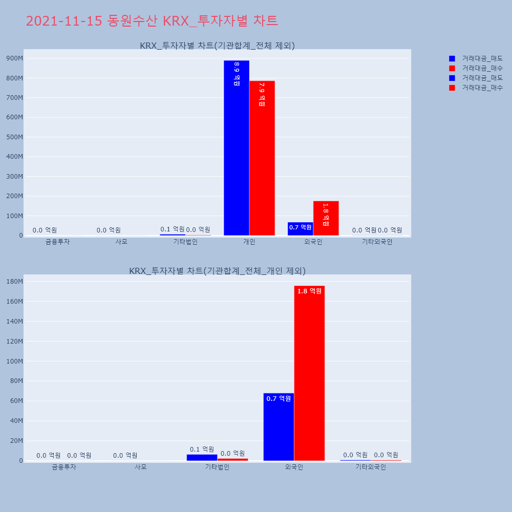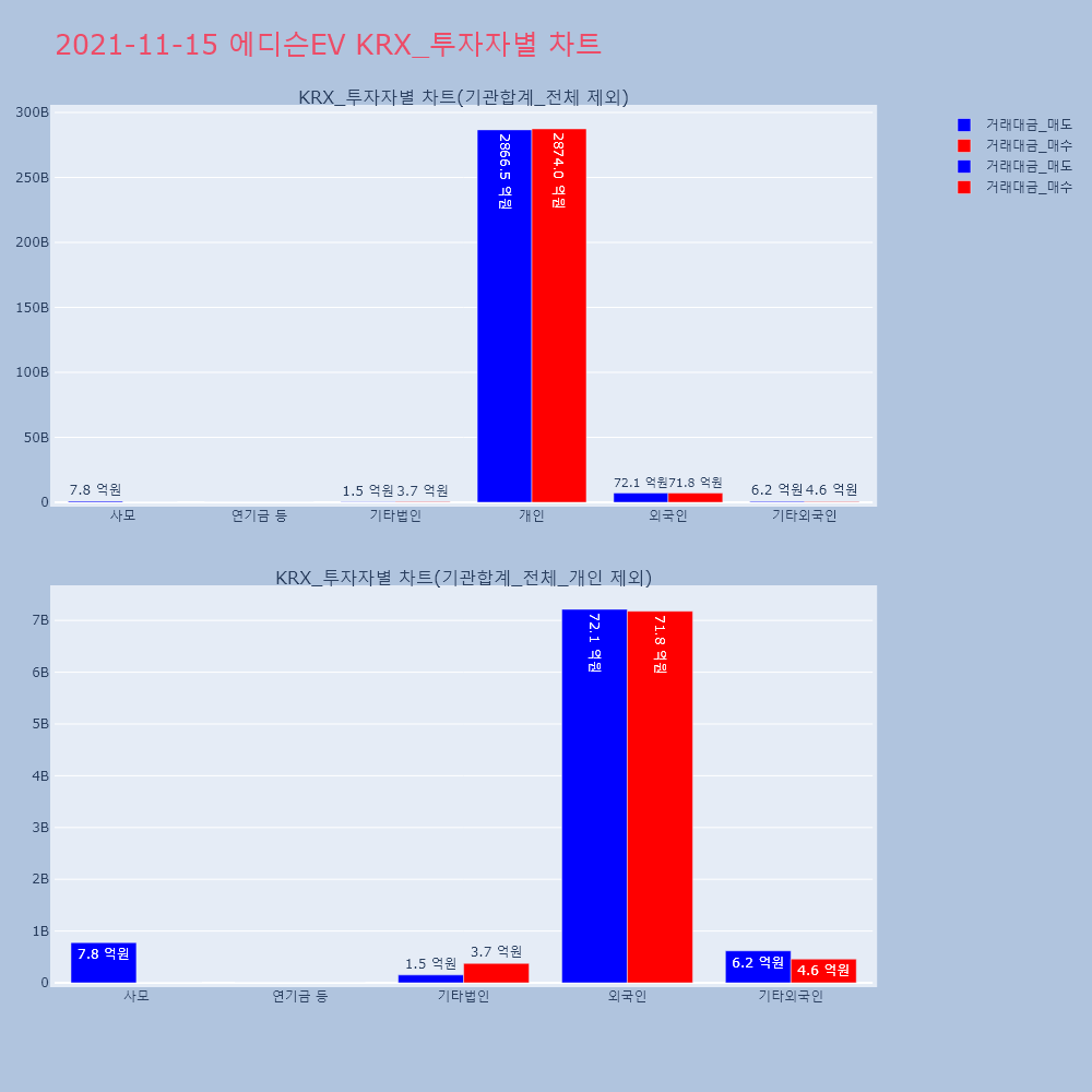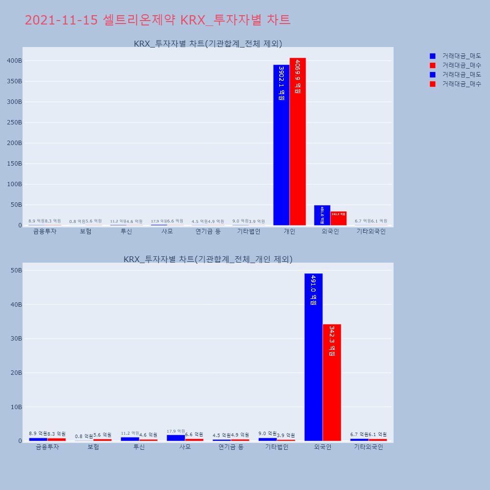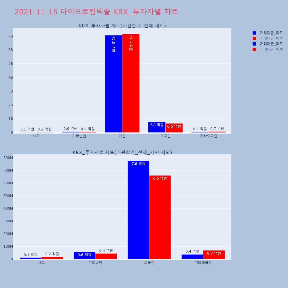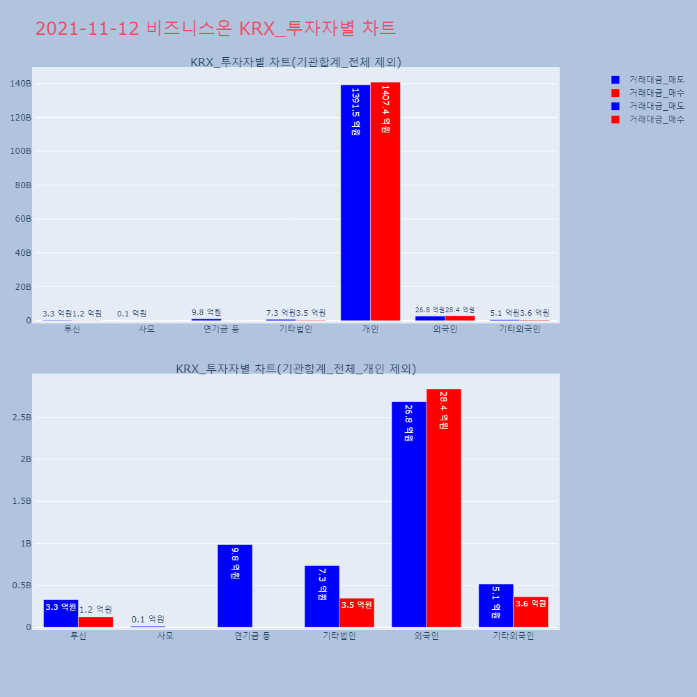 | 투자기관 | 거래량_매도 | 거래량_매수 | 거래량_순매수 | 거래대금_매도 | 거래대금_매수 | 거래대금_순매수 |