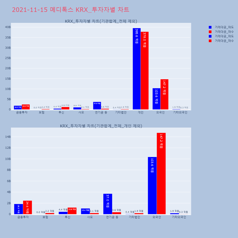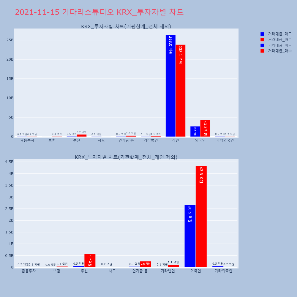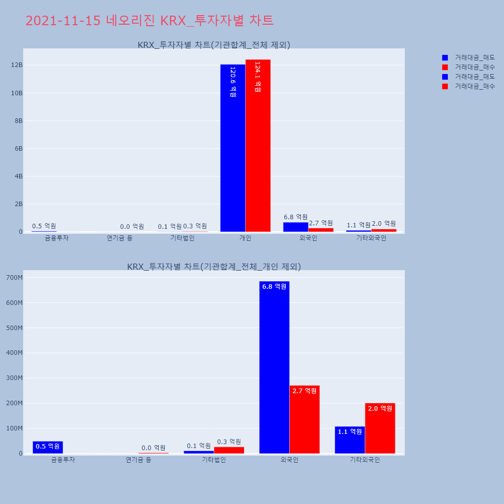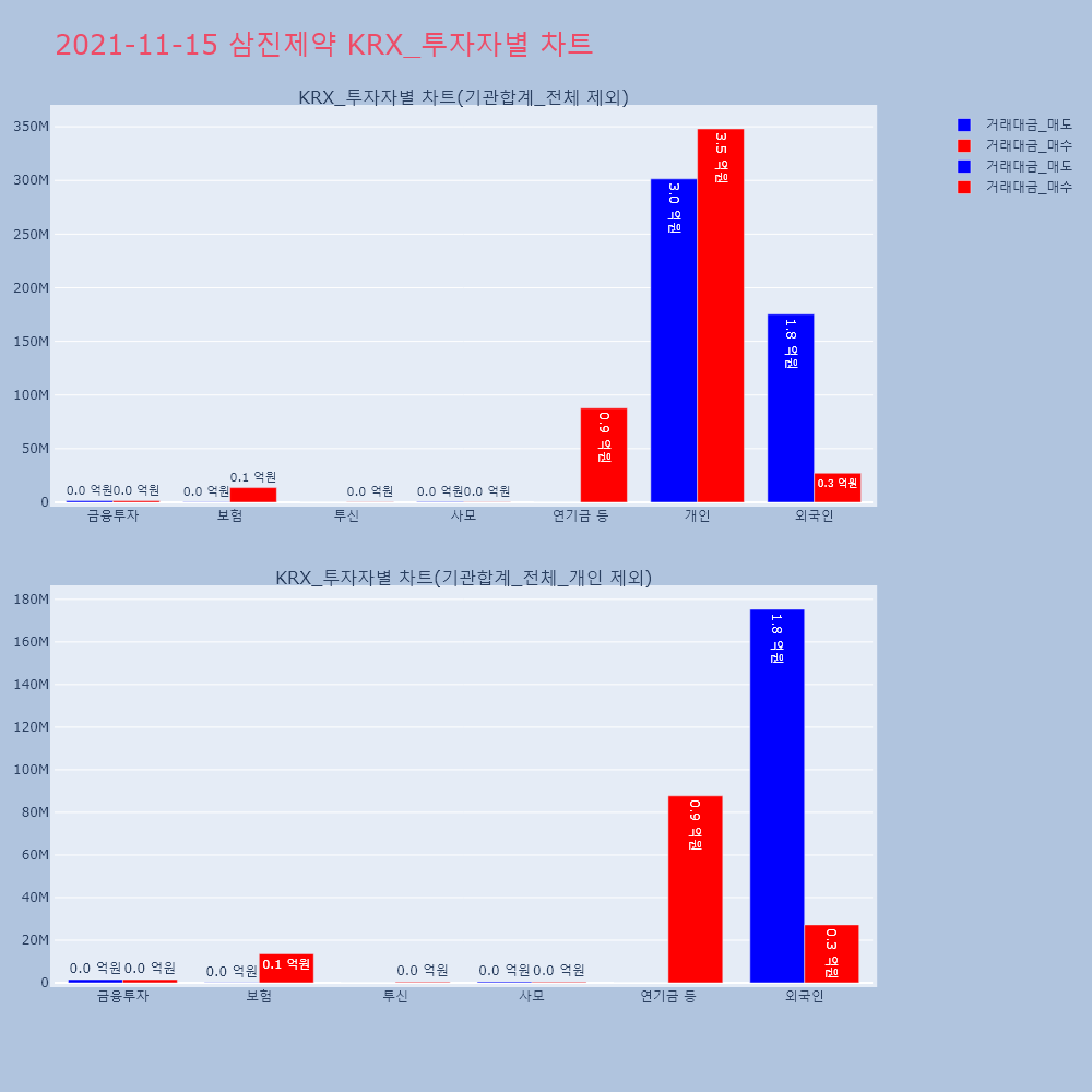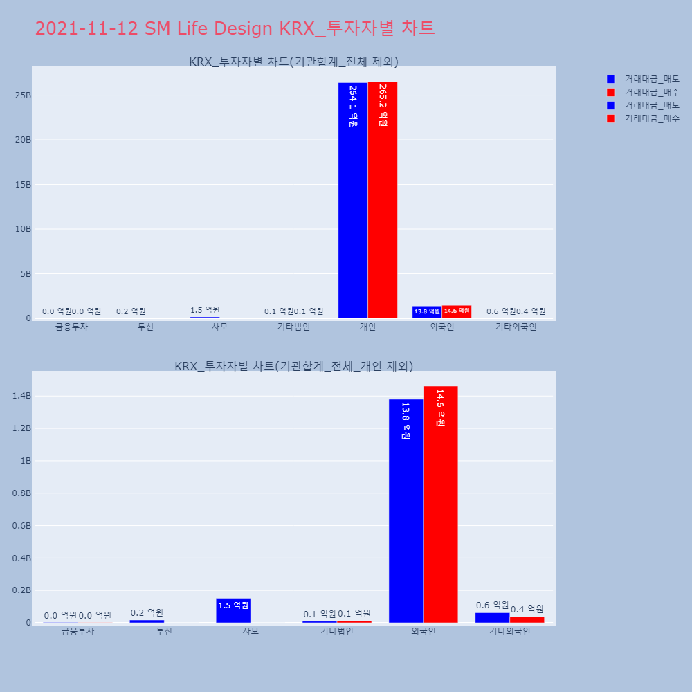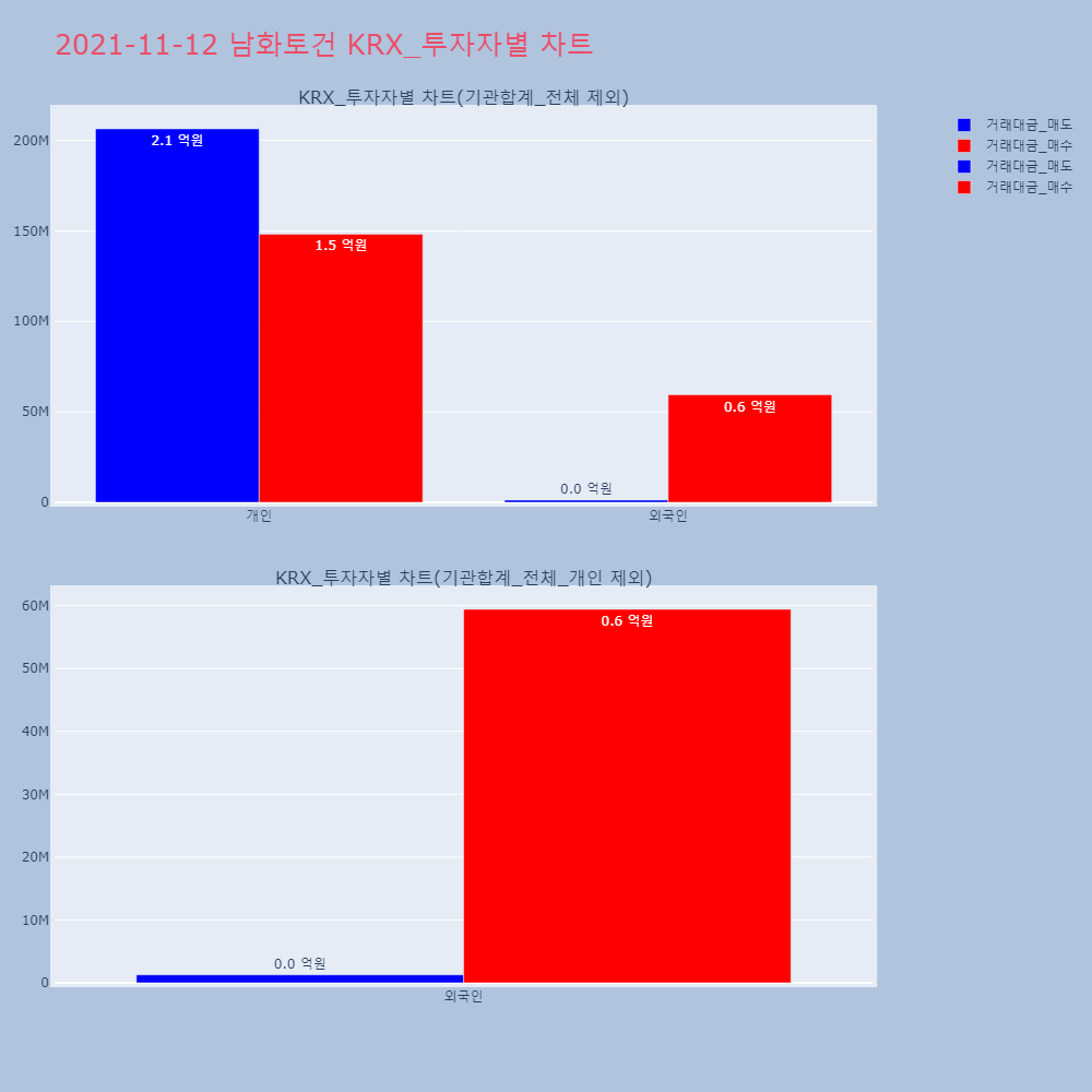 | 투자기관 | 거래량_매도 | 거래량_매수 | 거래량_순매수 | 거래대금_매도 | 거래대금_매수 | 거래대금_순매수 |