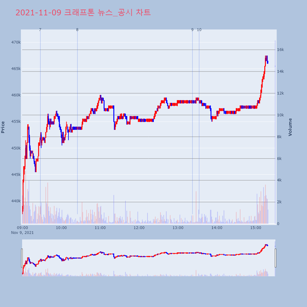 | 7 | 컴투스, +10.99% VI 발동컴투스(078340)가 VI가 발동했다. 전일 대비 1 | 조선경제 | 컴투스 | 2021-11-09 10:08:26 |