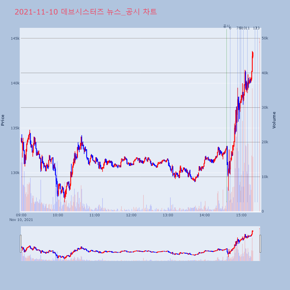 | 3 | 데브시스터즈, +9.79% VI 발동데브시스터즈(194480)가 VI가 발동했다. 전일 대 | 조선경제 | 데브시스터즈 | 2021-11-09 10:59:20 |