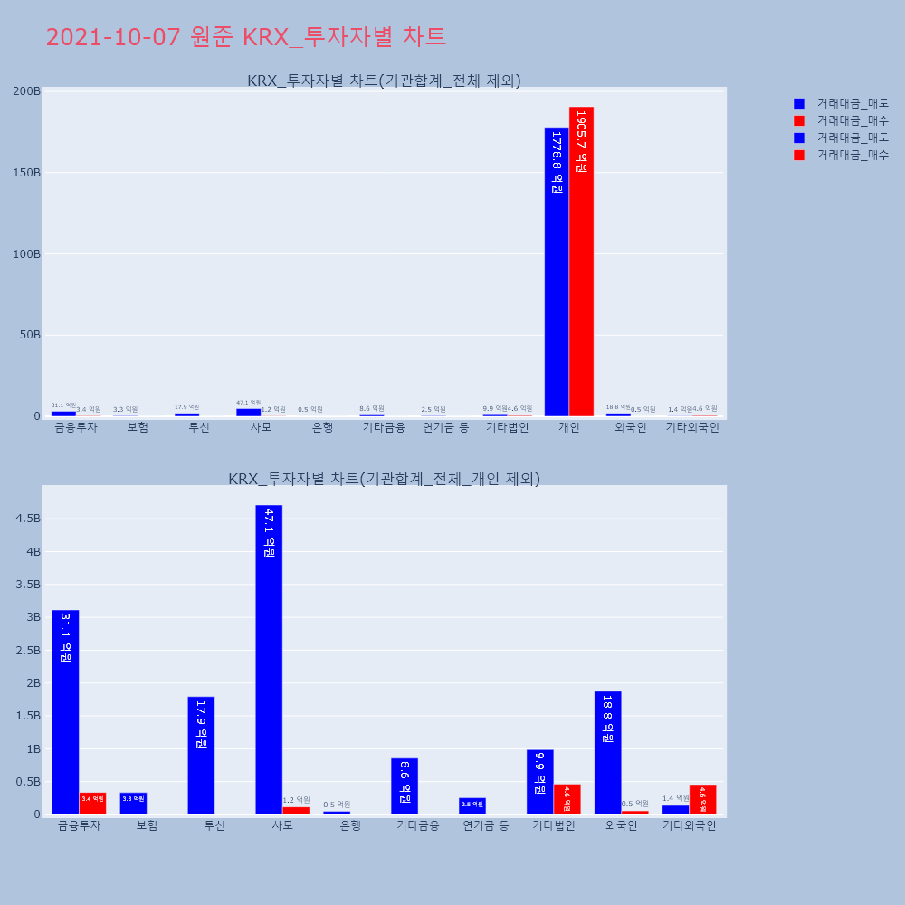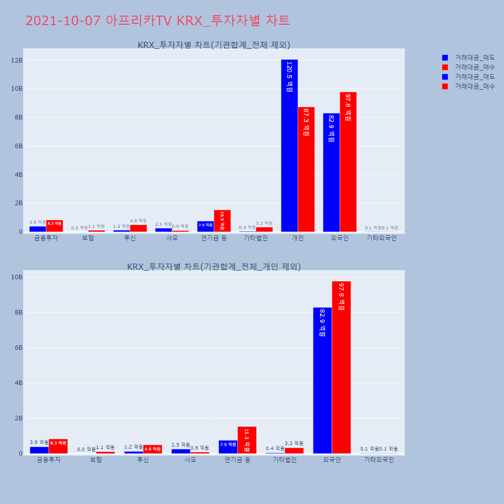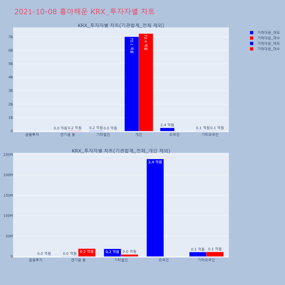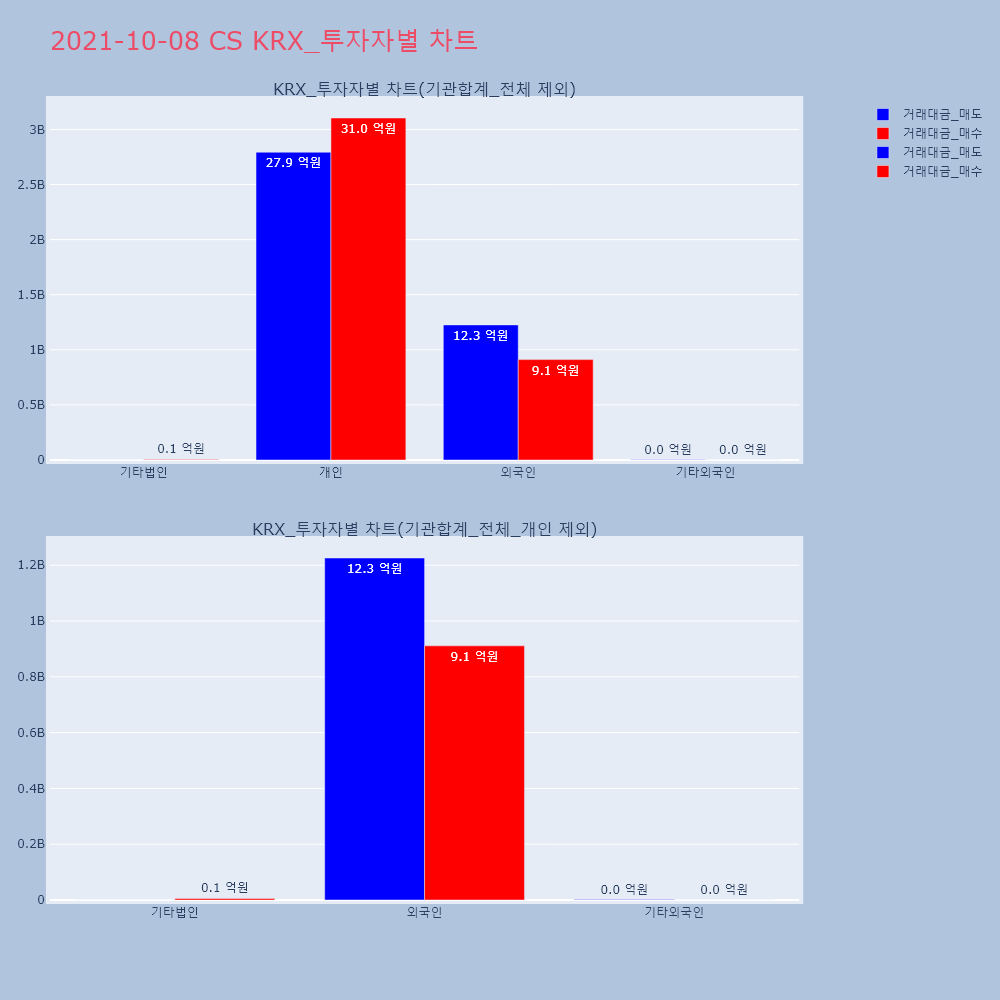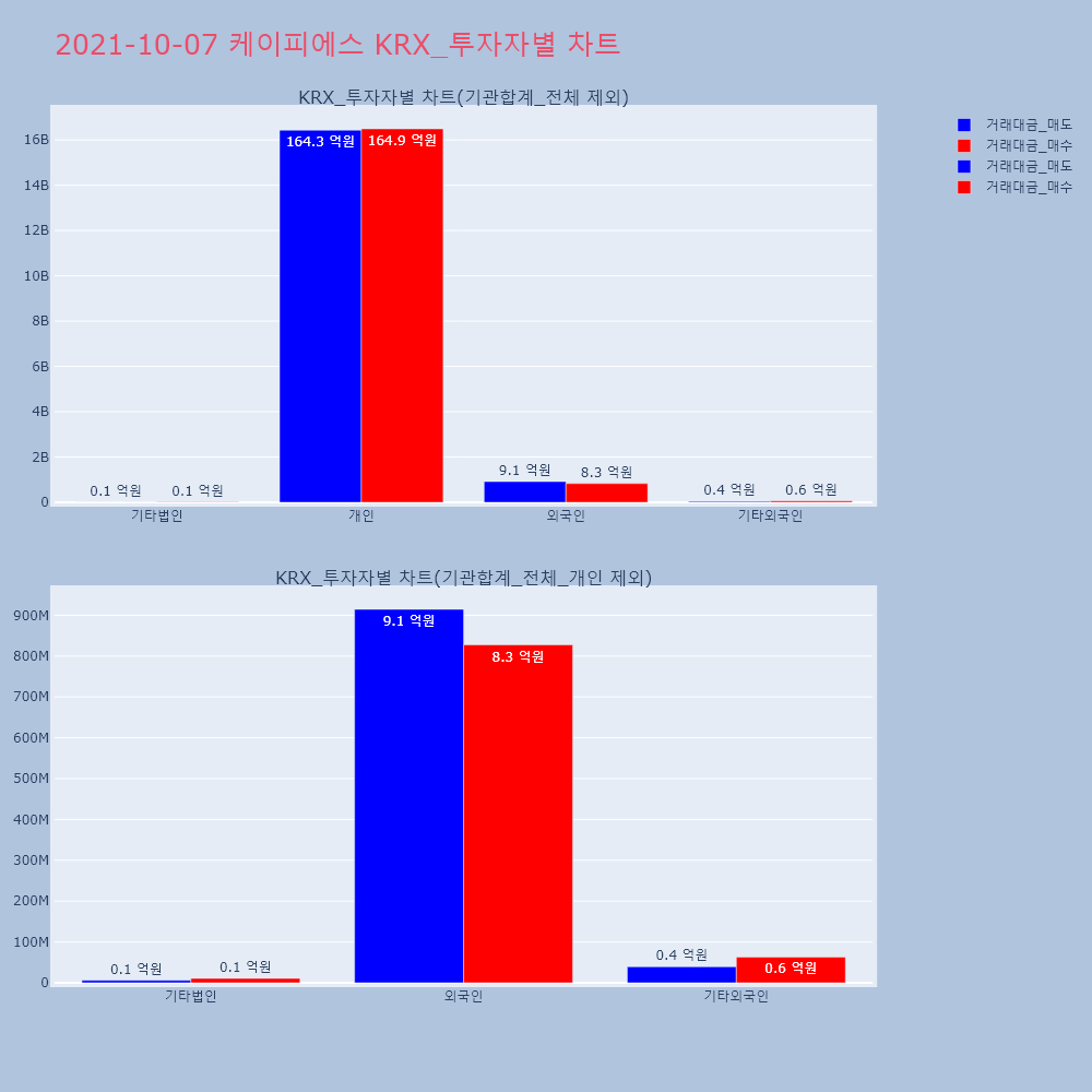 | 투자기관 | 거래량_매도 | 거래량_매수 | 거래량_순매수 | 거래대금_매도 | 거래대금_매수 | 거래대금_순매수 |