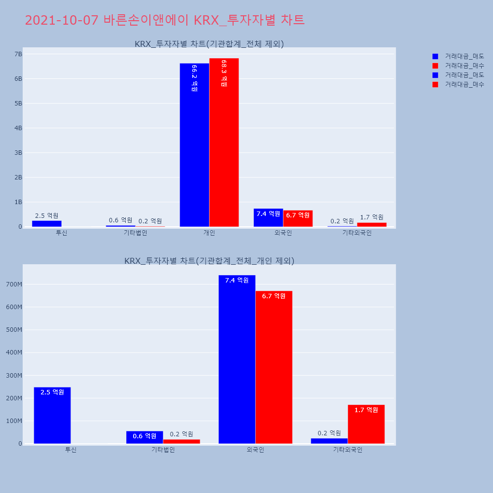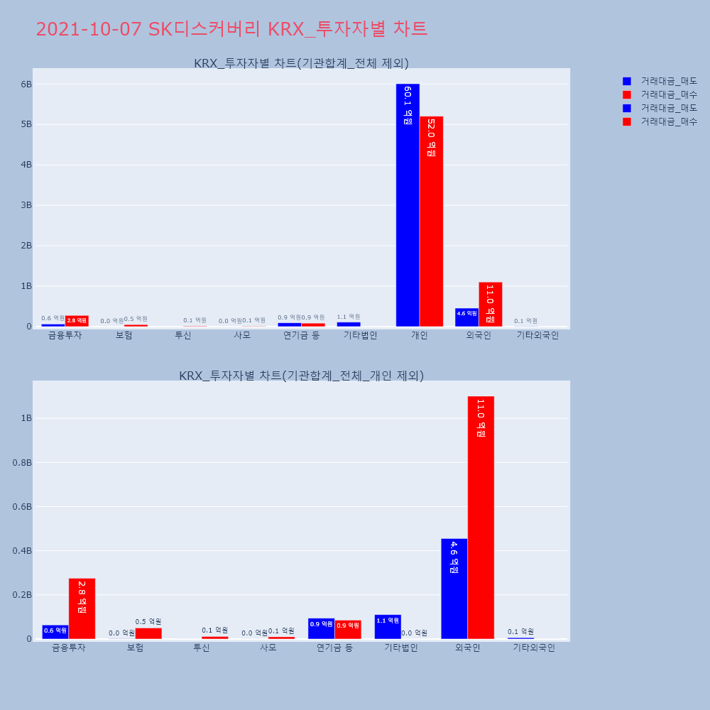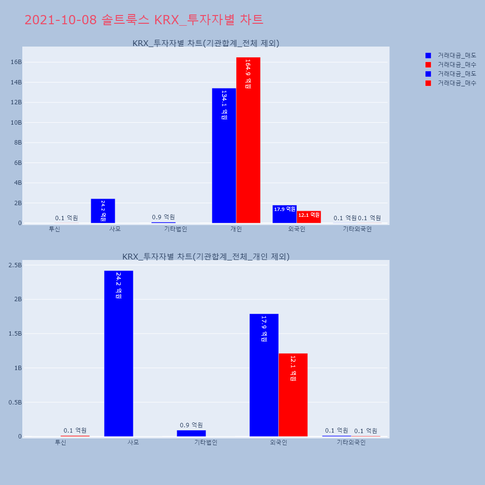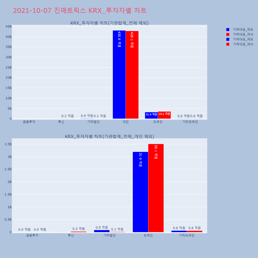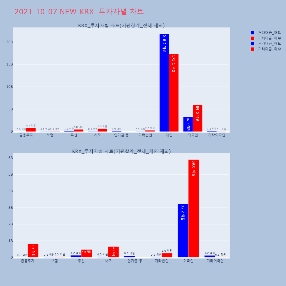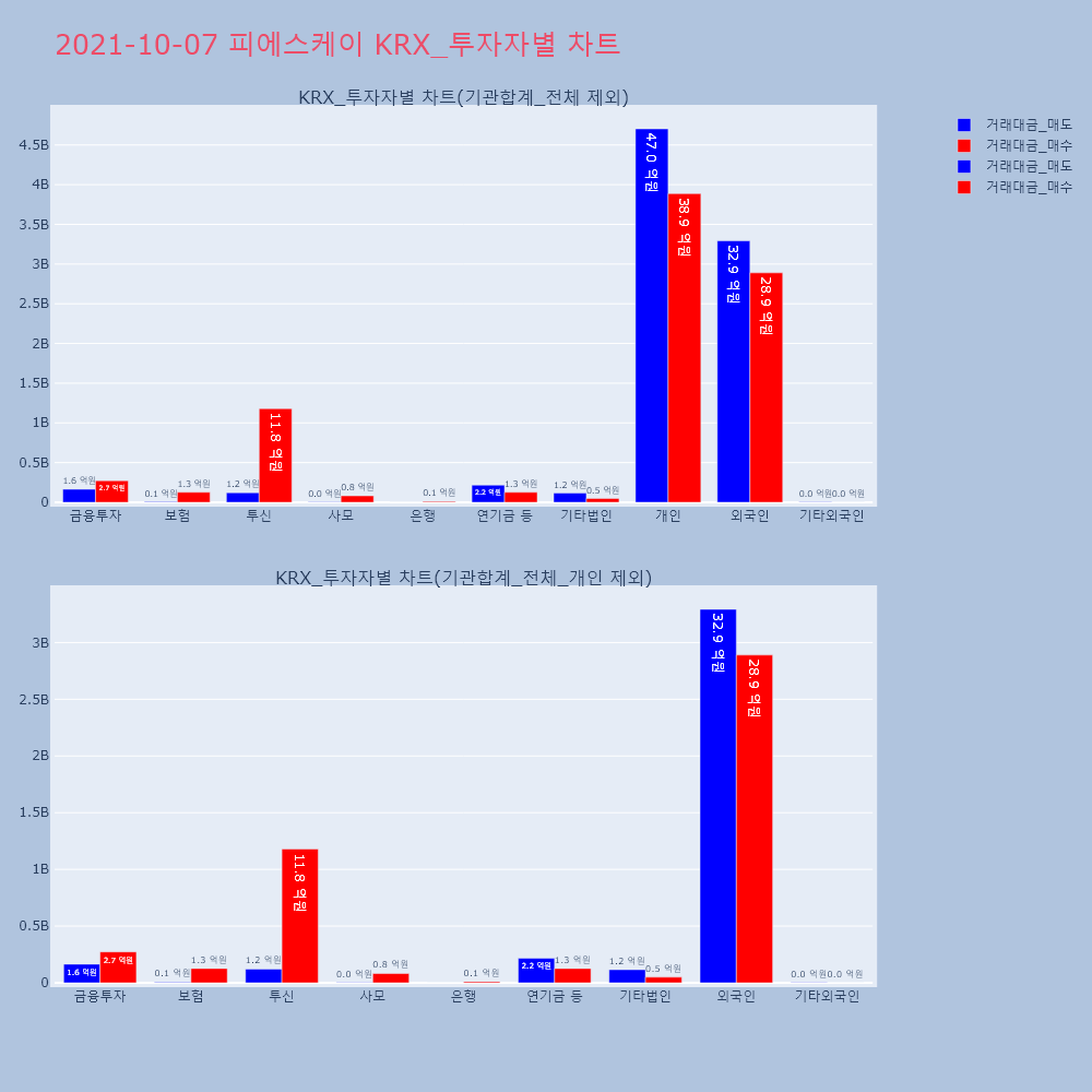 | 투자기관 | 거래량_매도 | 거래량_매수 | 거래량_순매수 | 거래대금_매도 | 거래대금_매수 | 거래대금_순매수 |