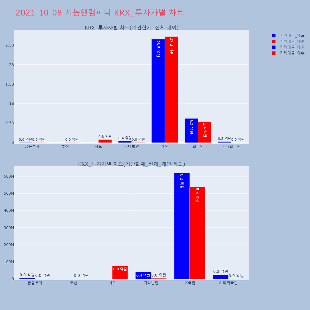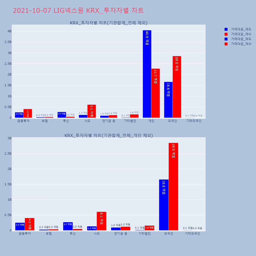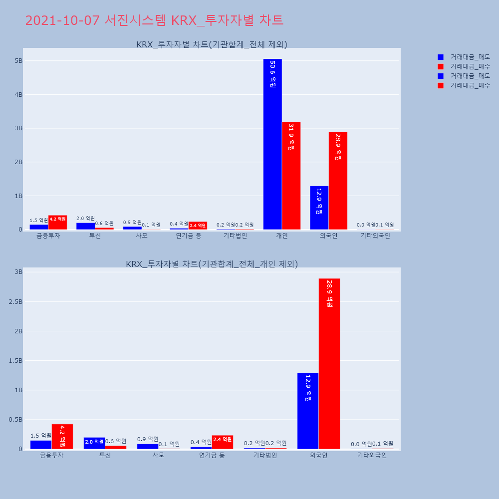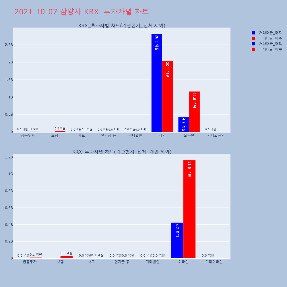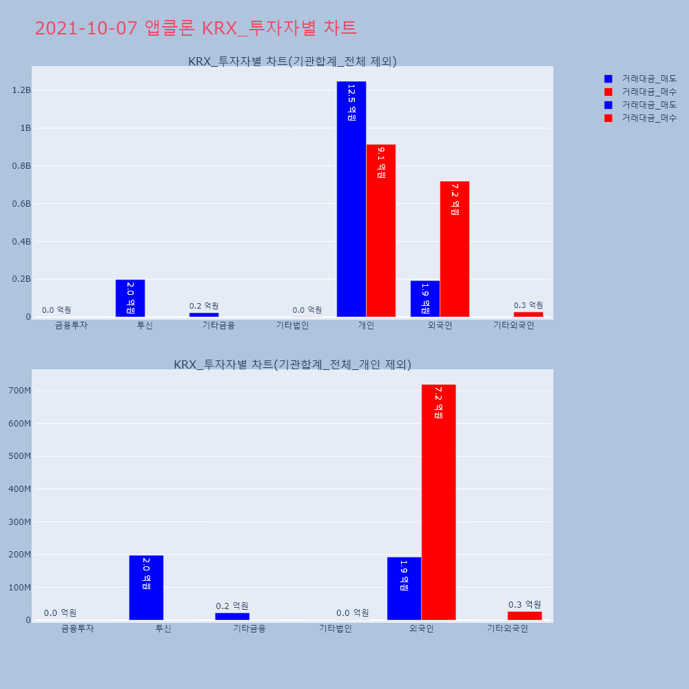 | 투자기관 | 거래량_매도 | 거래량_매수 | 거래량_순매수 | 거래대금_매도 | 거래대금_매수 | 거래대금_순매수 |
