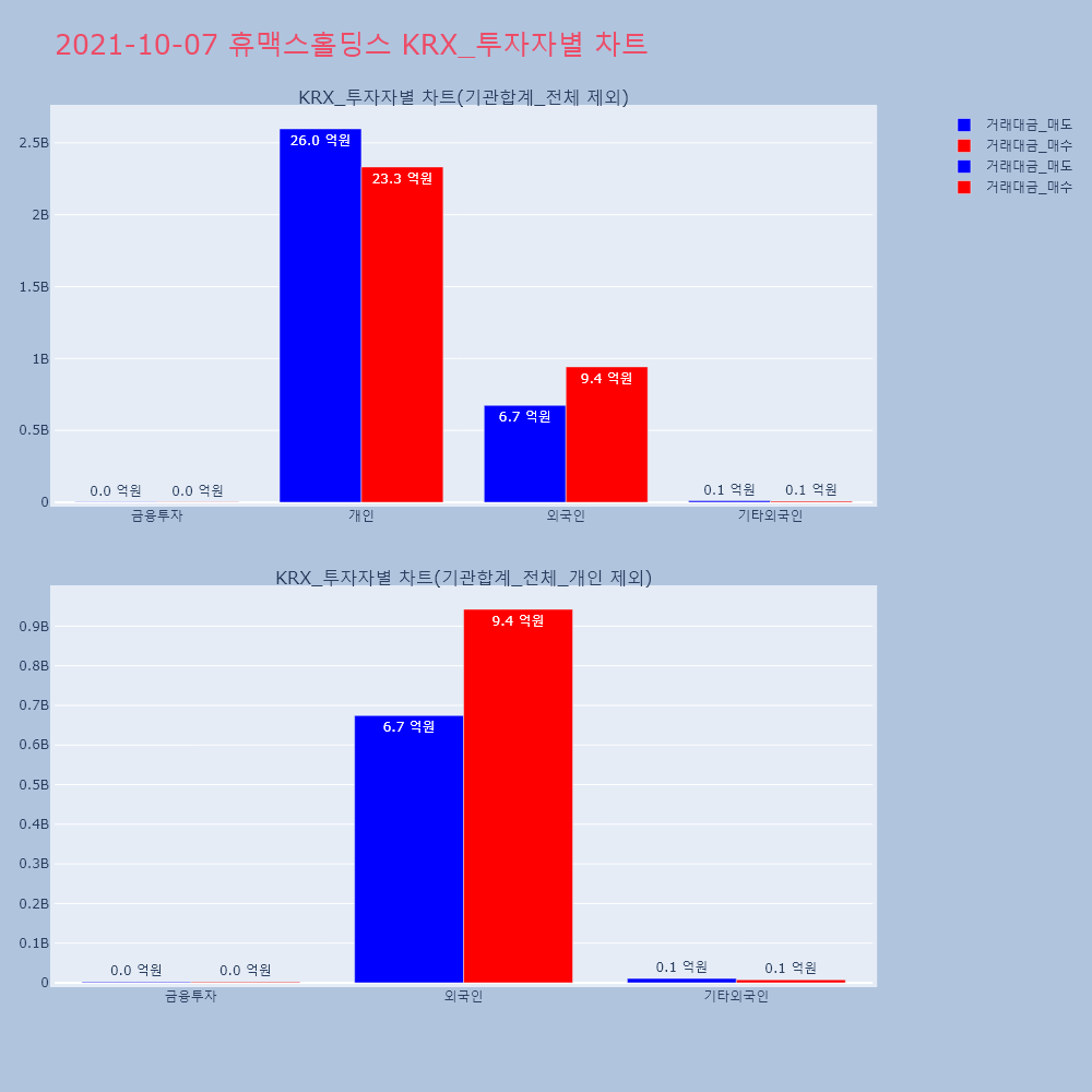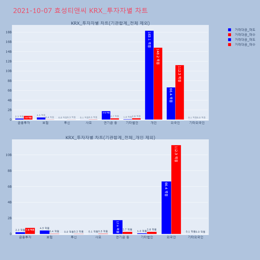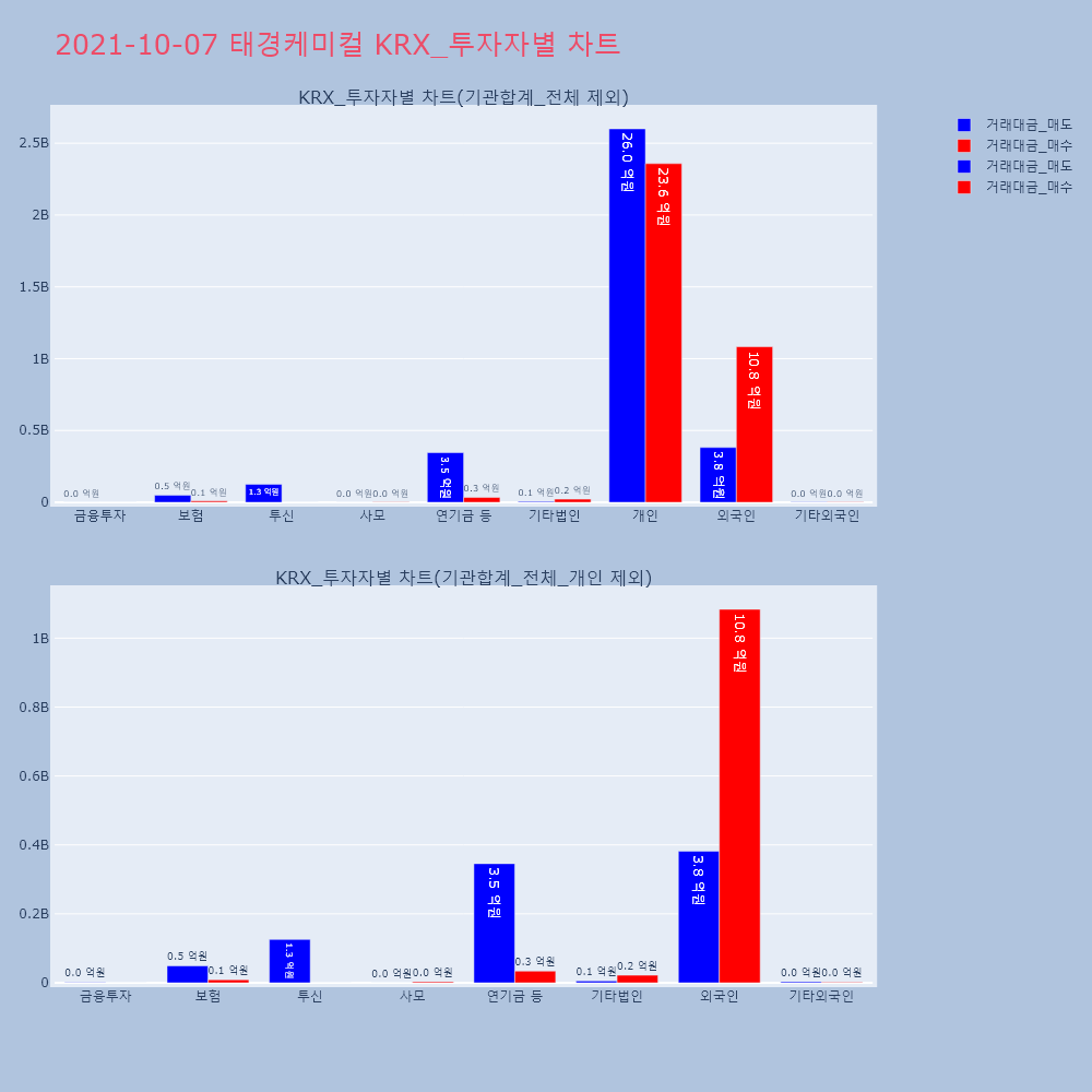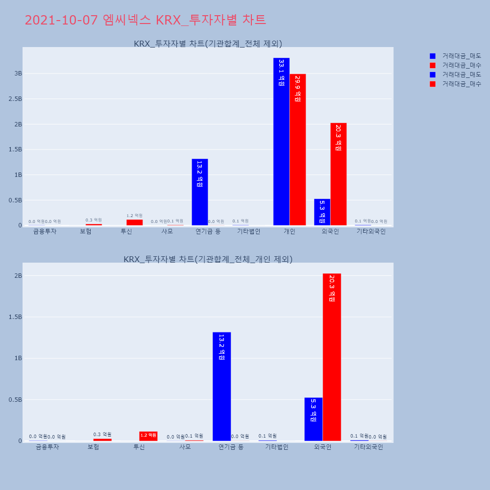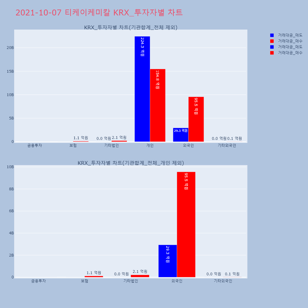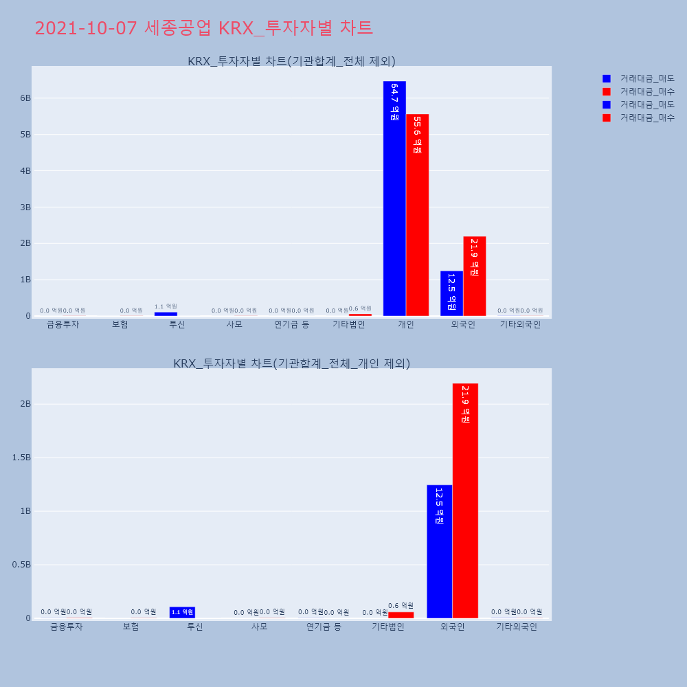 | 투자기관 | 거래량_매도 | 거래량_매수 | 거래량_순매수 | 거래대금_매도 | 거래대금_매수 | 거래대금_순매수 |