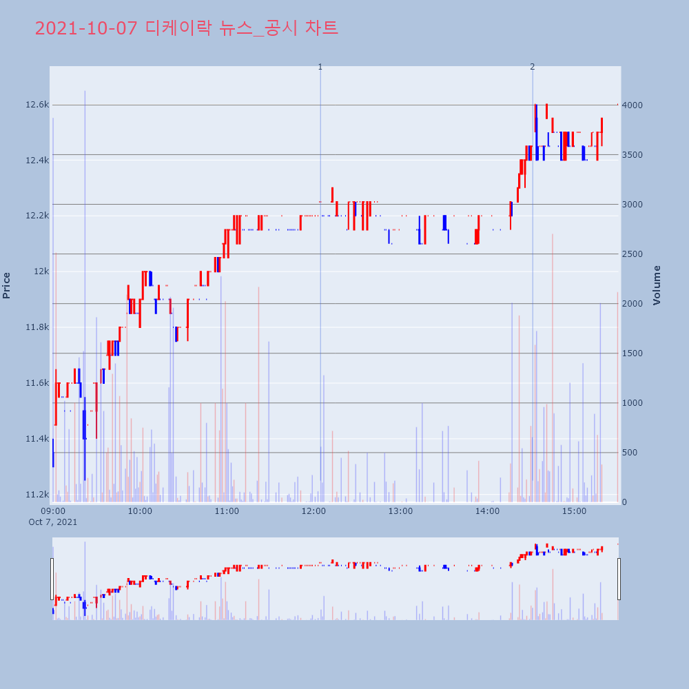 | 1 | 디에이테크놀로지, 0.00% VI 발동디에이테크놀로지(196490)가 VI가 발동했다. 현재 | 조선경제 | 디에이테크놀로지 | 2021-10-08 09:00:21 |