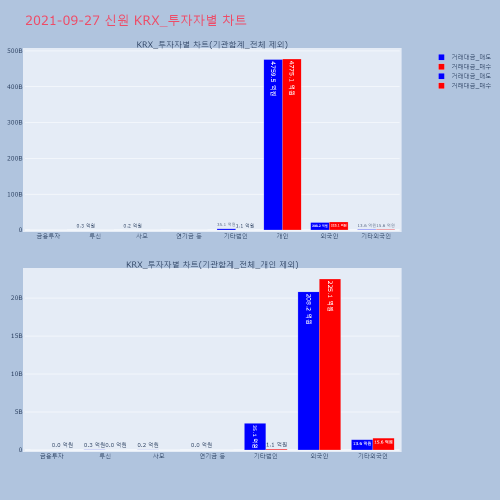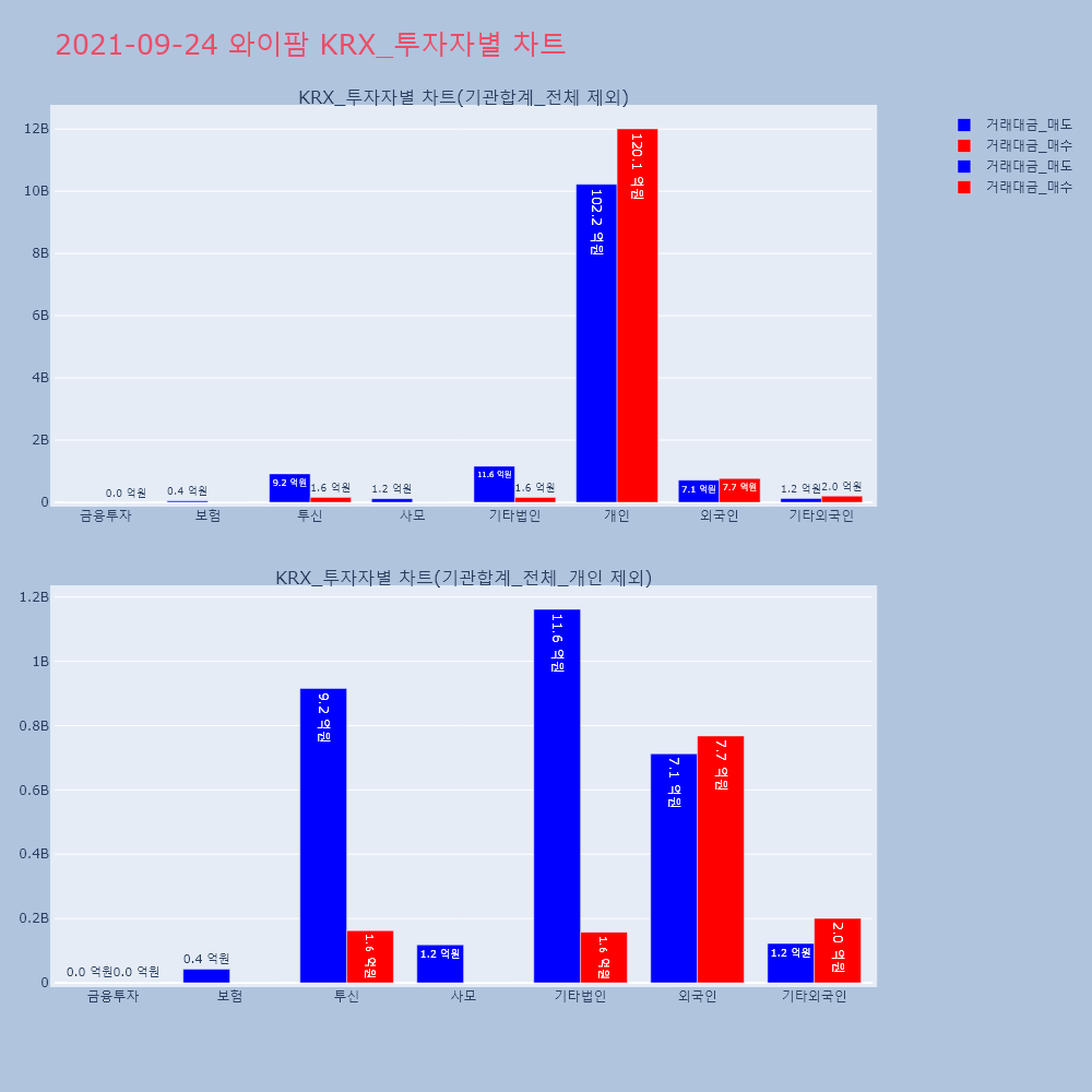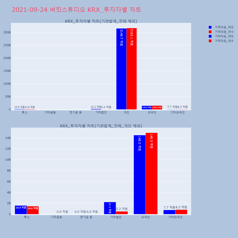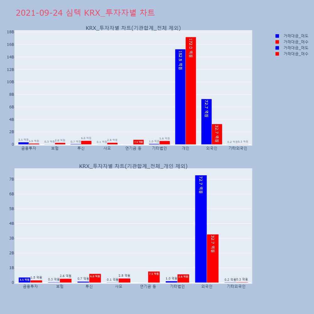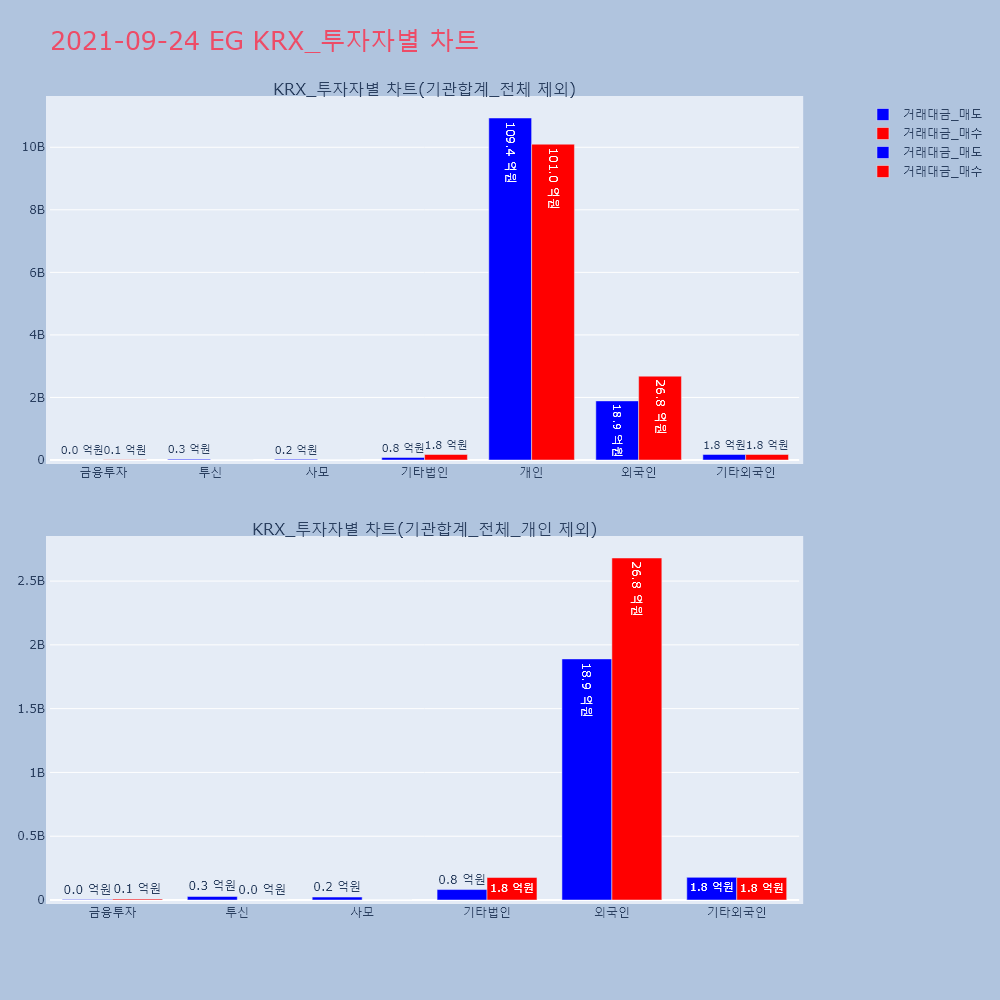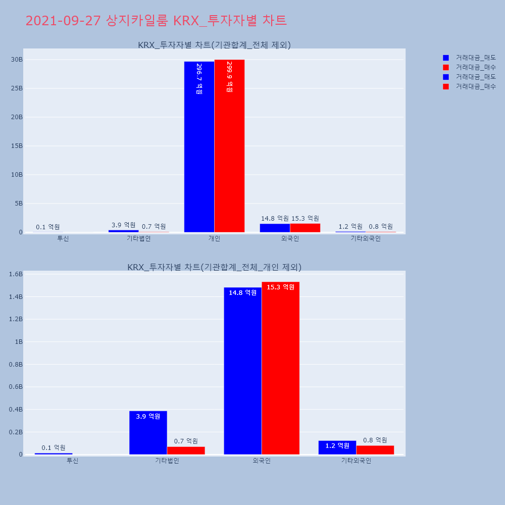 | 투자기관 | 거래량_매도 | 거래량_매수 | 거래량_순매수 | 거래대금_매도 | 거래대금_매수 | 거래대금_순매수 |
