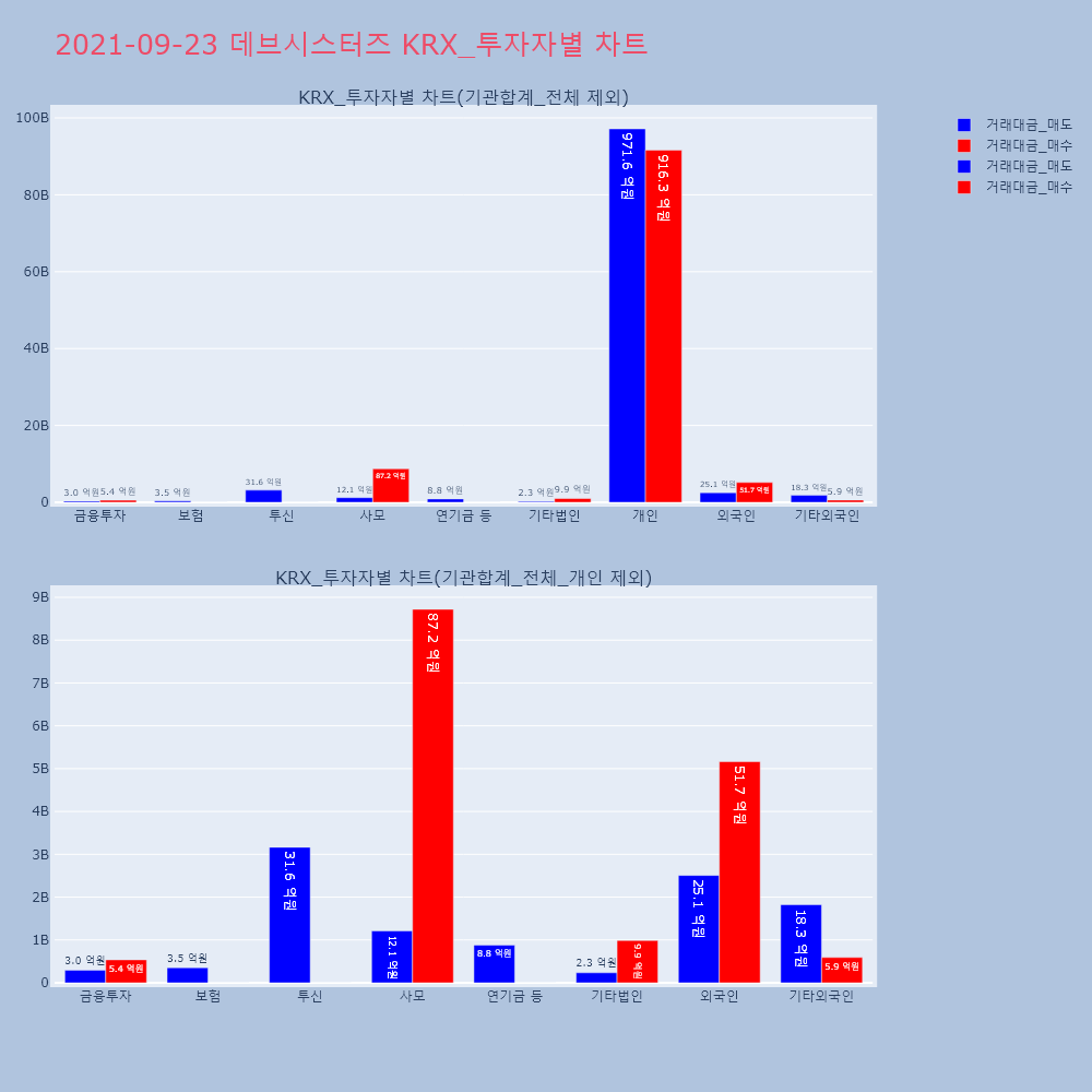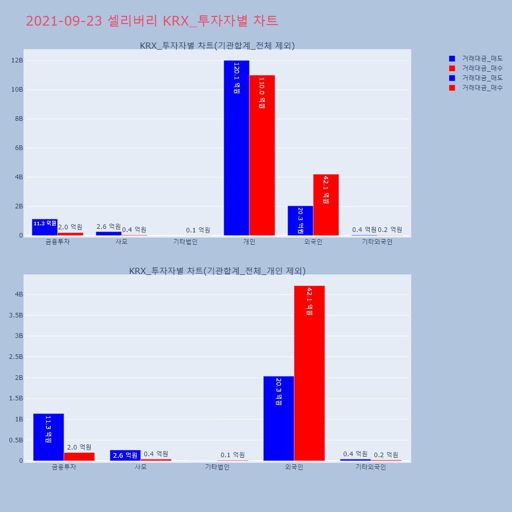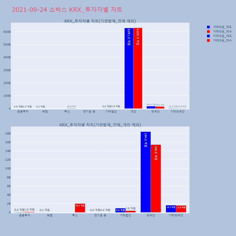 | 투자기관 | 거래량_매도 | 거래량_매수 | 거래량_순매수 | 거래대금_매도 | 거래대금_매수 | 거래대금_순매수 |
