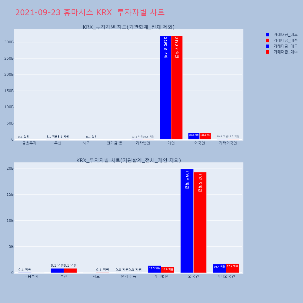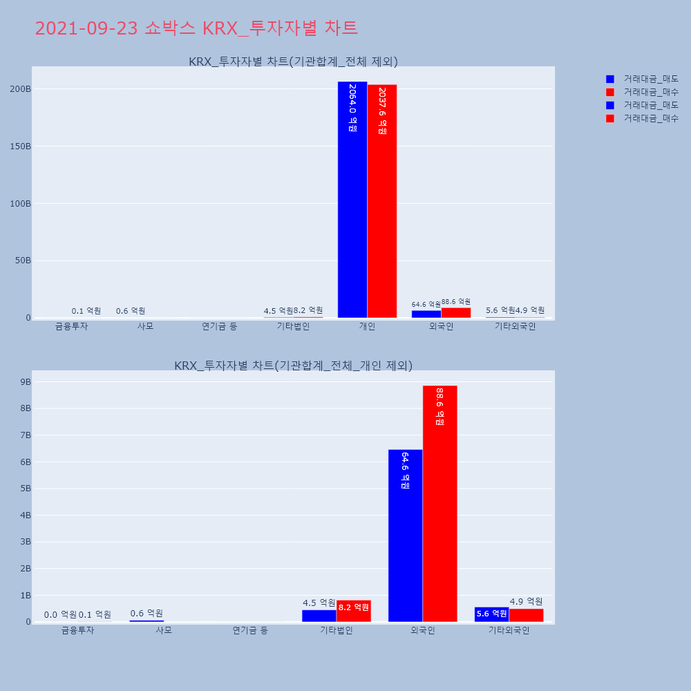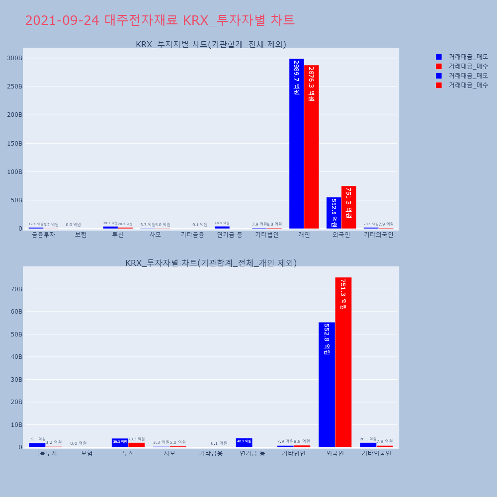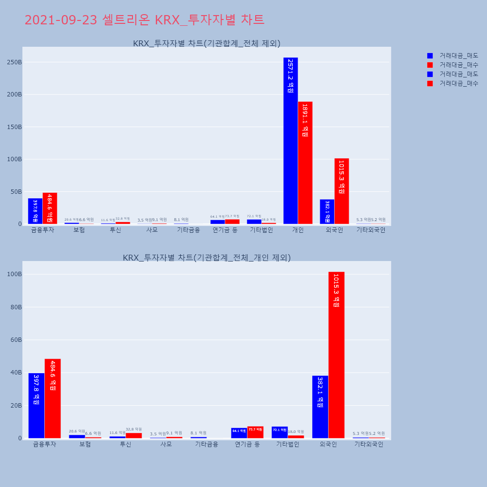 | 투자기관 | 거래량_매도 | 거래량_매수 | 거래량_순매수 | 거래대금_매도 | 거래대금_매수 | 거래대금_순매수 |