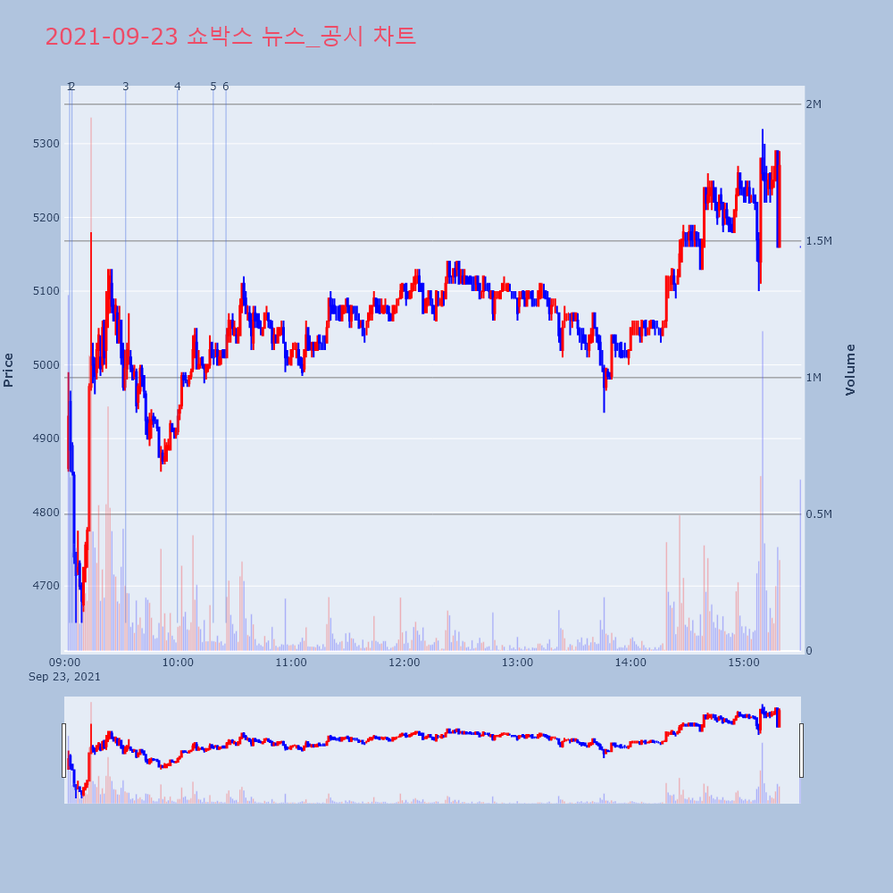 | 15 | [특징주] 쇼박스, '오징어 게임' 인기에 18% 급등쇼박스.[컨슈머타임스 이연경 기자] 쇼박스 주가가 18 | 컨슈머타임스 | 쇼박스 | 2021-09-24 13:42:15 |