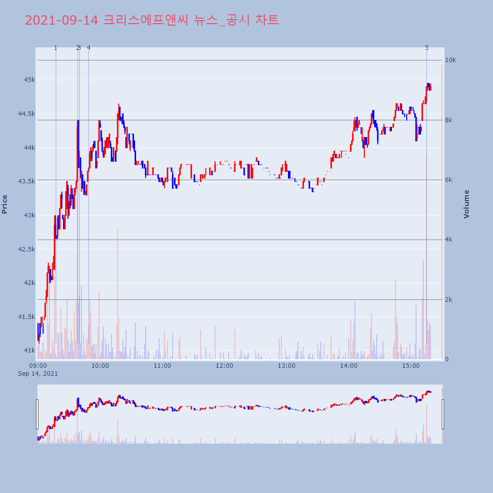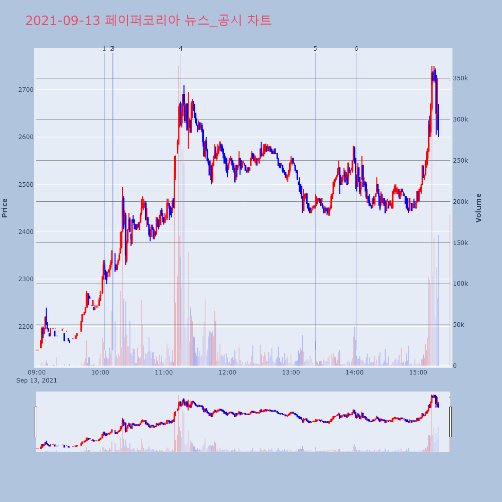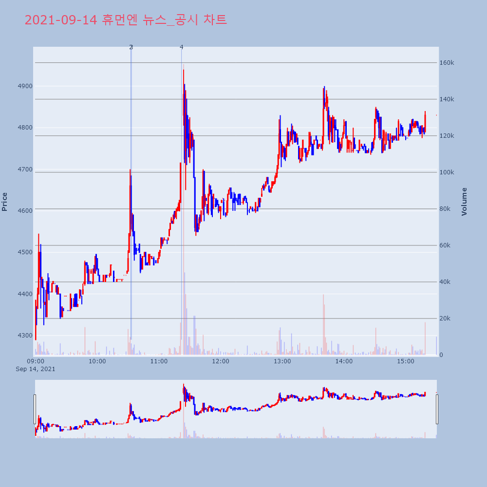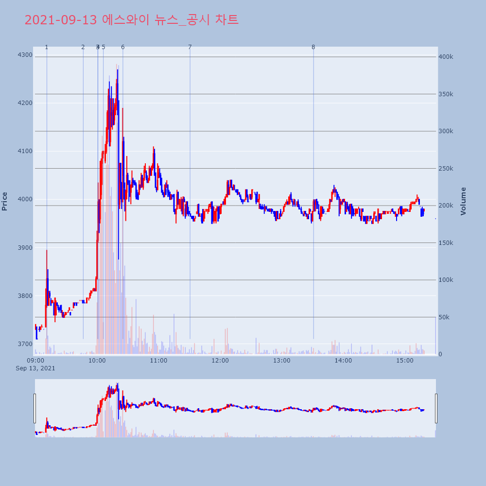 ▷금일 코스닥시장에 신규 상장한 동사의 주가는 공모가 2,000원을 상회한 4,000원에 시초가를 형성한 뒤 하한가로 마감함. 한편, 동사는 기업인수목적회사(SPAC)로 신재생에너지, 바이오제약(자원)/의료기기, 전자/통신, 2차전지, 소프트웨어/서비스, 게임/모바일산업, 신소재, 기타 미래 성장 동력을 갖추었다고 판단되는 산업을 영위하는 업체가 합병 대상임. [내용출처: 인포스탁 infostock]