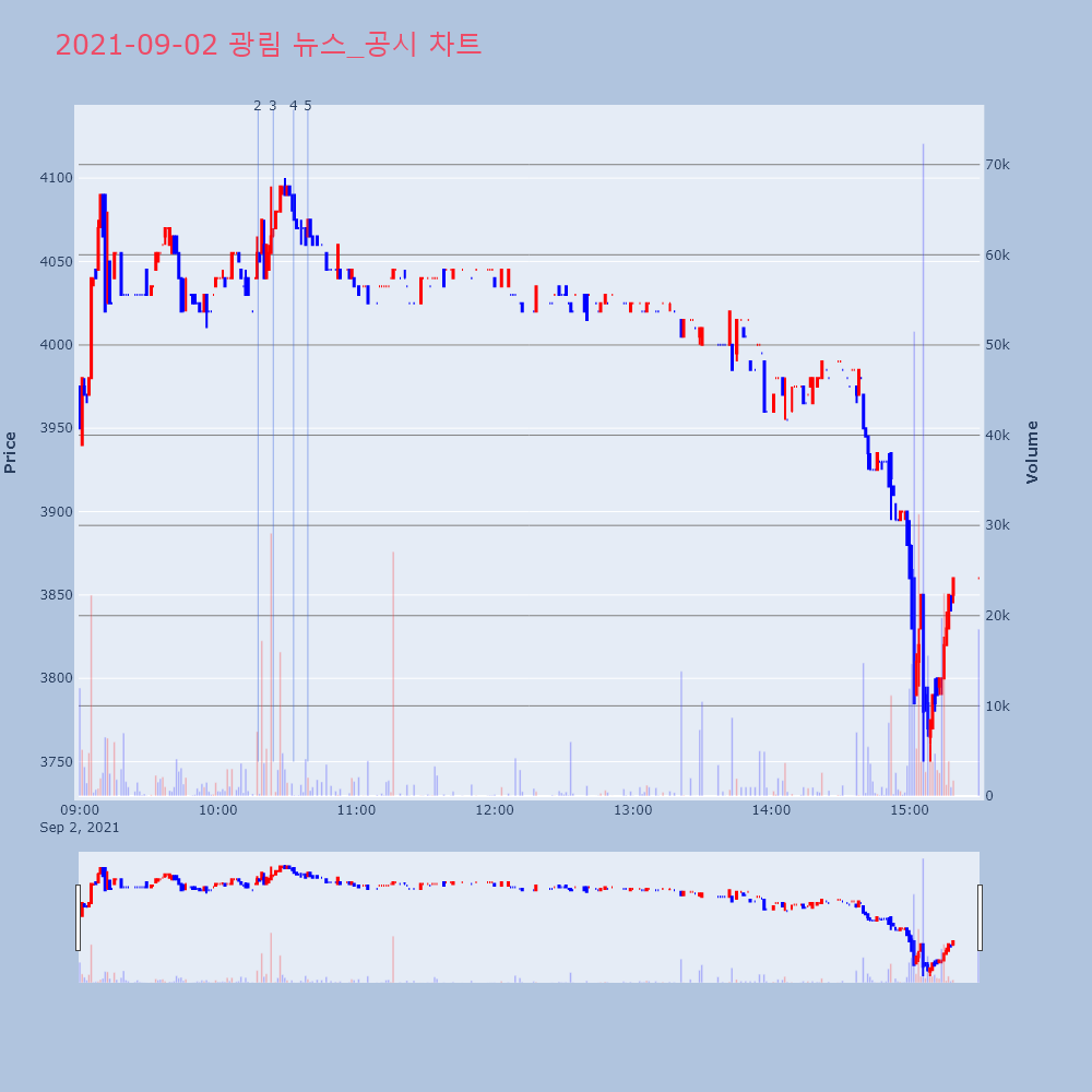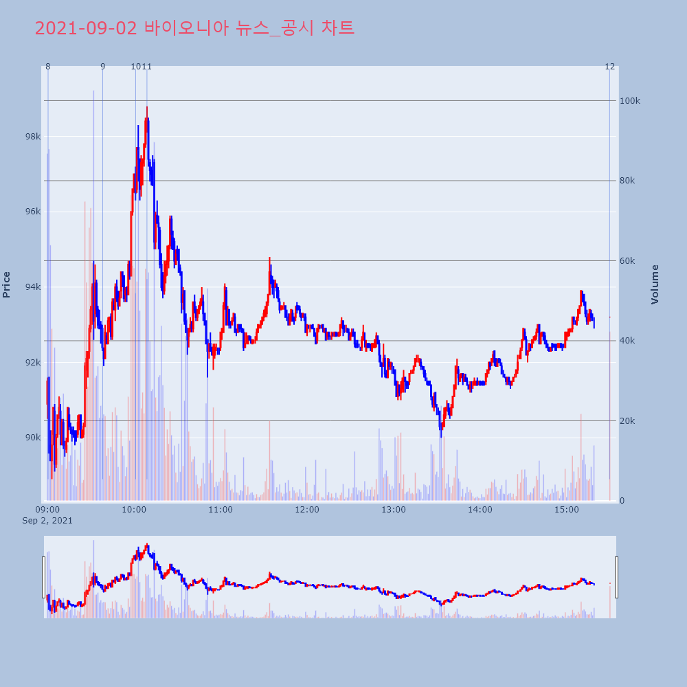 | 8 | 에이치엘비생명과학, +7.81% VI 발동에이치엘비생명과학(067630)이 VI가 발동했다. 전 | 조선경제 | 에이치엘비생명과학 | 2021-09-07 13:19:21 |
