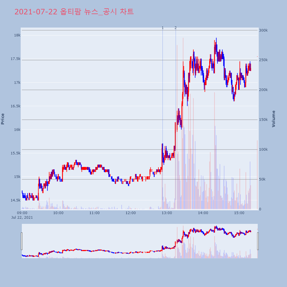 | 2 | 17 | 유니드(014830) 상한가 진입, 신고가 경신, 3거래일 연속 상승 제목 : 유니드(014830)상한가 진입, 신고가 경신 | 인포스탁 | 유니드 | 2021-07-23 15:09:44 |