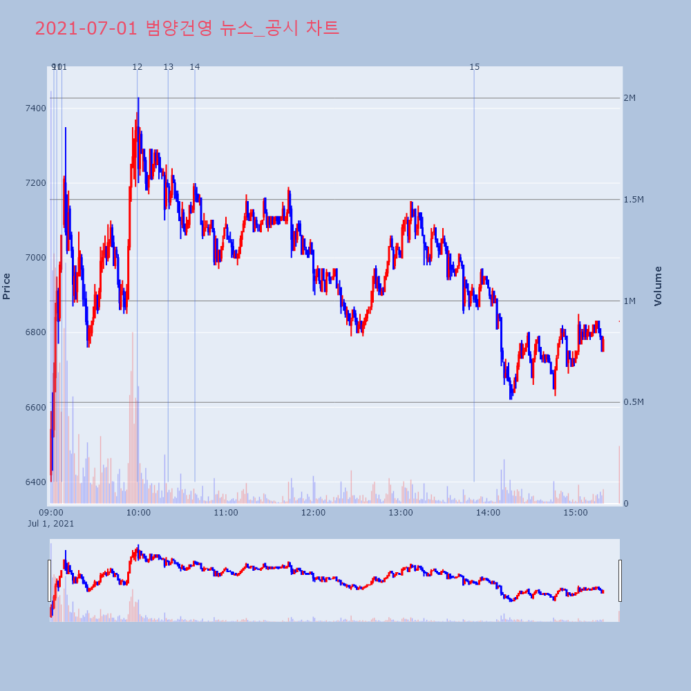 | 4 | 11 | 범양건영, +17.08% VI 발동범양건영(002410)이 VI가 발동했다. 전일 대비 | 조선경제 | 범양건영 | 2021-07-01 09:07:26 |