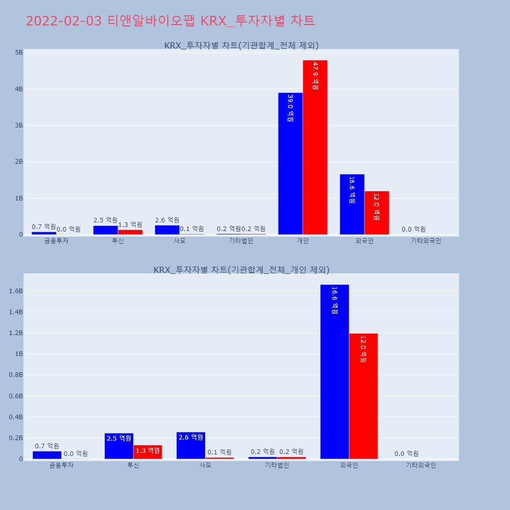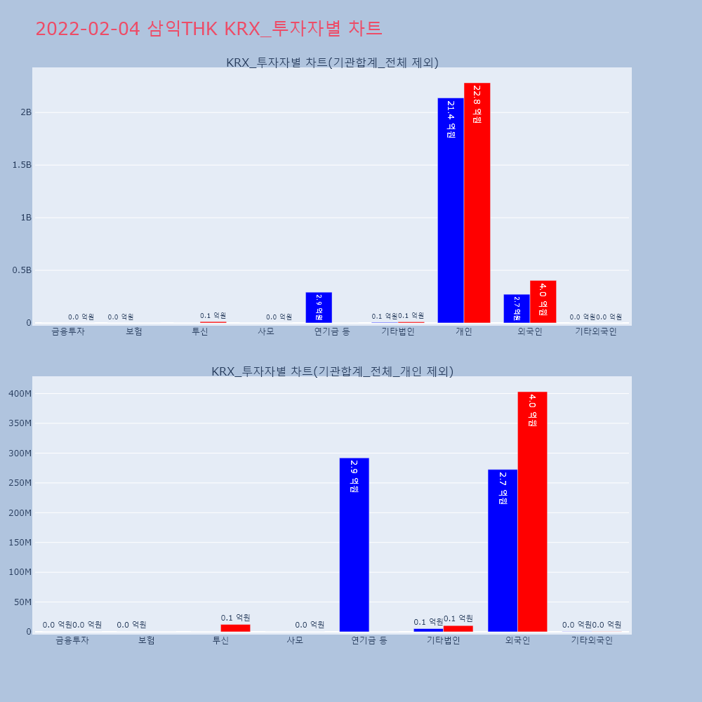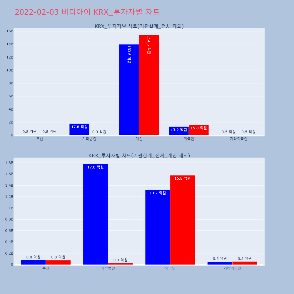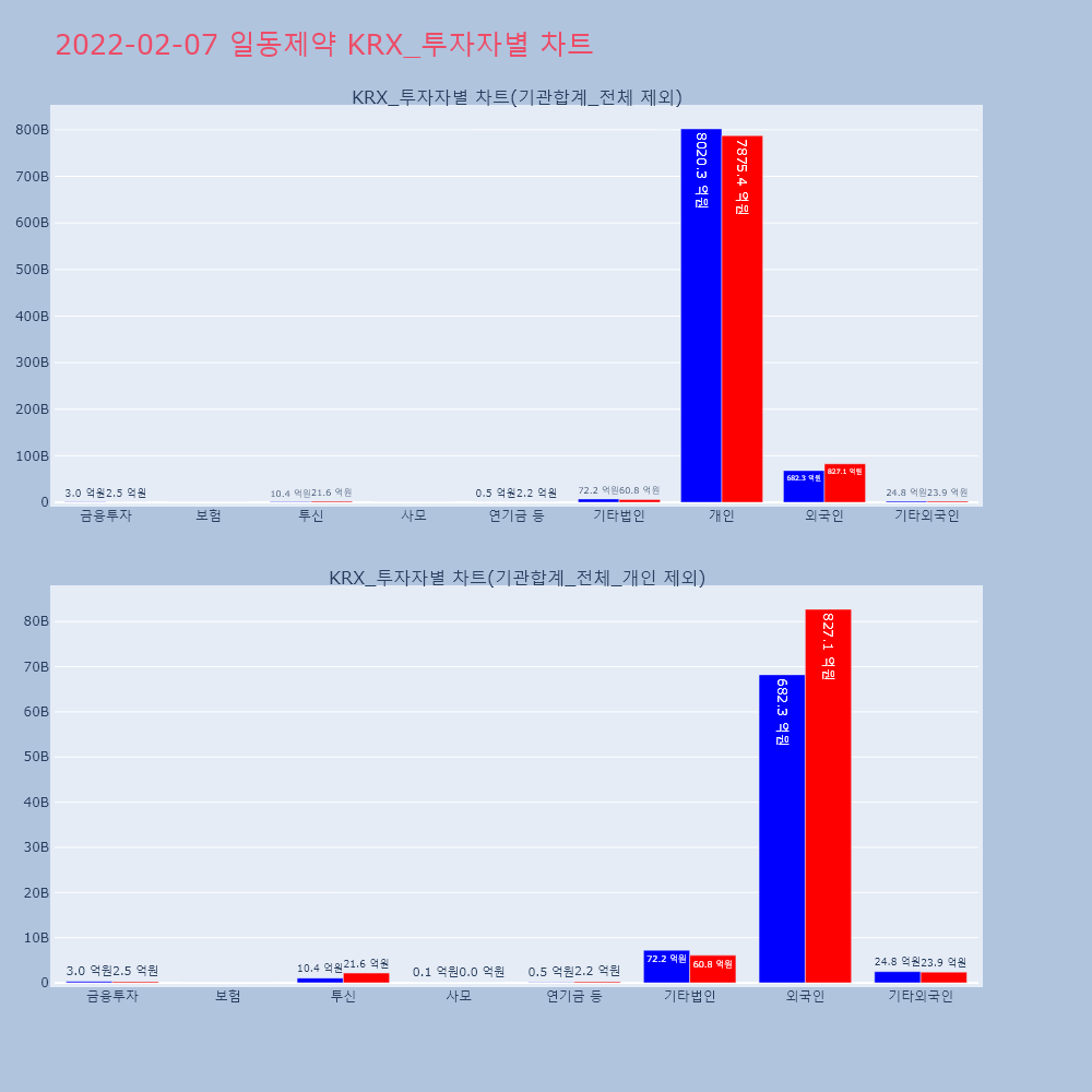 | 투자기관 | 거래량_매도 | 거래량_매수 | 거래량_순매수 | 거래대금_매도 | 거래대금_매수 | 거래대금_순매수 |